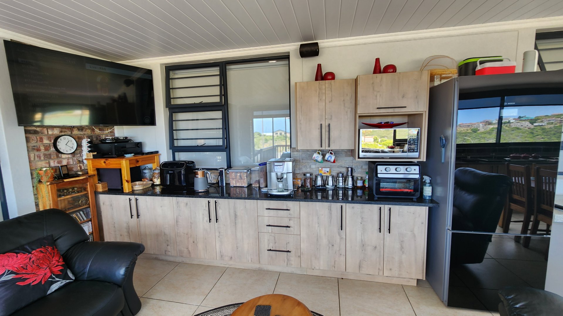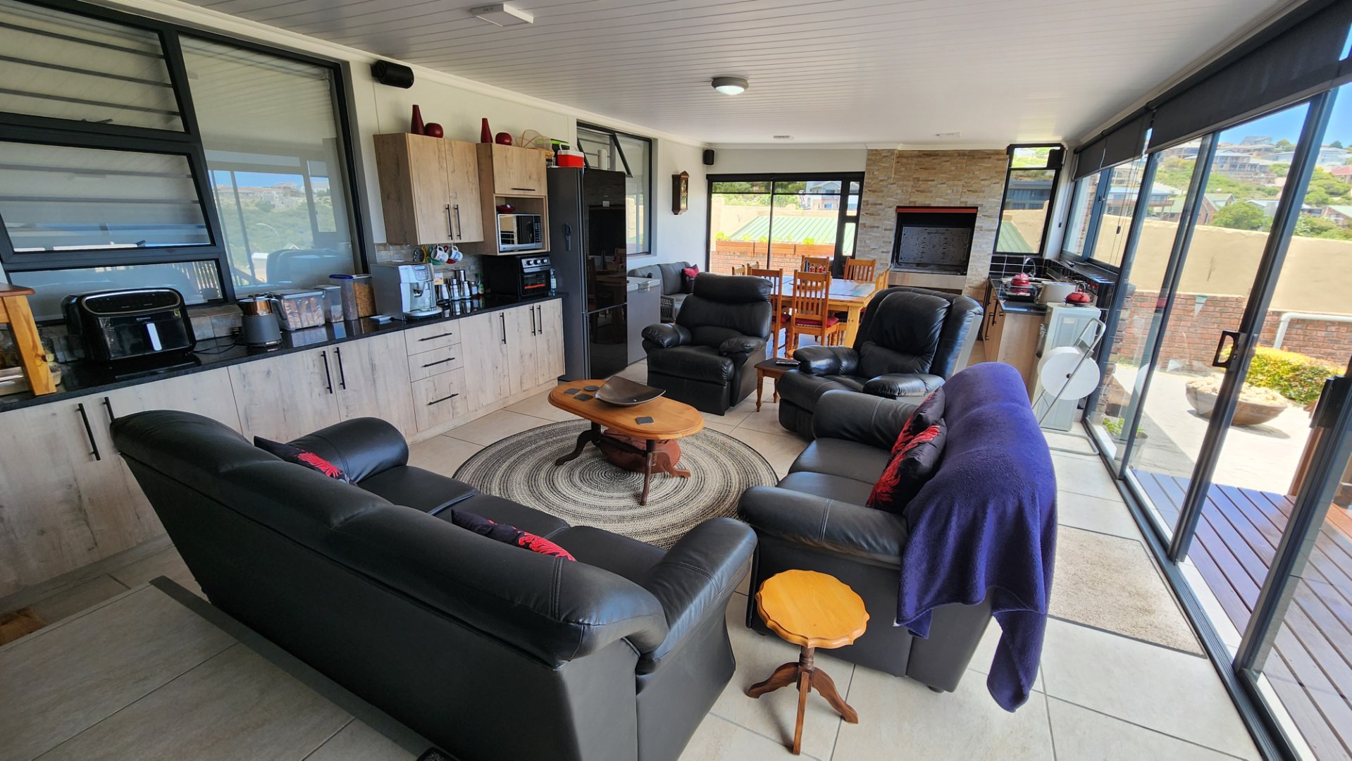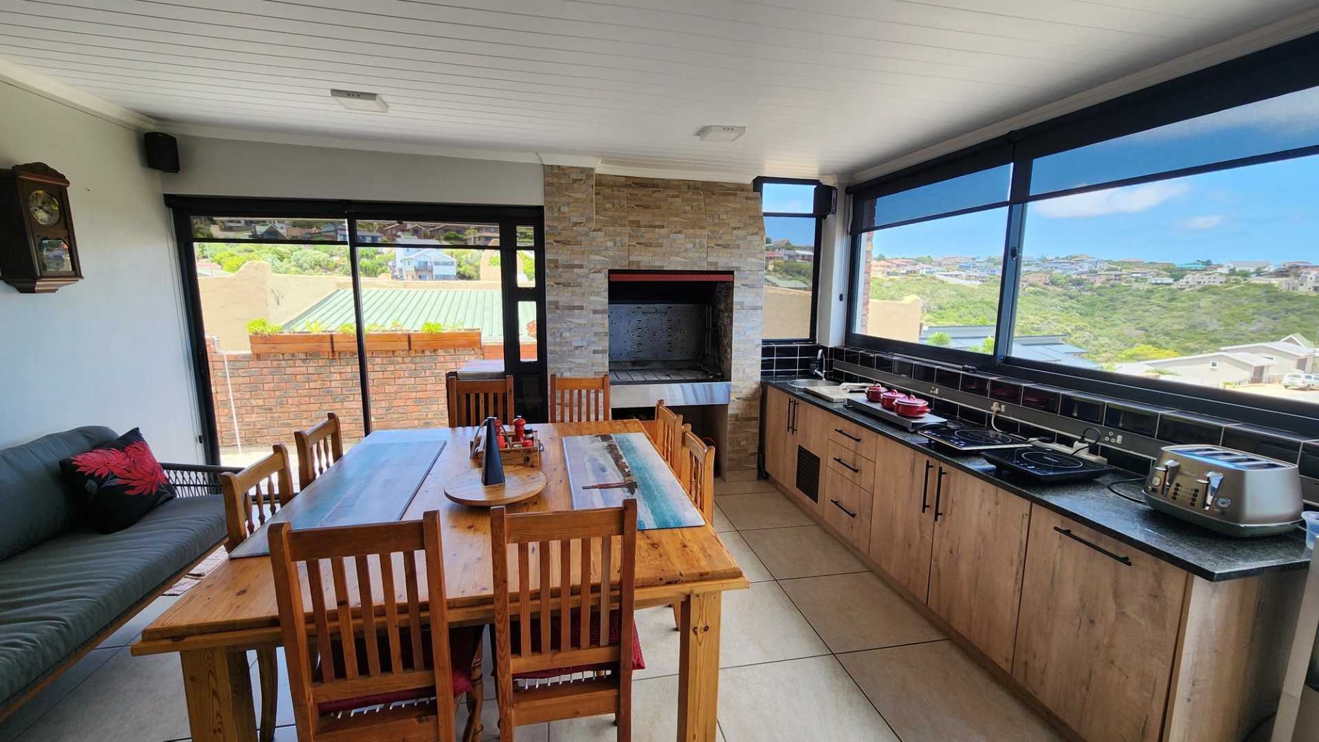 * Spacious open plan living area and dinning area with a built-in stainless steel braai that is almost new.
