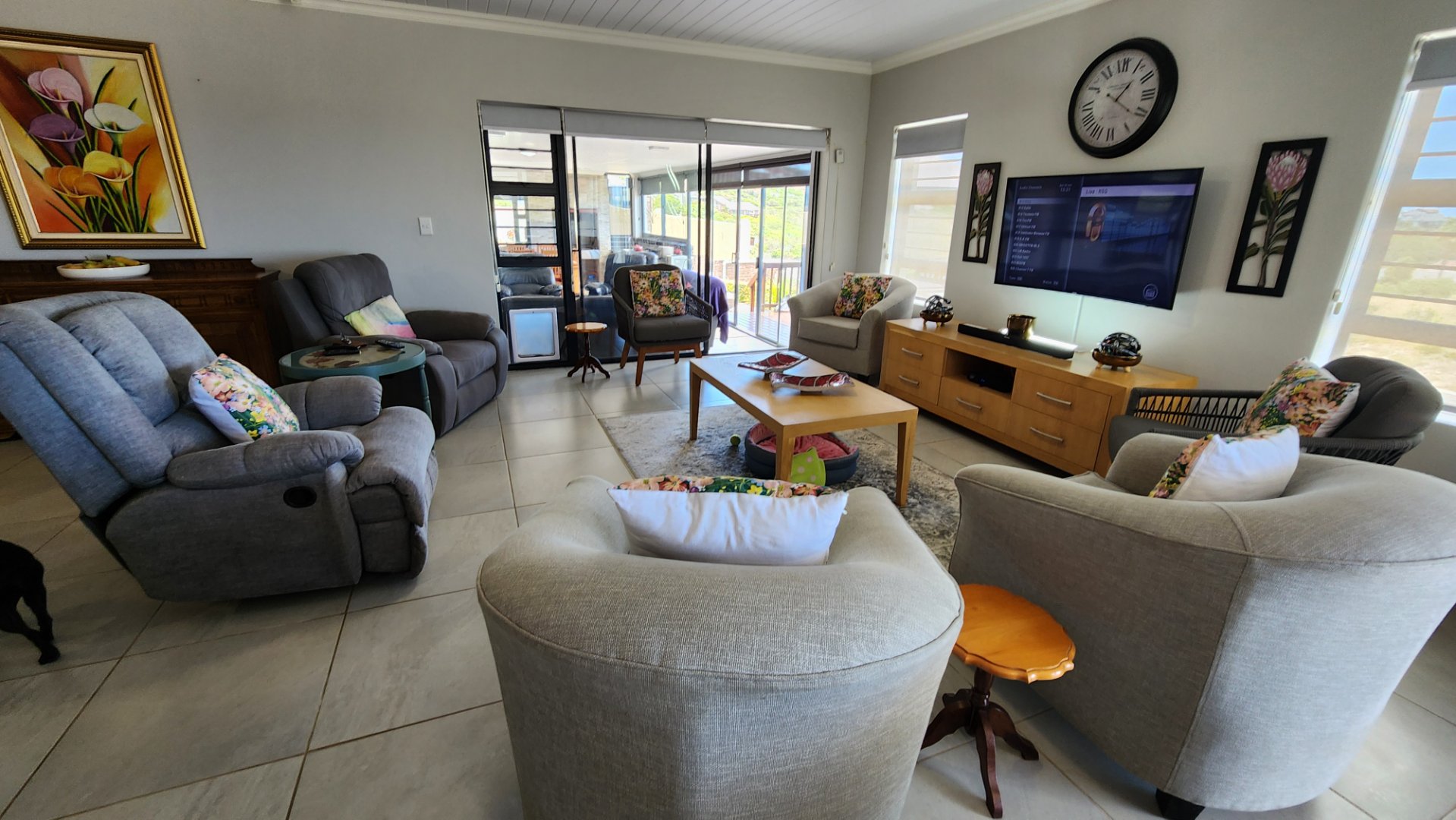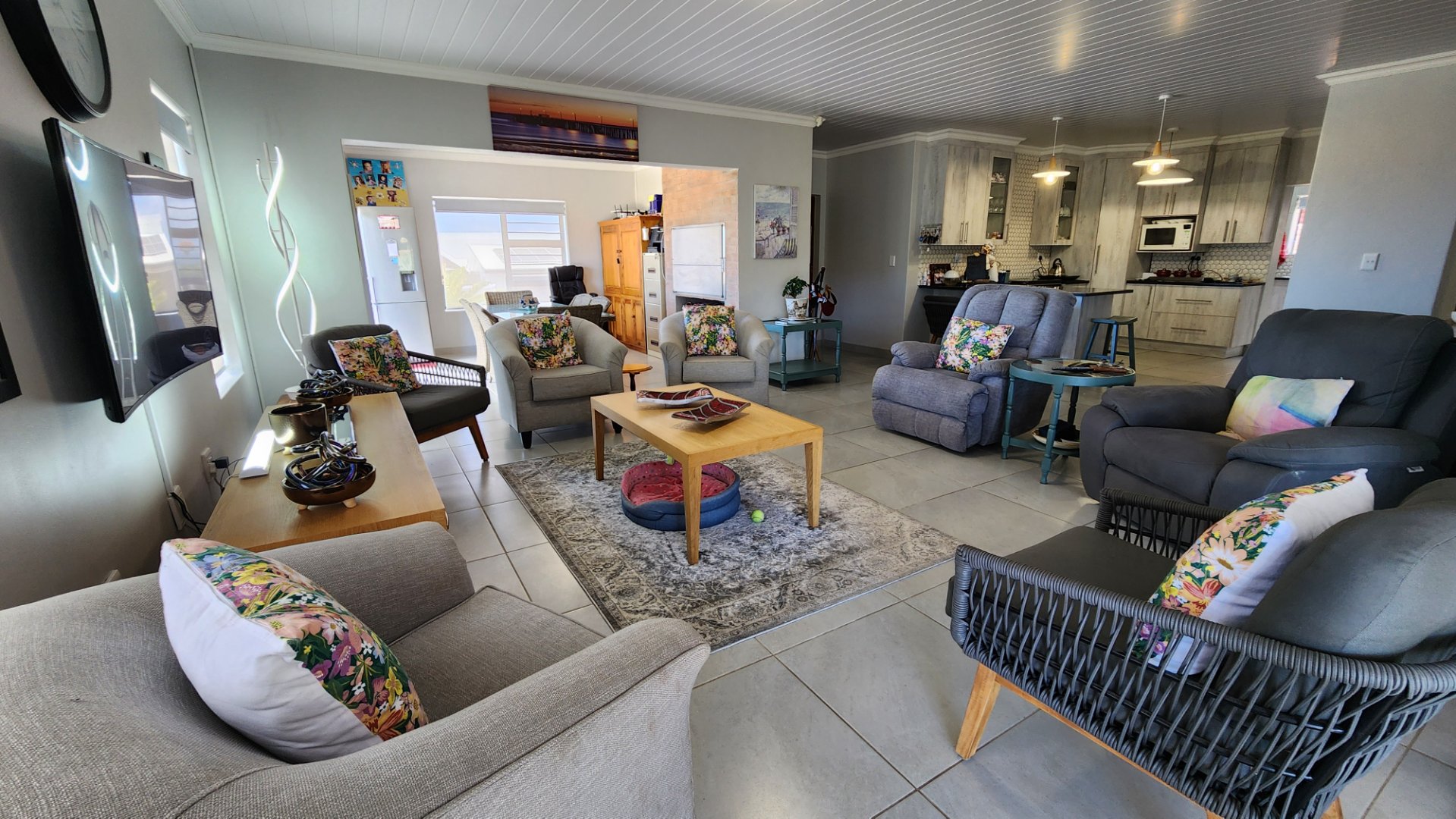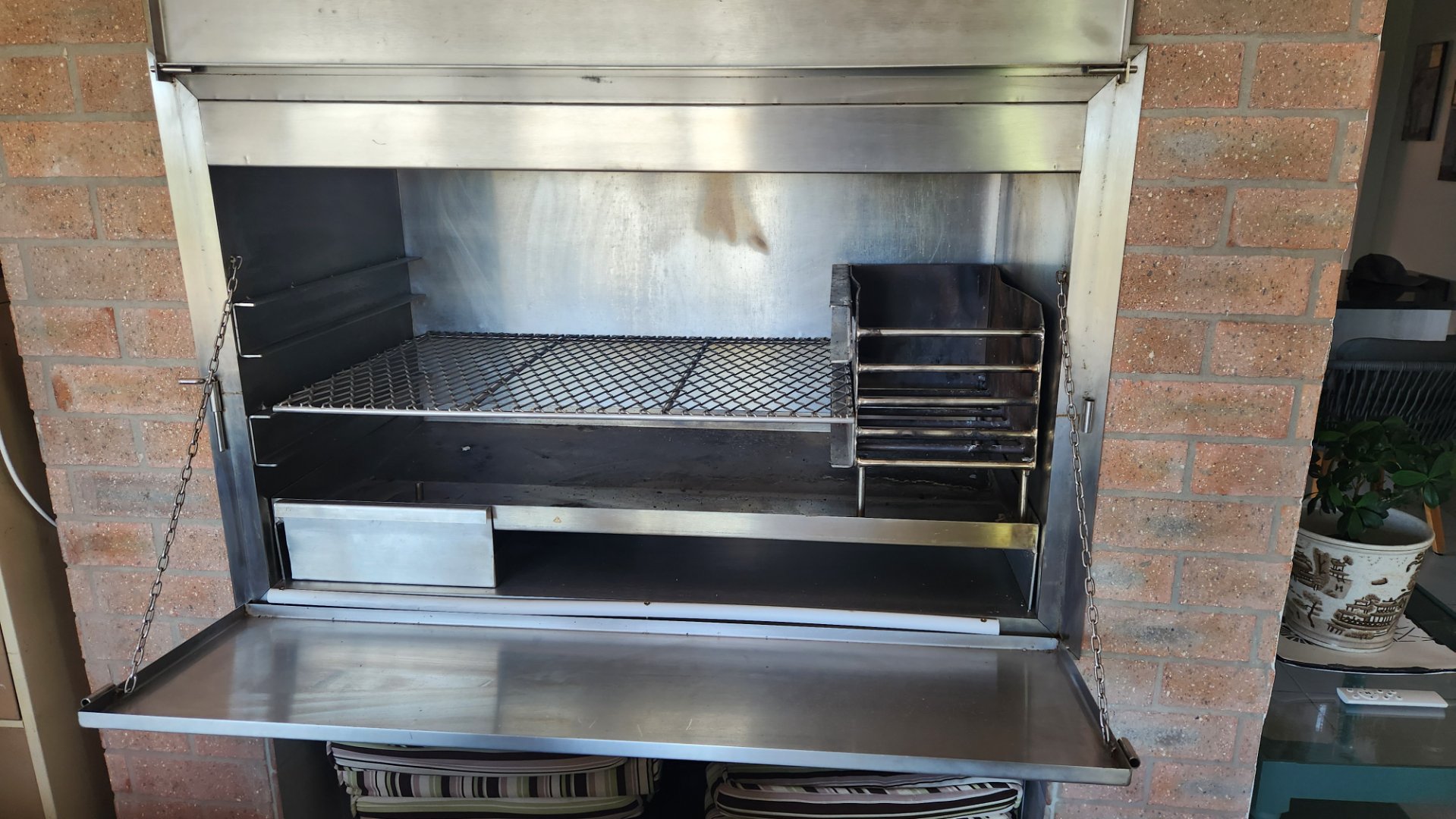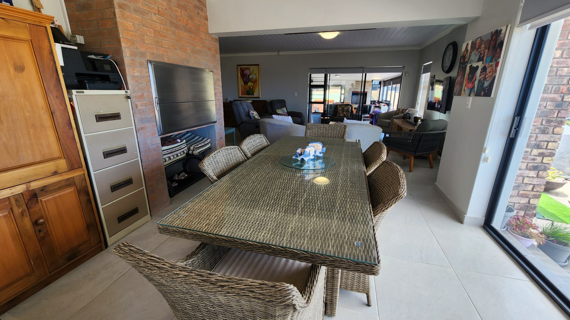 * Spacious open plan living area and dinning area with a built-in stainless steel braai that is almost new.