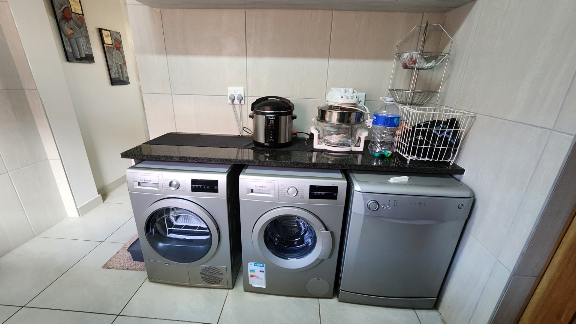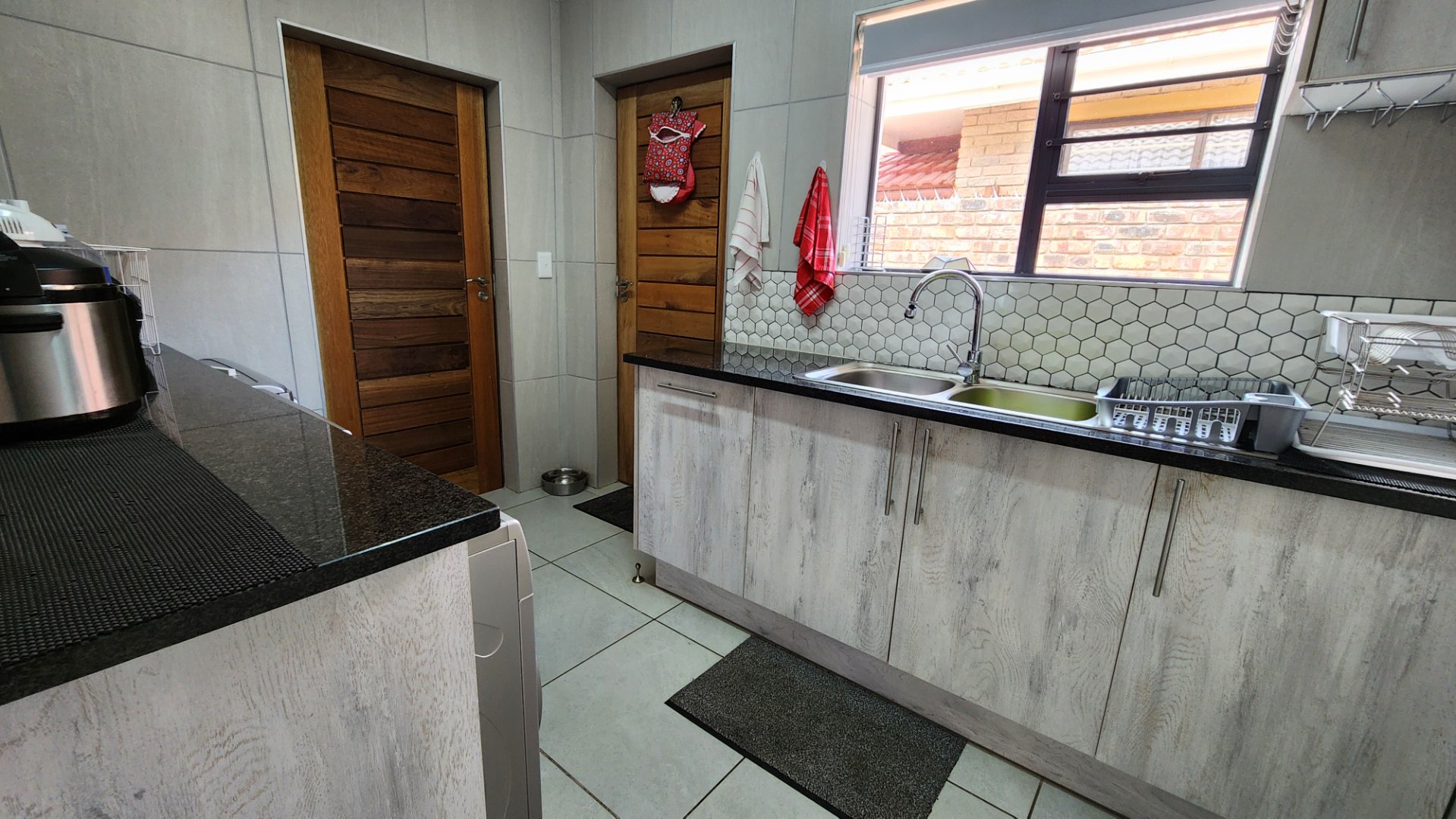 * Spacious braai room with a second built in braai as well as built-in cupboards and a food preparation basin.