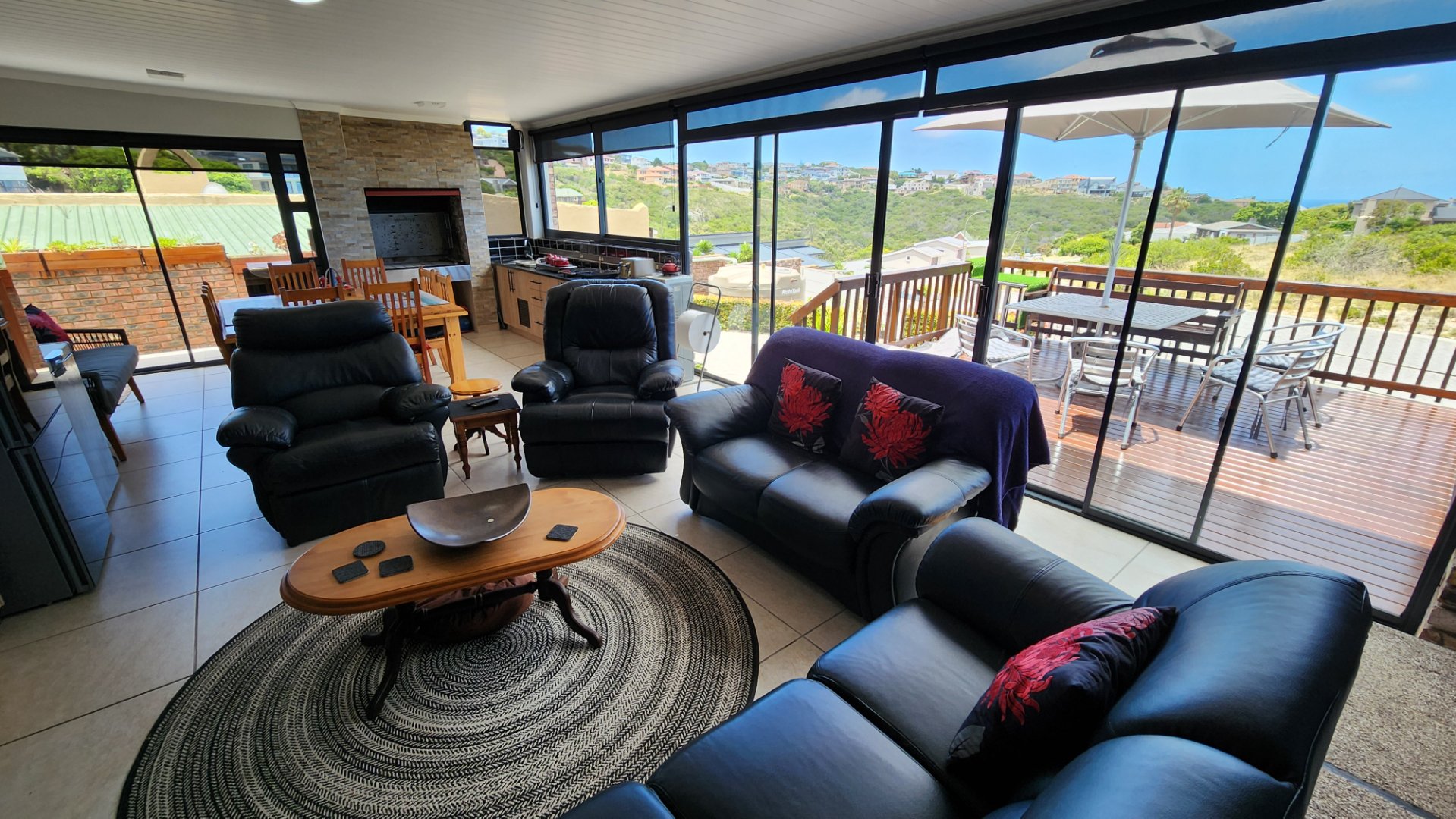 * Wooden deck adjacent to the braai room with beautiful sea views to enjoy.
