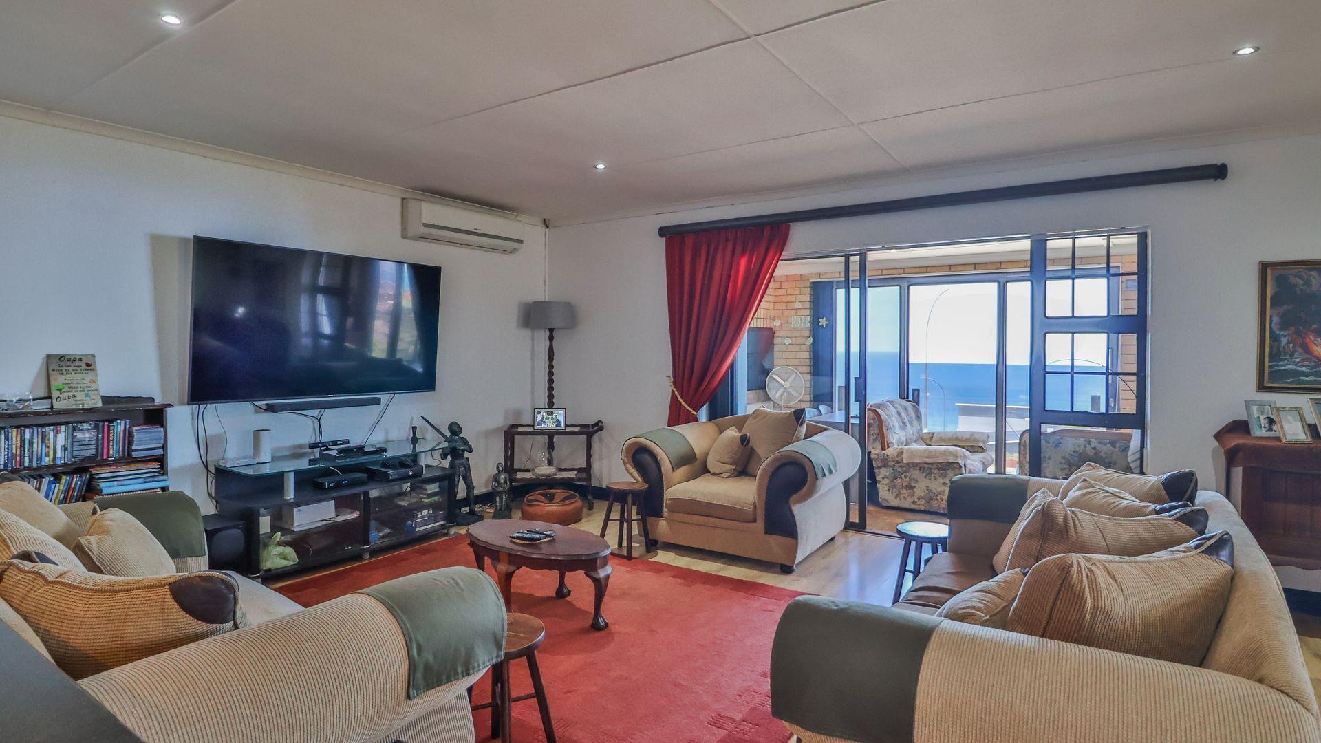 The living area seamlessly connects to an enclosed braai room with a built-in braai, offering immaculate breaker views. Sliding doors open to let in the refreshing ocean breeze. A separate dining room adds to the home's appeal.