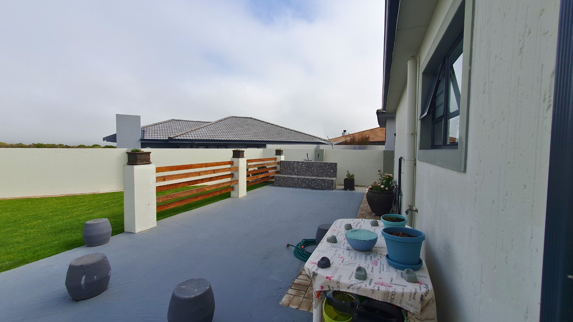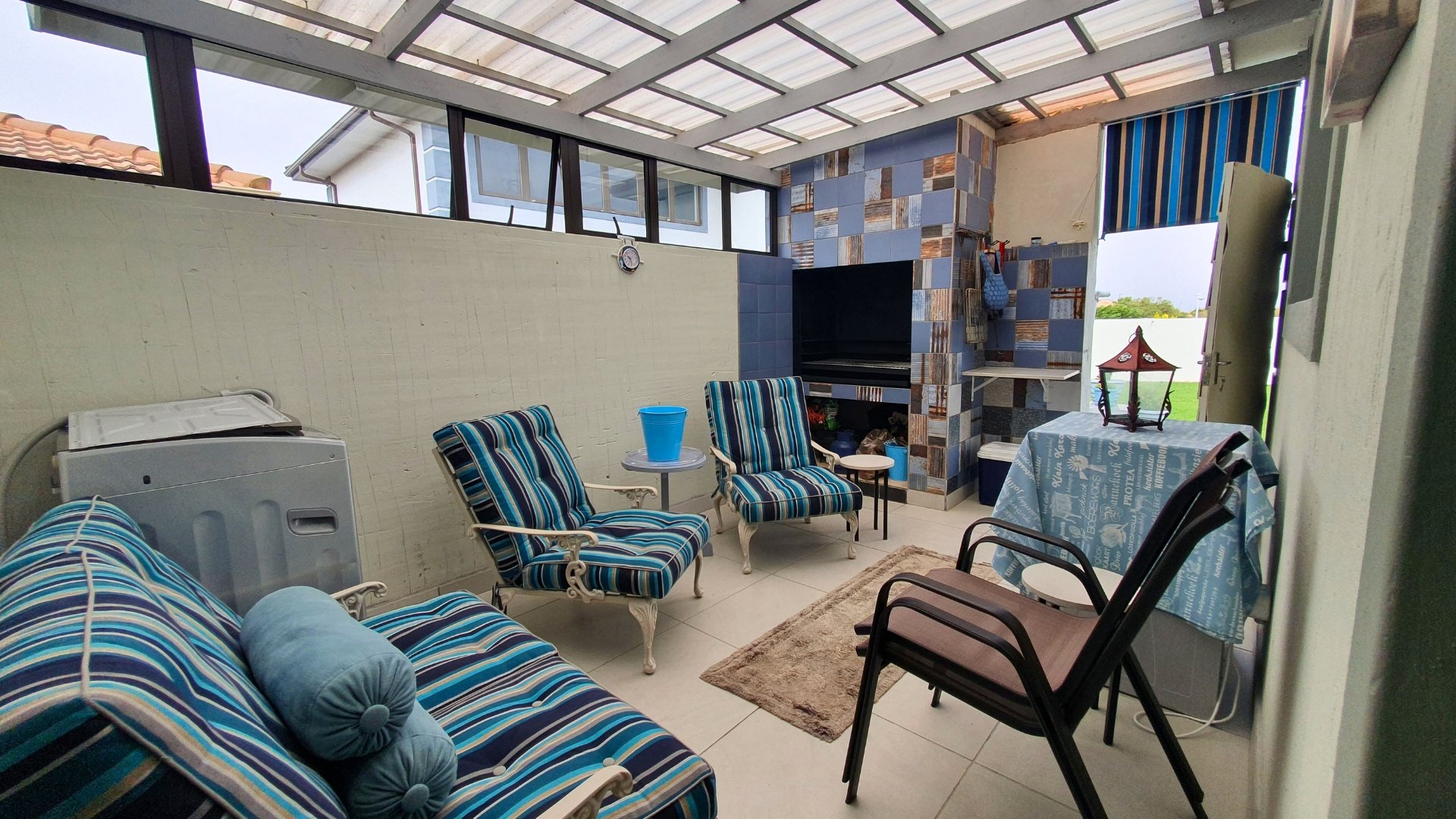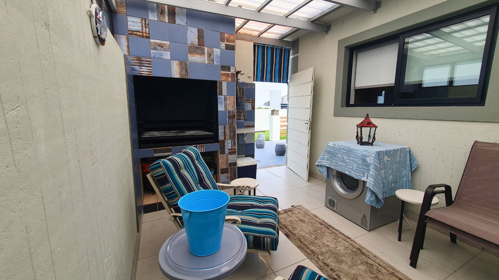 Enclosed braai area leading to the back garden with an outdoor braai