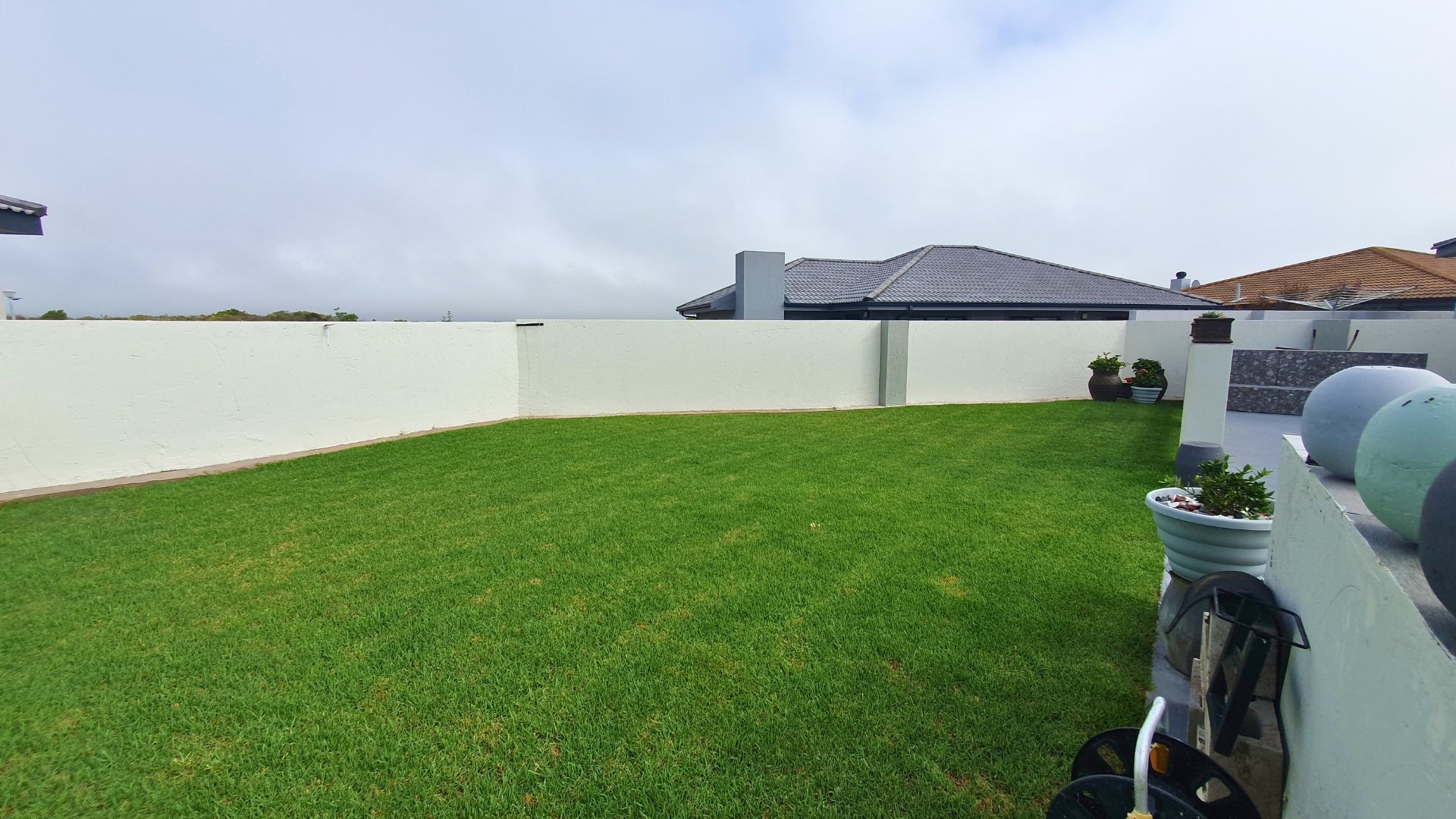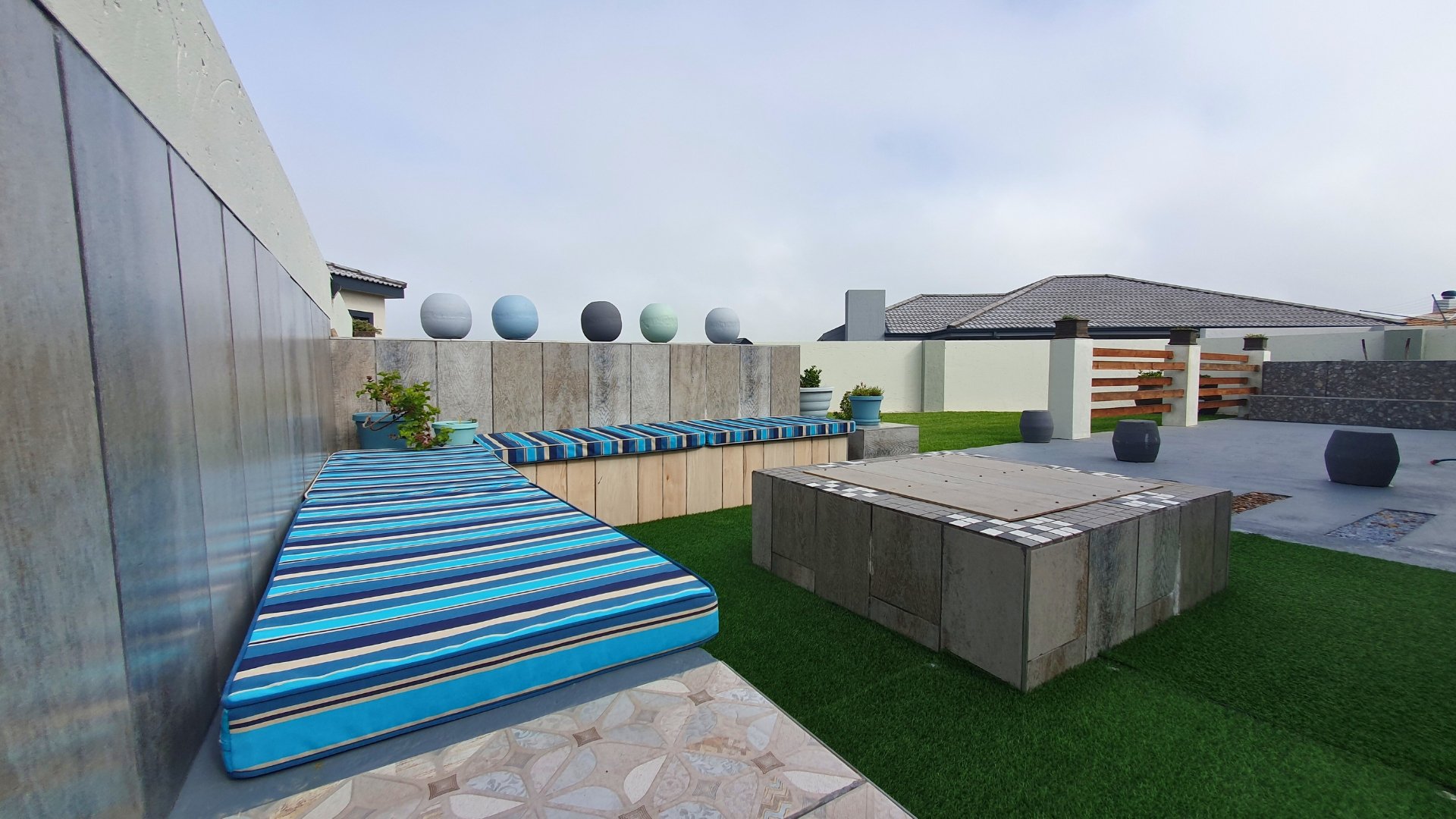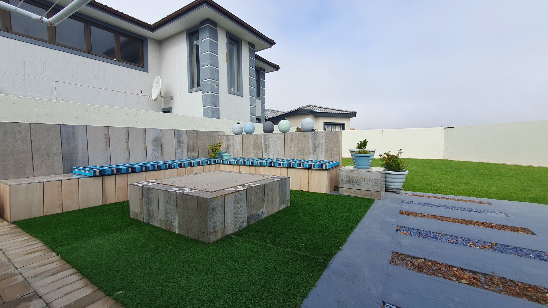 Enclosed braai area leading to the back garden with an outdoor braai
