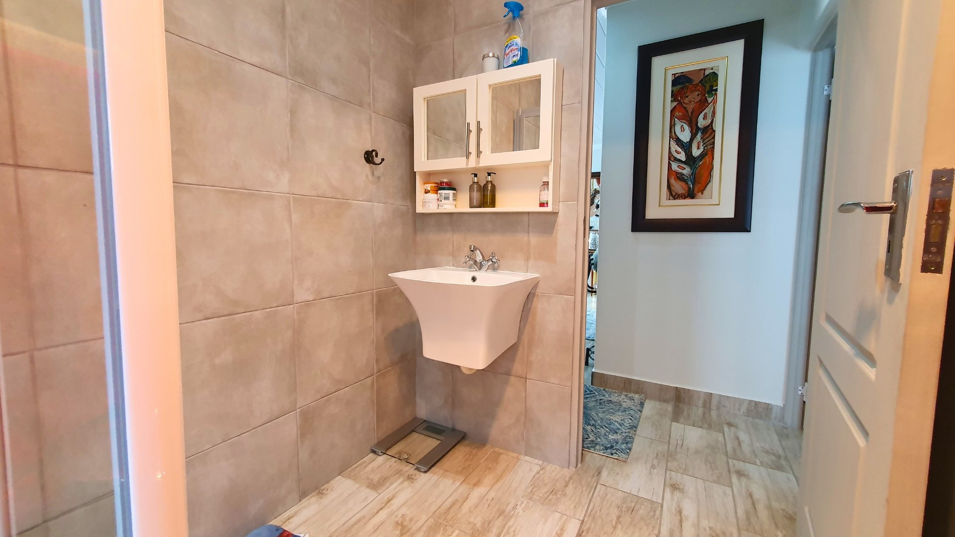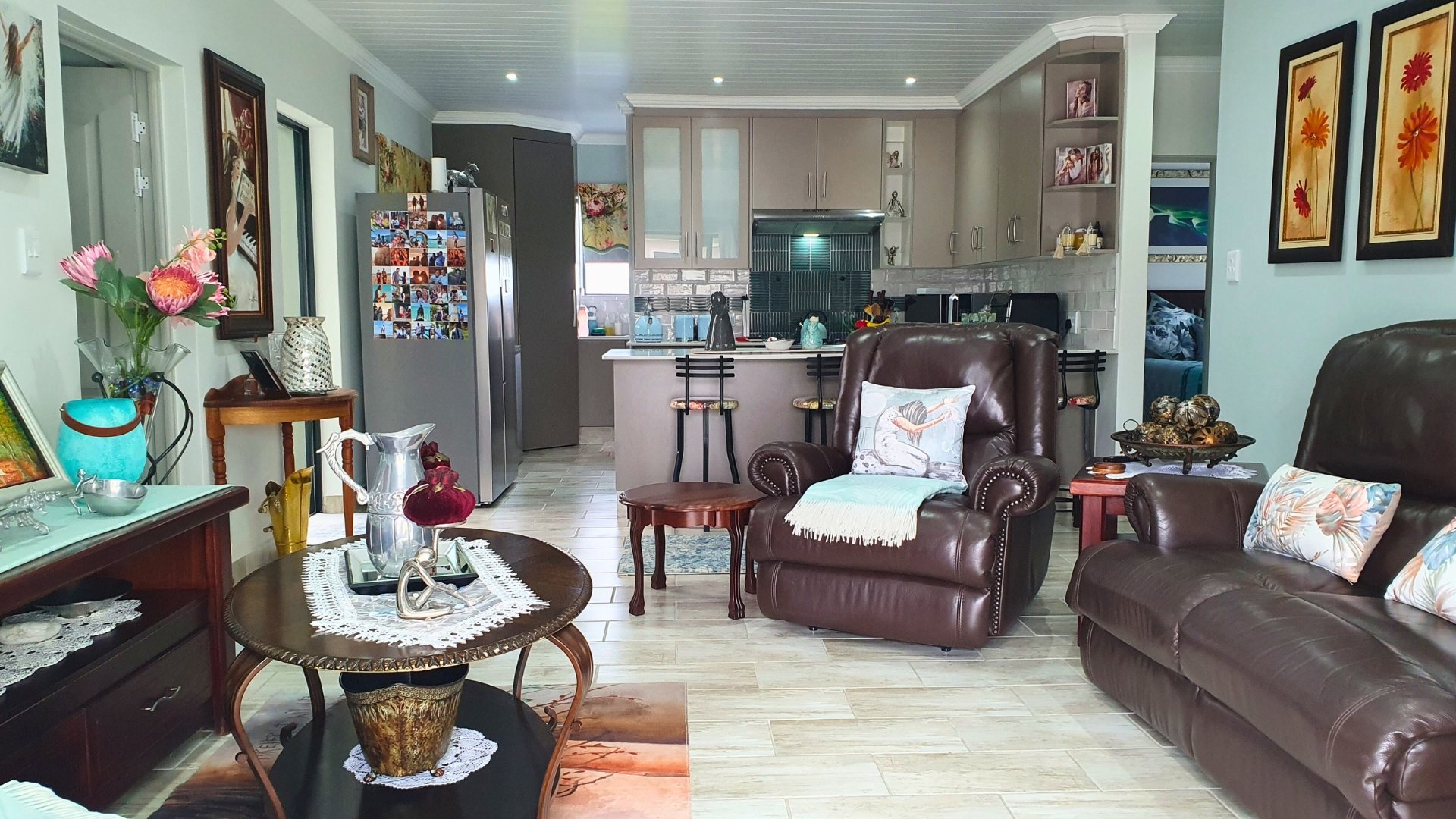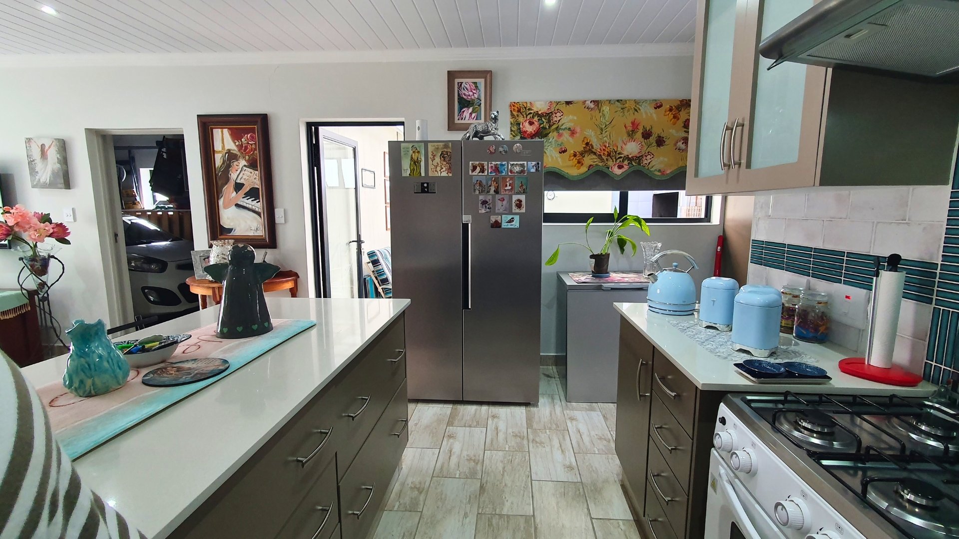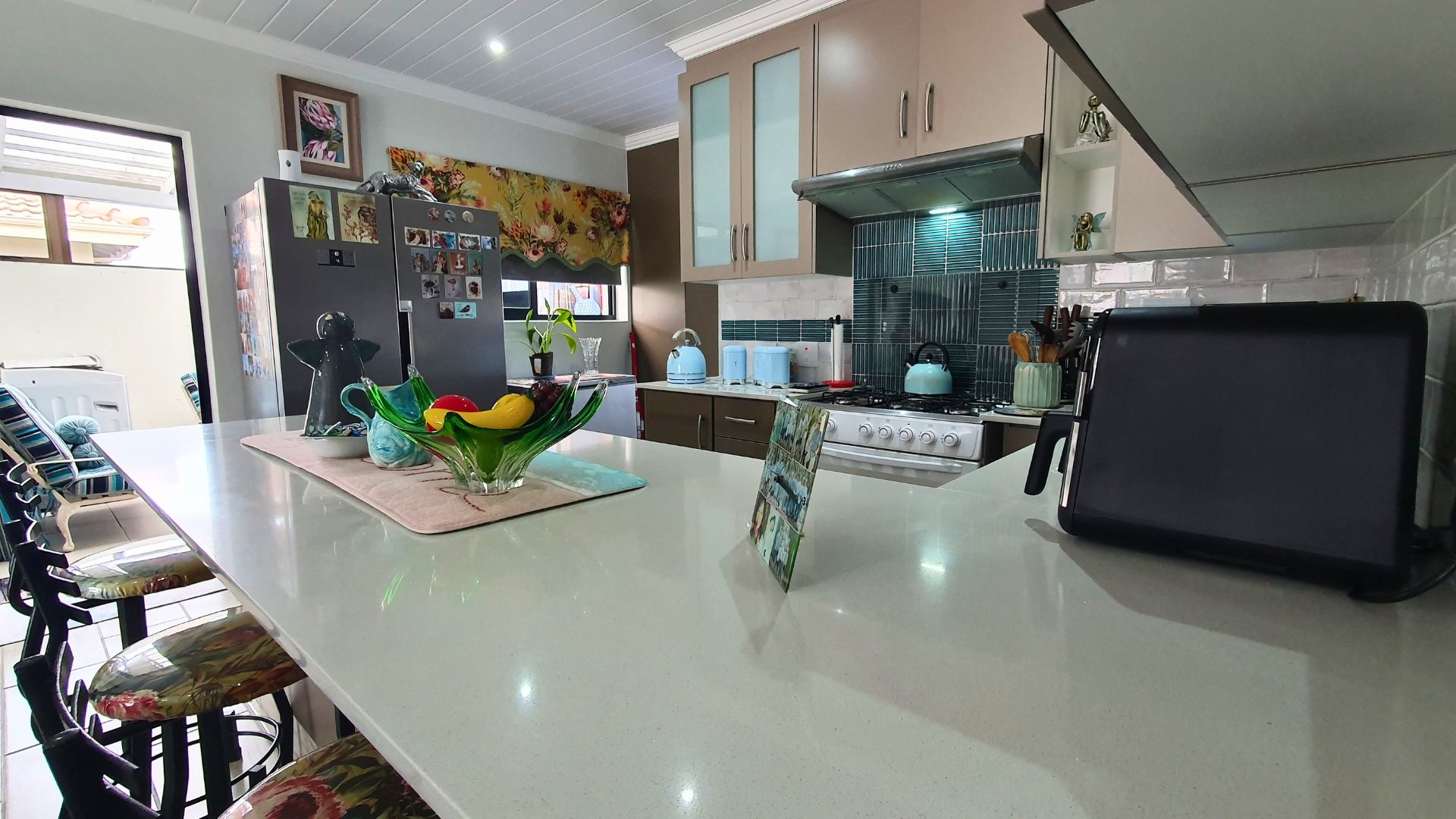 A welcoming entrance leads into the open-plan lounge and kitchen area, creating a seamless flow for relaxed living. The kitchen is beautifully finished with stunning granite countertops, a gas stove, stylish cabinetry, and a breakfast nook, making it both functional and inviting. Around the corner, a separate scullery provides additional cupboard space and a dedicated laundry area.