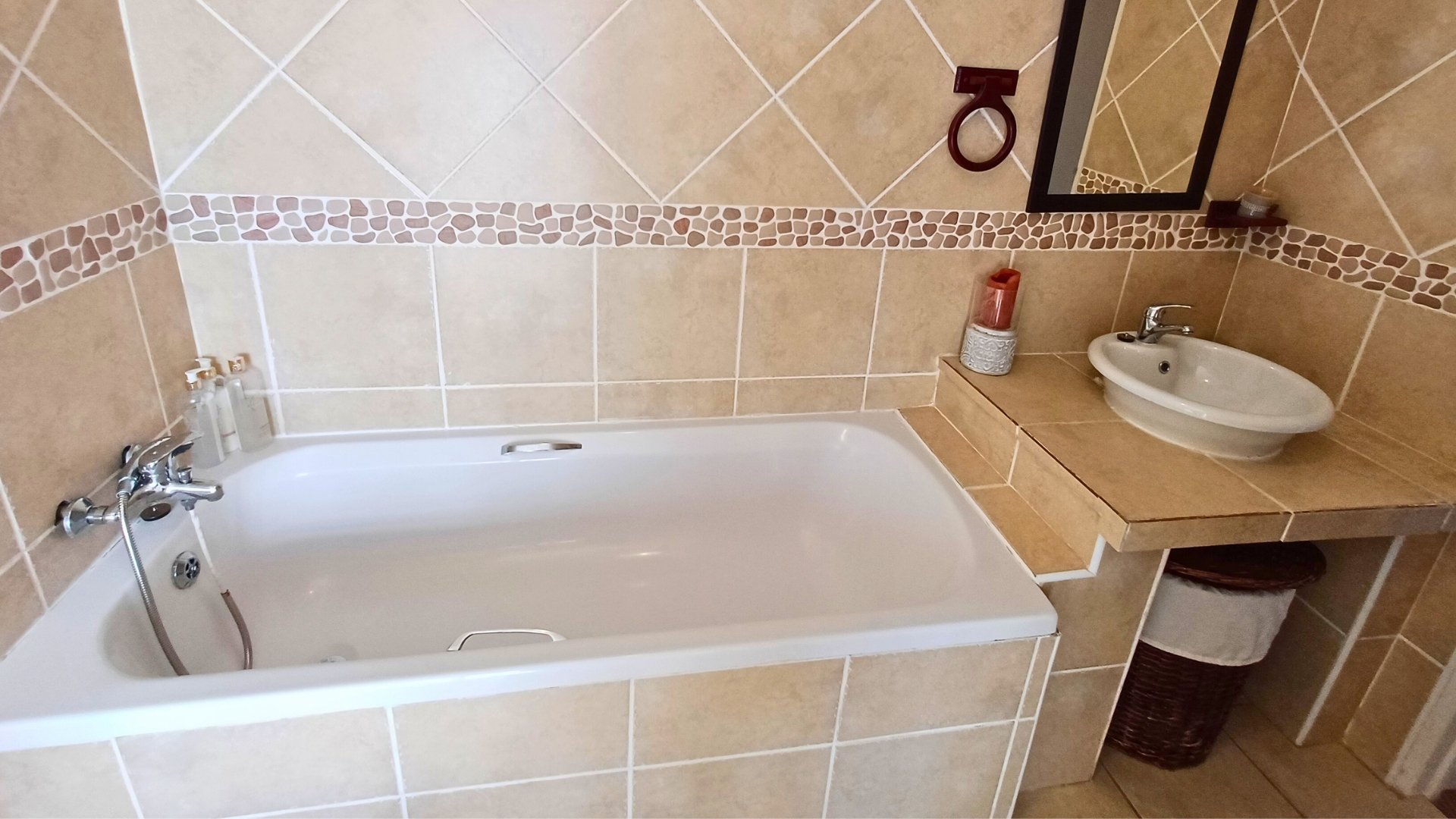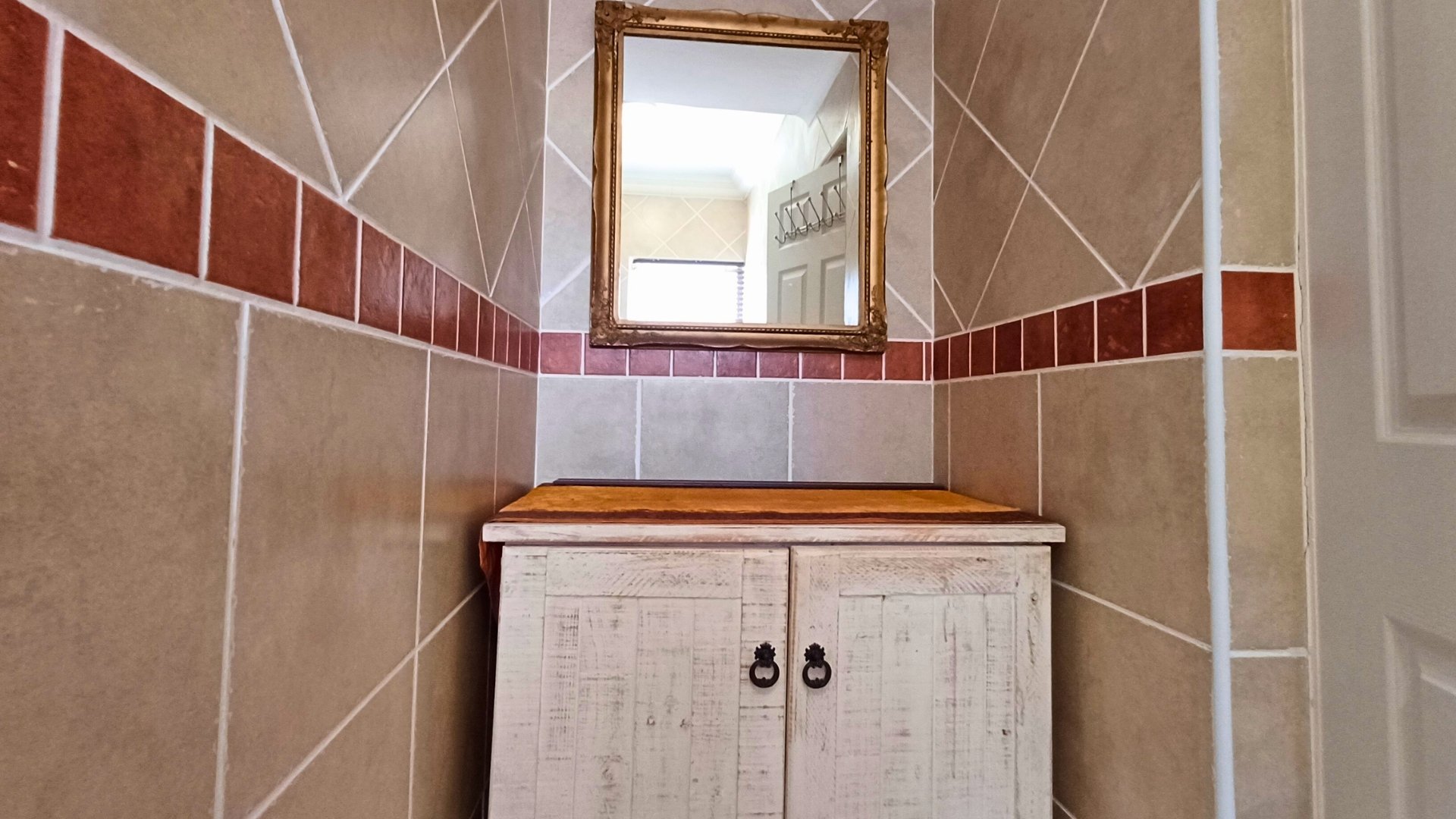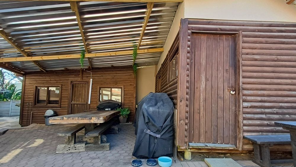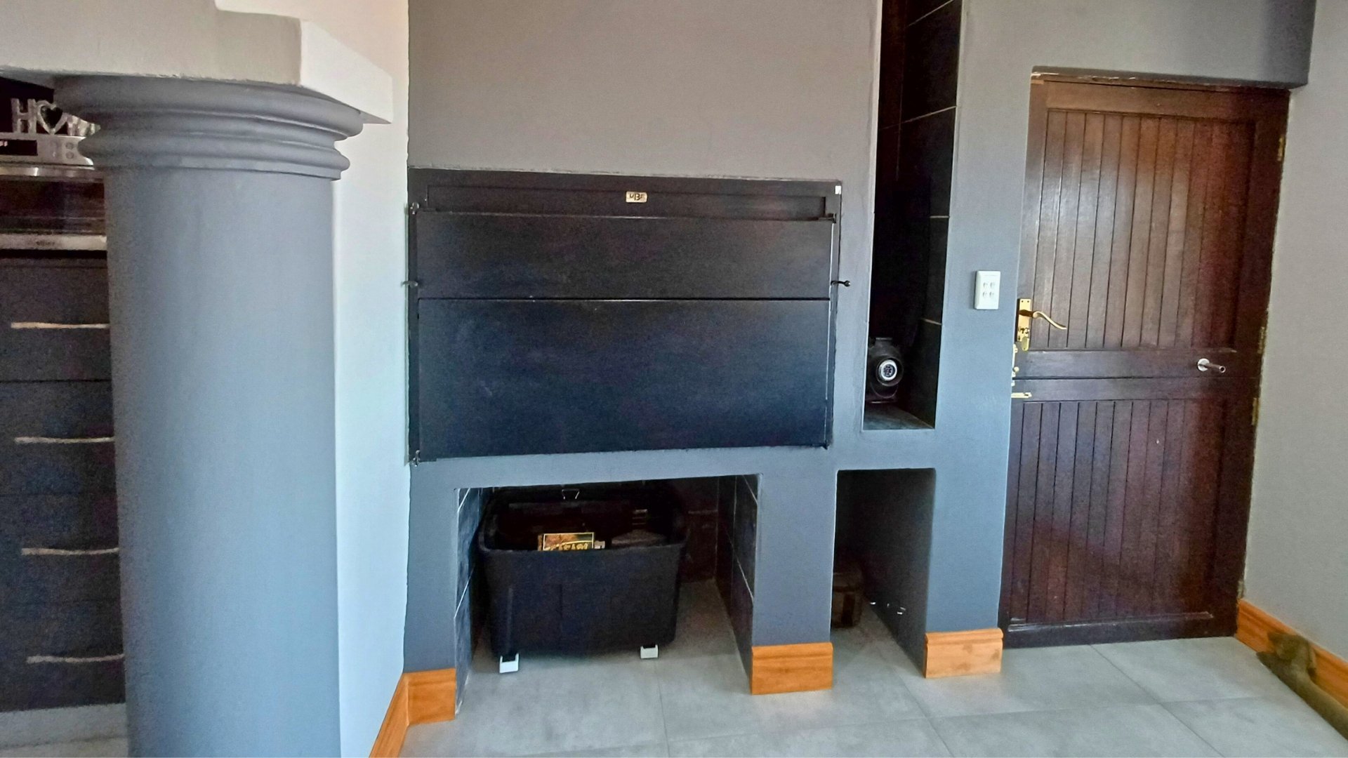 Designed with entertainment and relaxation in mind, the home includes an enclosed stoep that extends the living space, as well as a newly tiled entertainment area. A roofed section between two log cabins creates a charming gathering spot for family and friends.