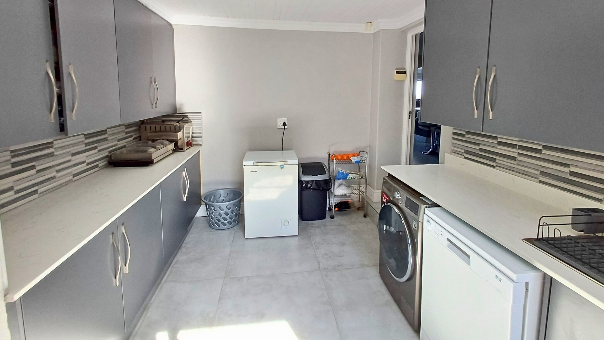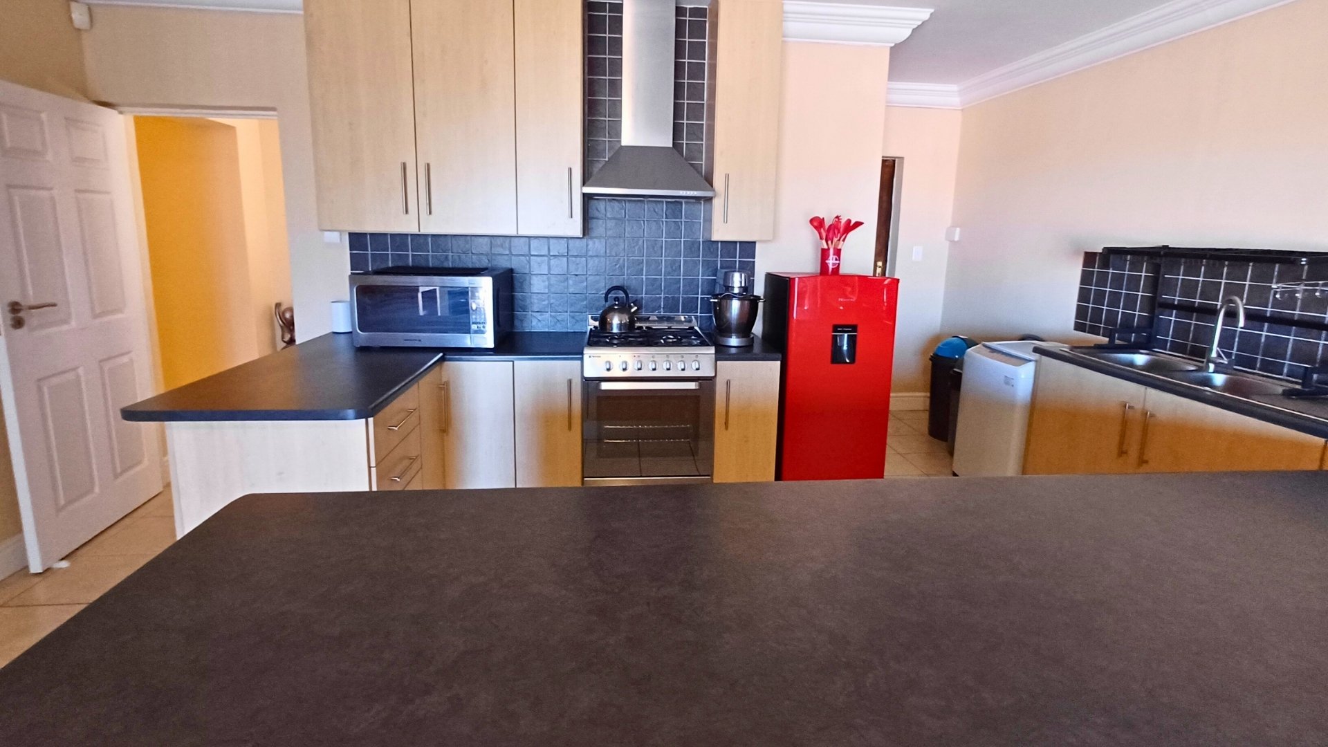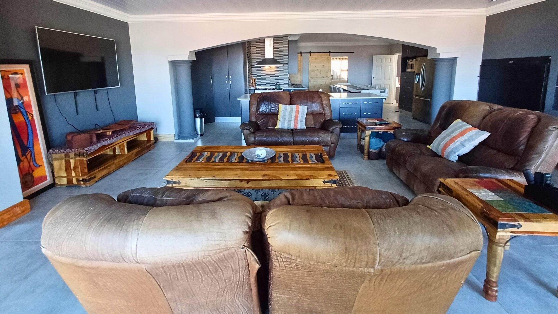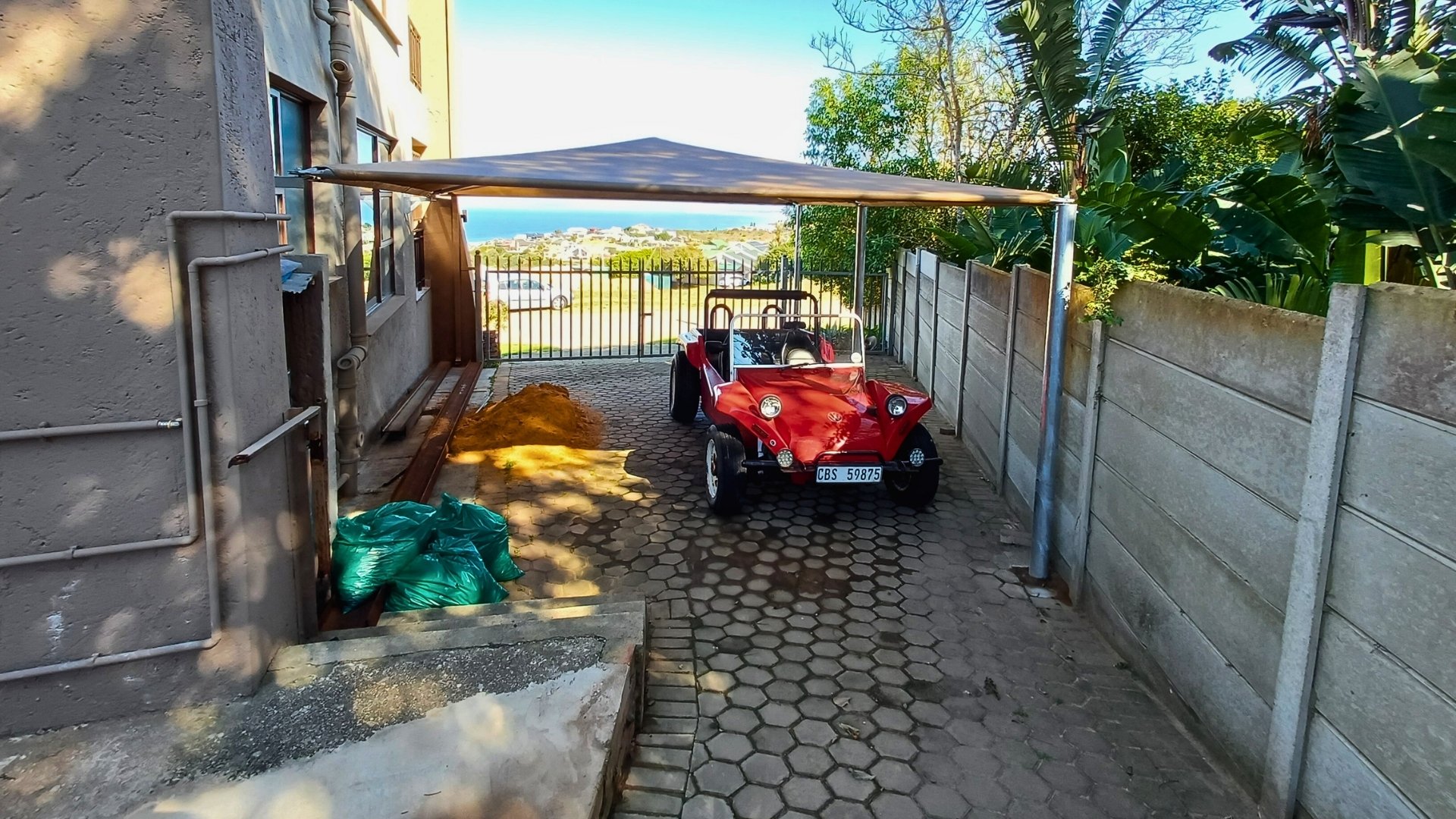 A seamless blend of living spaces welcomes you—an open-plan lounge, dining area, and braai room flow effortlessly into a brand-new modern kitchen with a separate scullery for added convenience. This wing offers four well-appointed bedrooms: two guest rooms sharing a bathroom and guest toilet, and two spacious en-suite main bedrooms. The upstairs master suite, complete with a full en-suite bathroom, opens onto a covered balcony, where you can take in the breathtaking ocean views.