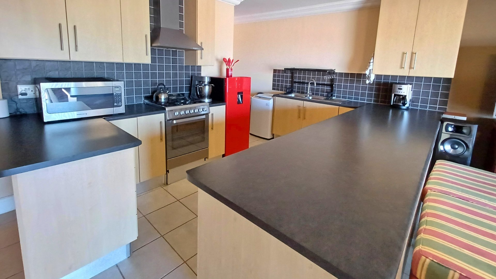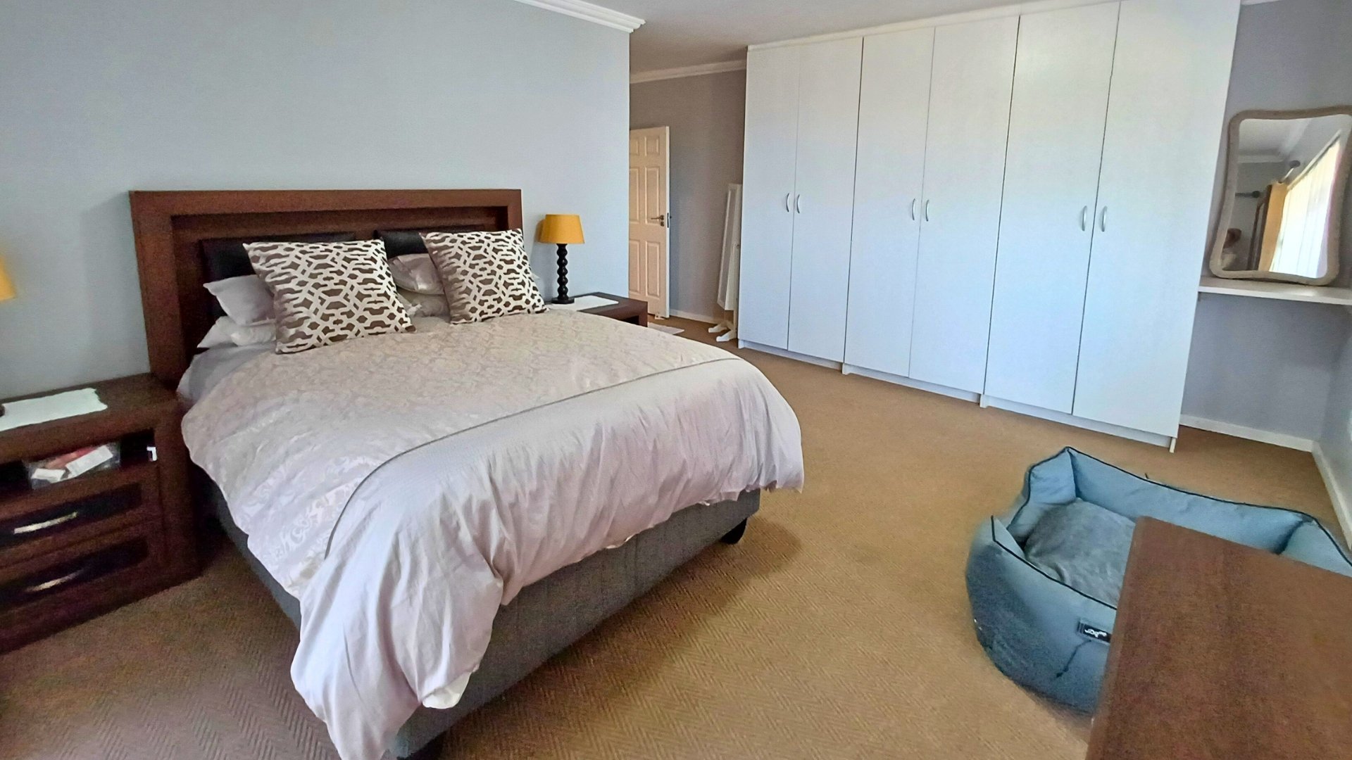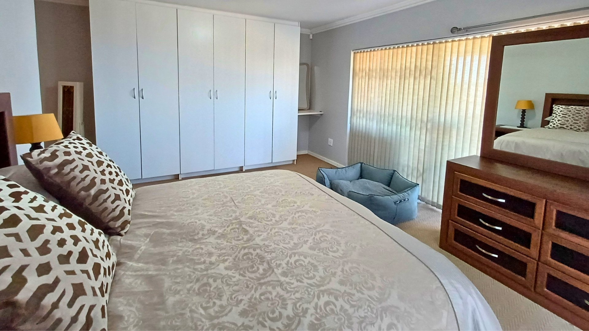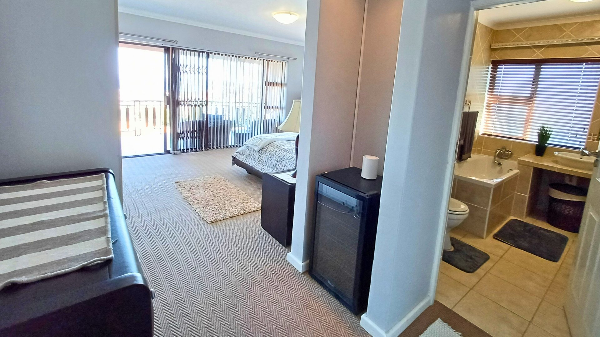 Warm and inviting, this section of the home features an open-plan lounge, dining area, braai lounge, and a stylish kitchen with a separate scullery/laundry. Two en-suite bedrooms occupy the ground level, while the luxurious upstairs master suite boasts its own balcony and full en-suite bathroom, providing the perfect retreat with mesmerizing sea views.