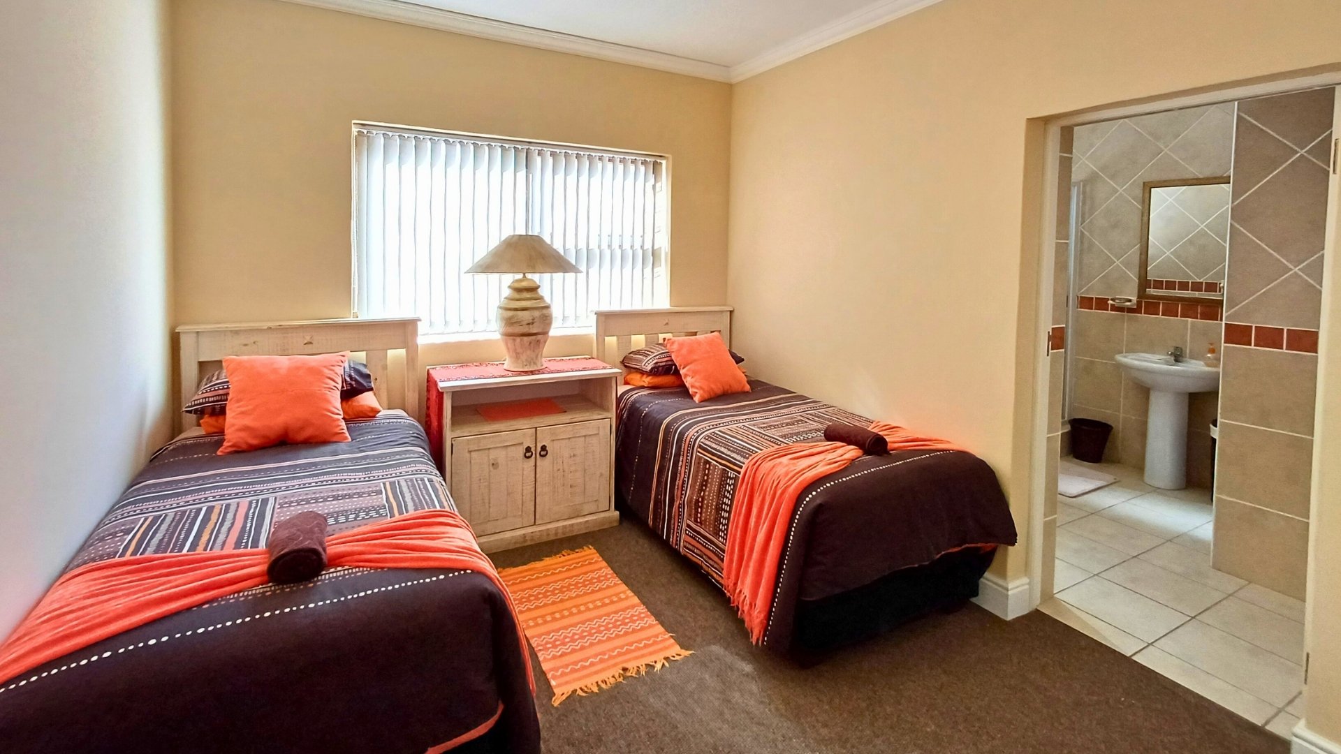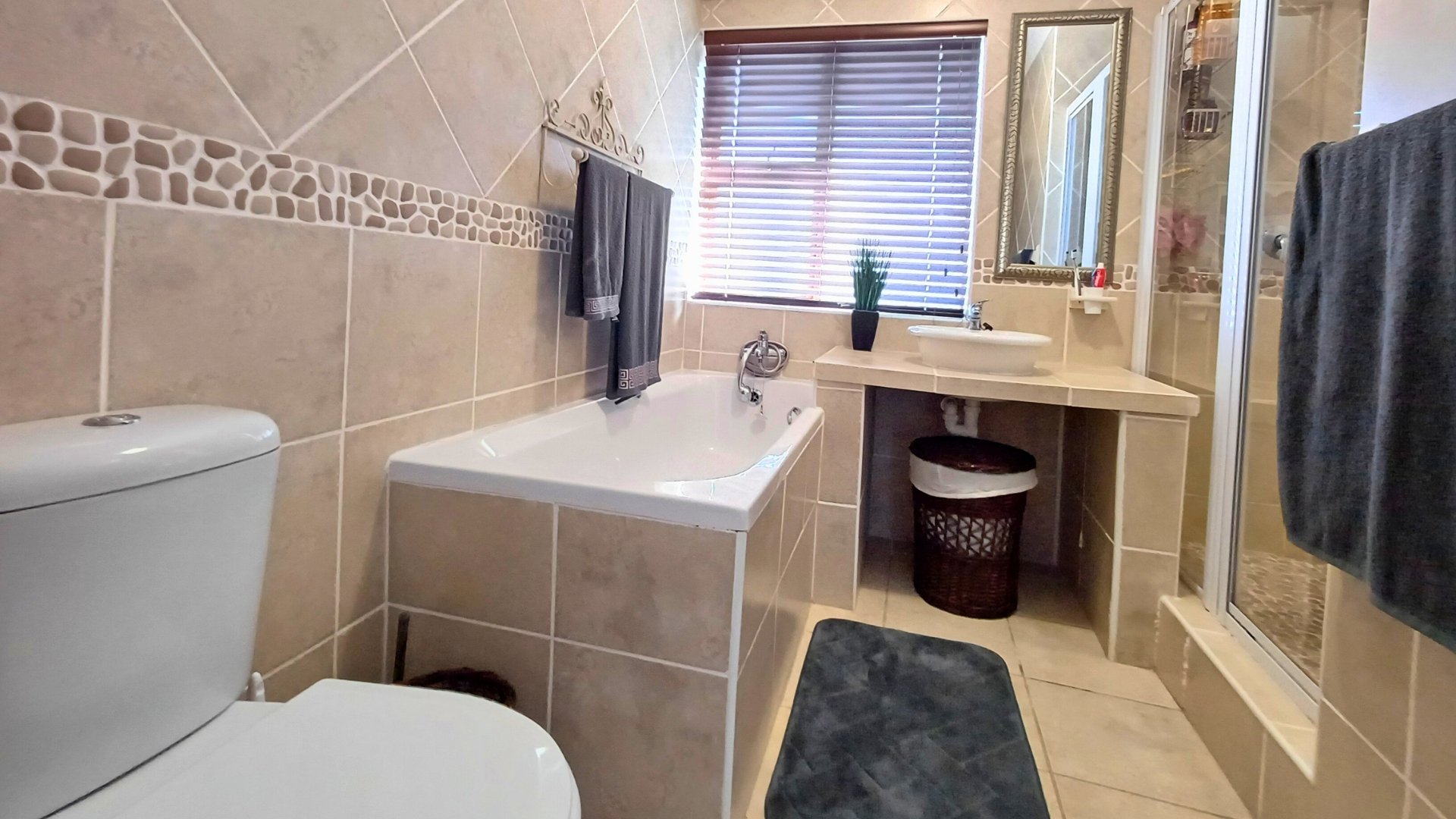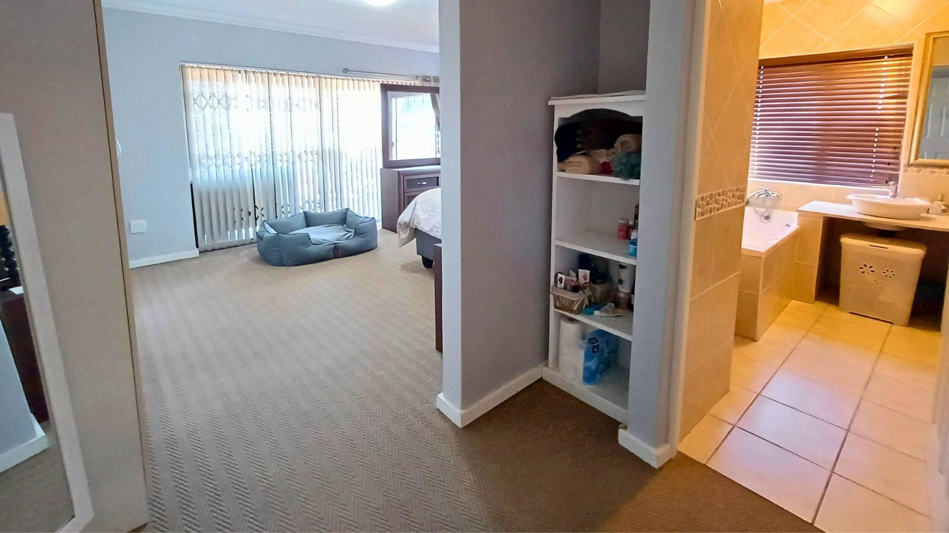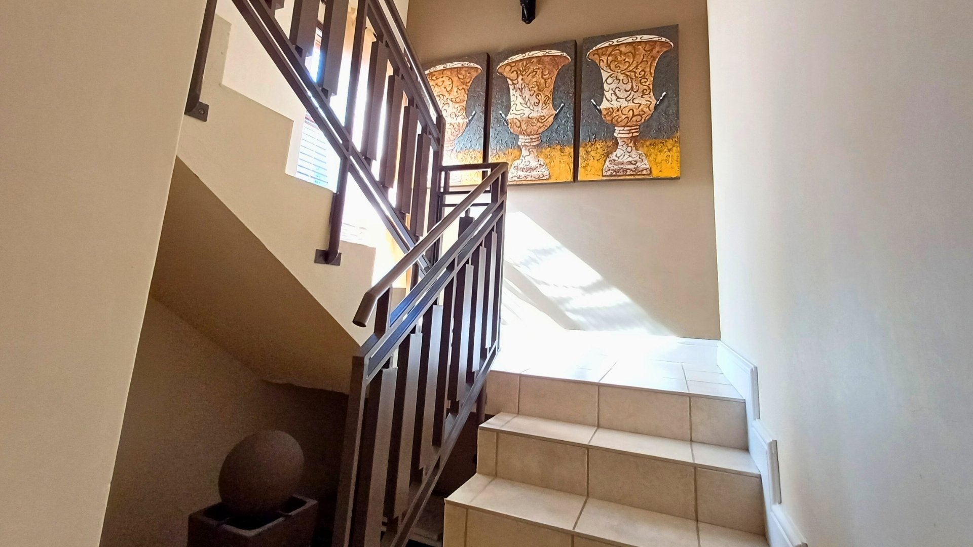 Warm and inviting, this section of the home features an open-plan lounge, dining area, braai lounge, and a stylish kitchen with a separate scullery/laundry. Two en-suite bedrooms occupy the ground level, while the luxurious upstairs master suite boasts its own balcony and full en-suite bathroom, providing the perfect retreat with mesmerizing sea views.