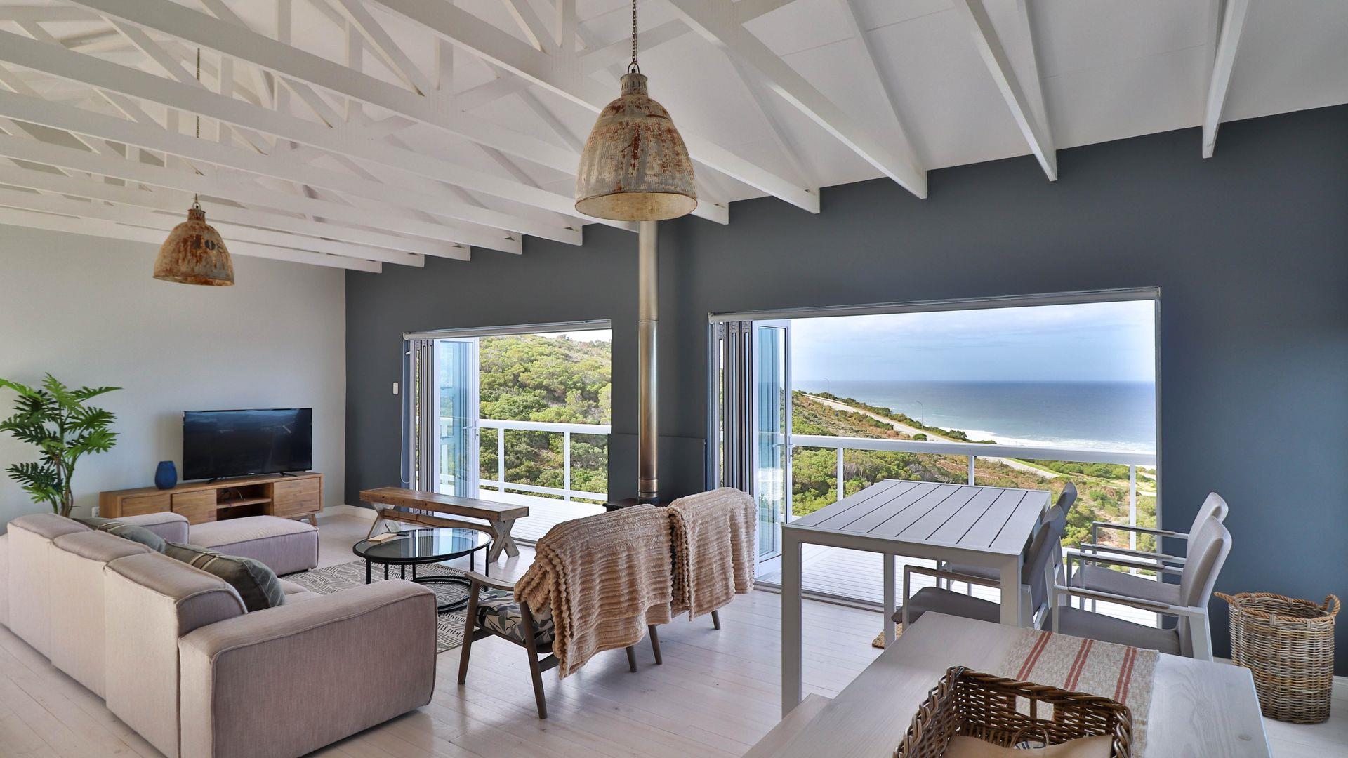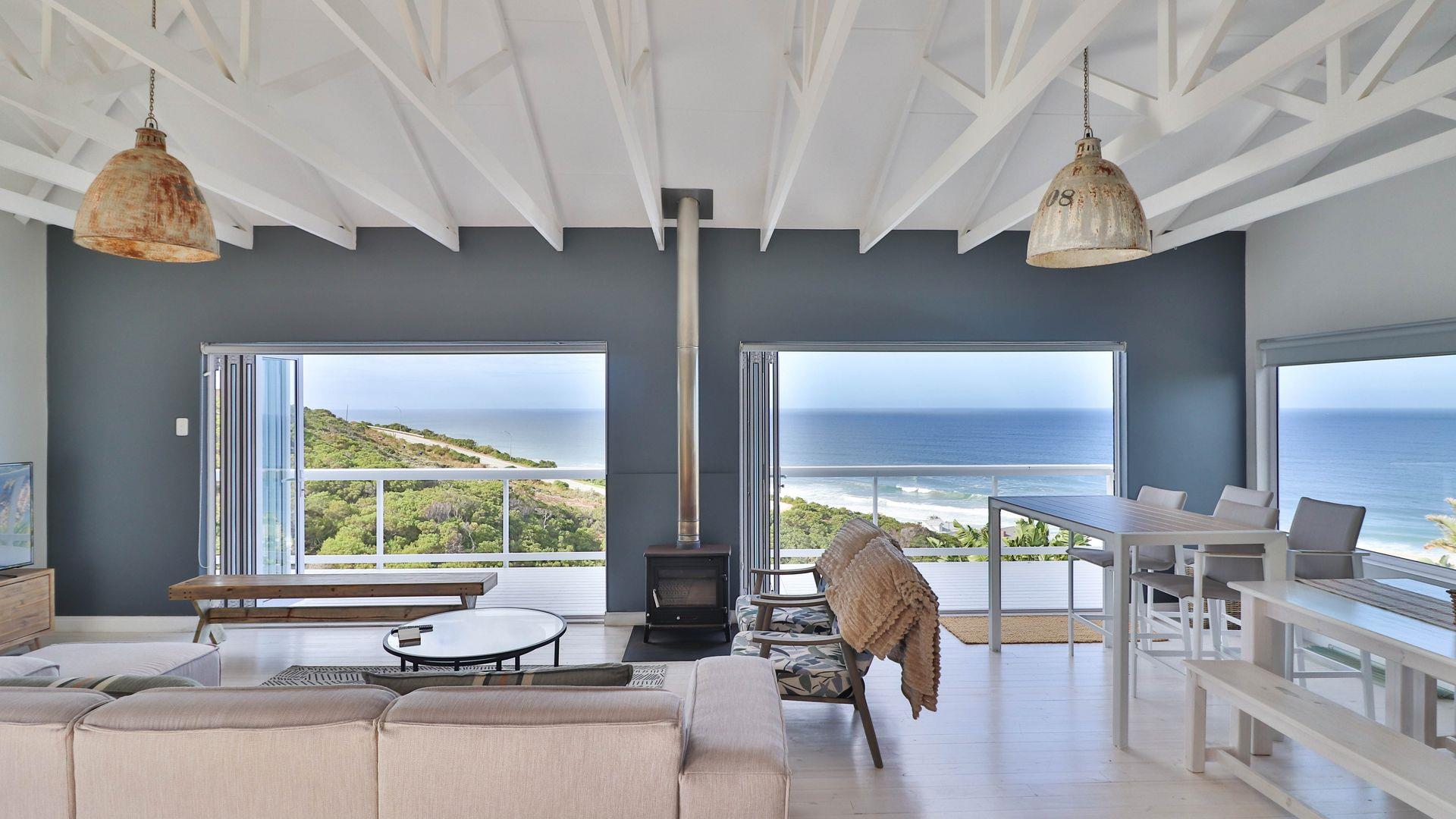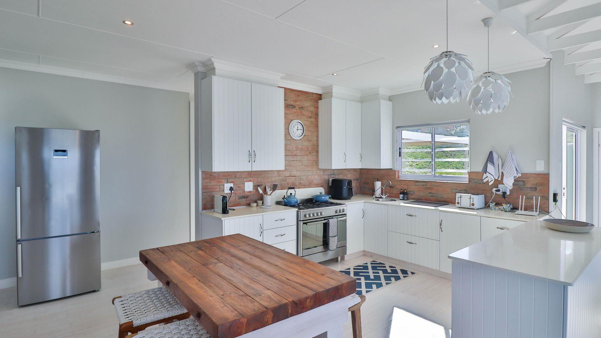 The living and dining areas are designed for seamless indoor-outdoor living, with stack doors that open up to the expansive balcony, perfect for entertaining or relaxing while taking in the stunning surroundings. a Cozy fireplace adds some charm for those cold winter nights. The open-plan kitchen is both stylish and functional, complete with a separate scullery to keep your space immaculate and organized.