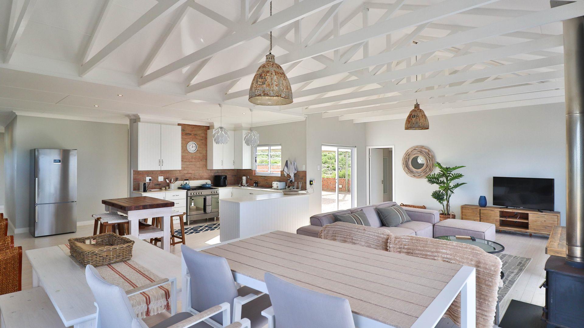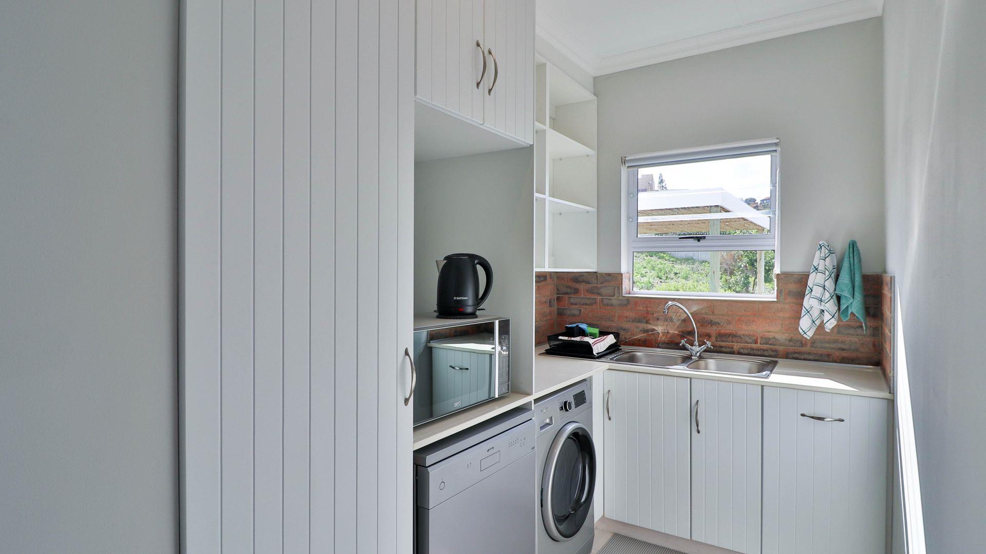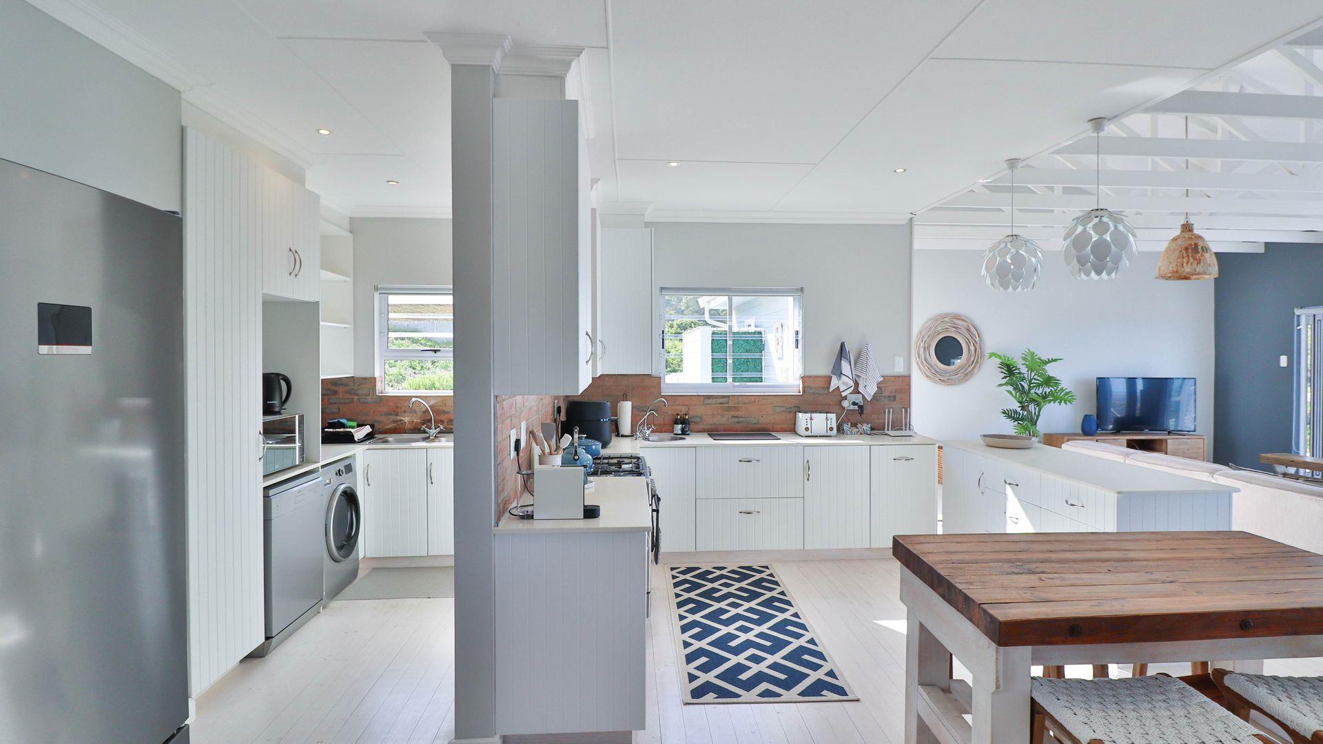 The living and dining areas are designed for seamless indoor-outdoor living, with stack doors that open up to the expansive balcony, perfect for entertaining or relaxing while taking in the stunning surroundings. a Cozy fireplace adds some charm for those cold winter nights. The open-plan kitchen is both stylish and functional, complete with a separate scullery to keep your space immaculate and organized.