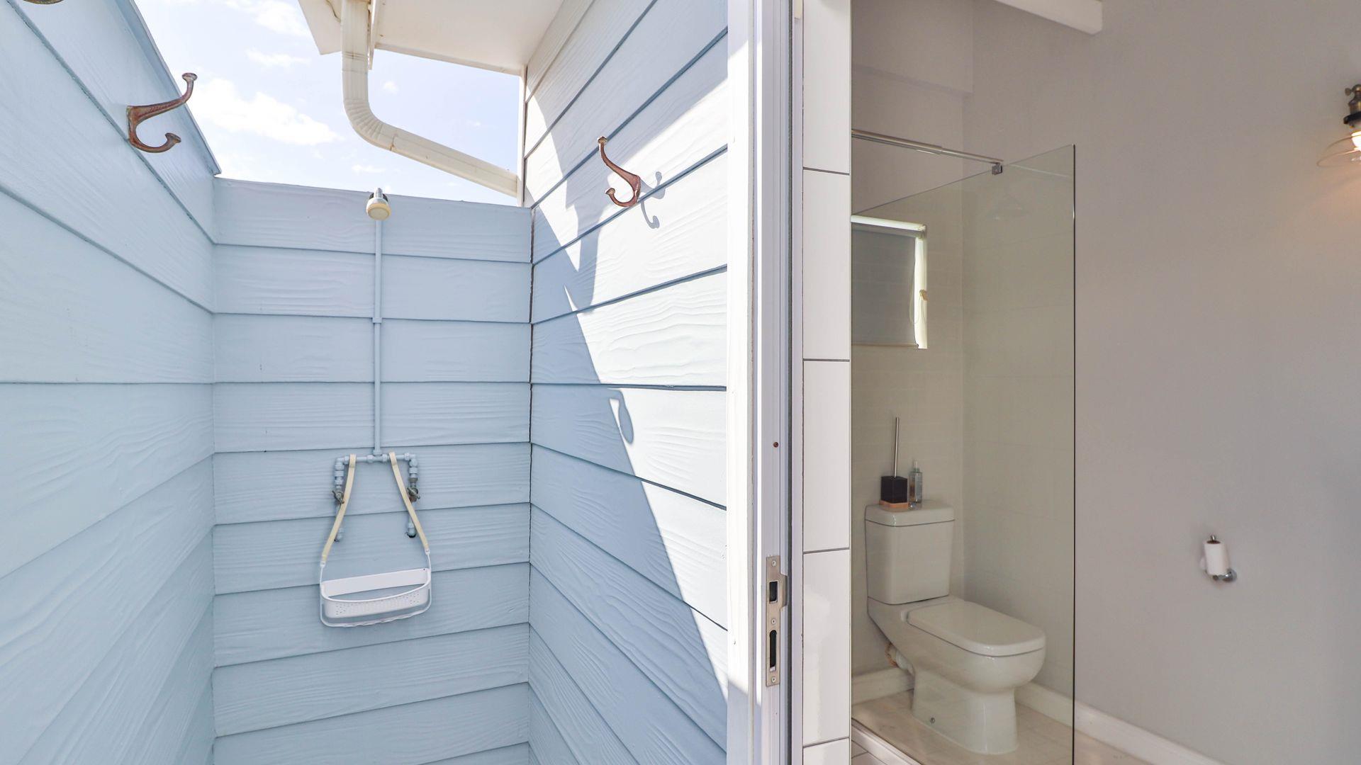 Step inside to find spacious bedrooms adorned with ample built-in cupboards, providing plenty of storage space for the entire family. The sumptuous main bedroom features an en-suite bathroom with an elegant outdoor shower and sliding doors that gracefully open onto a private balcony, where you can enjoy sweeping ocean vistas.