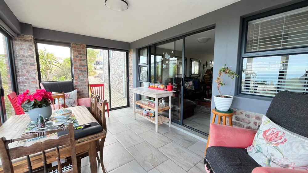 Seamlessly integrated yet capable of functioning as an independent unit, the second residence showcases a large open-plan kitchen (note: stove not included but negotiable), complete with a pantry and guest facilities. The open-plan living room extends onto an enclosed patio, equipped with a built-in braai, where you can enjoy the sea views year-round. The upper level features a full bathroom and two additional bedrooms, one of which opens onto another balcony with stunning ocean vistas. Ample cupboard space ensures plenty of storage throughout the home.