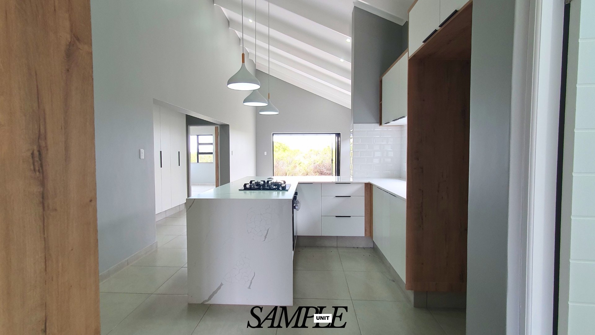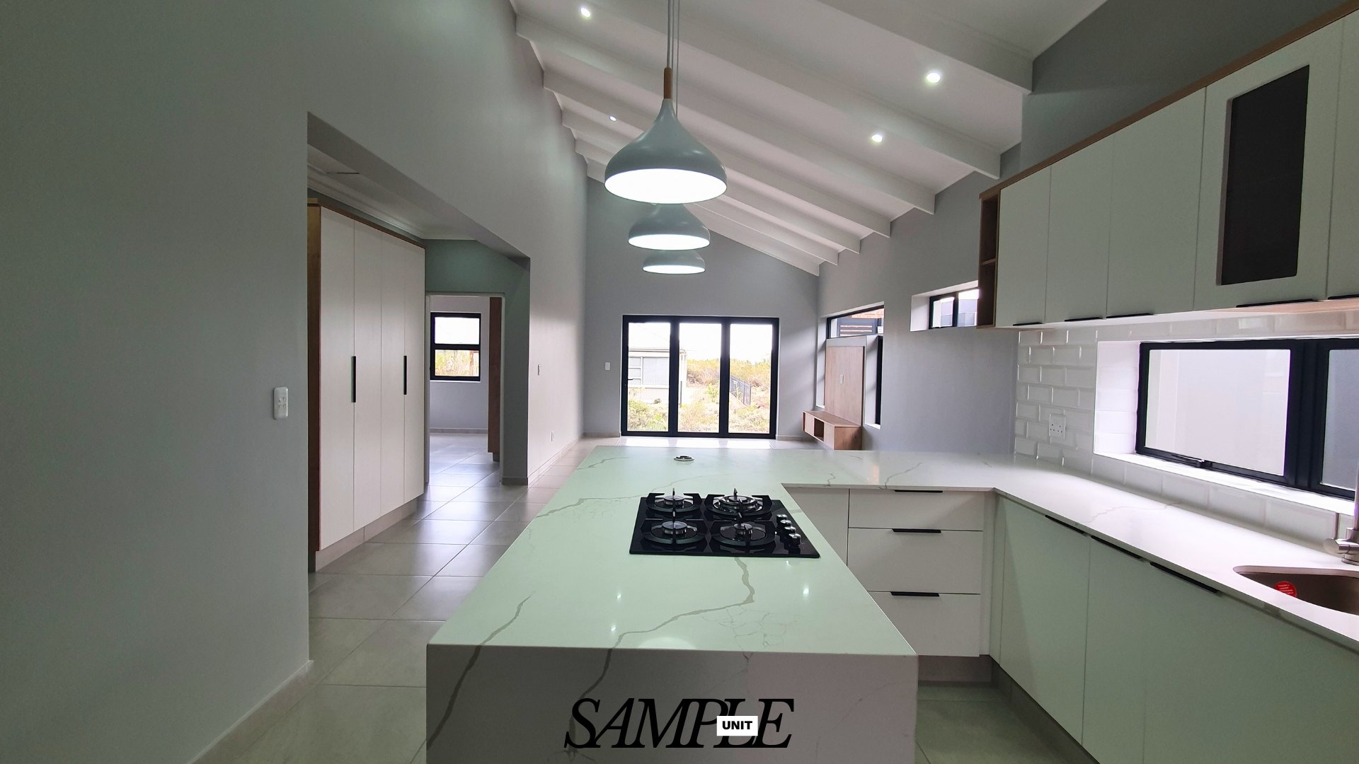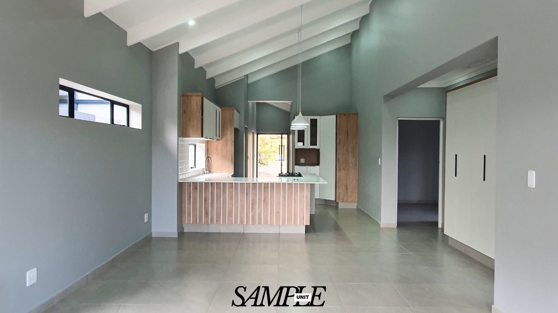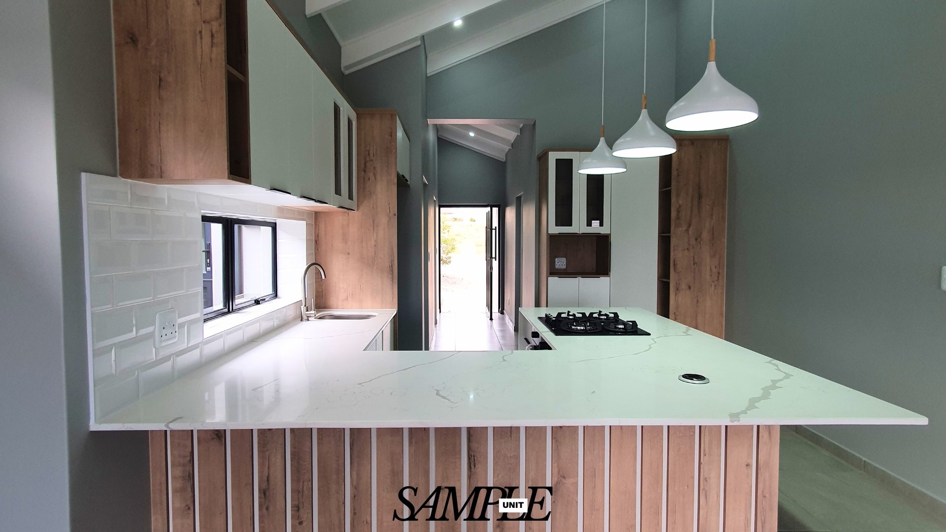 These beautifully designed homes feature an open-plan living area that flows effortlessly to a patio with an outdoor braai, perfect for relaxed entertaining. The kitchen is equipped with a breakfast counter, gas cooktop, oven, and ample space for a double fridge/freezer.