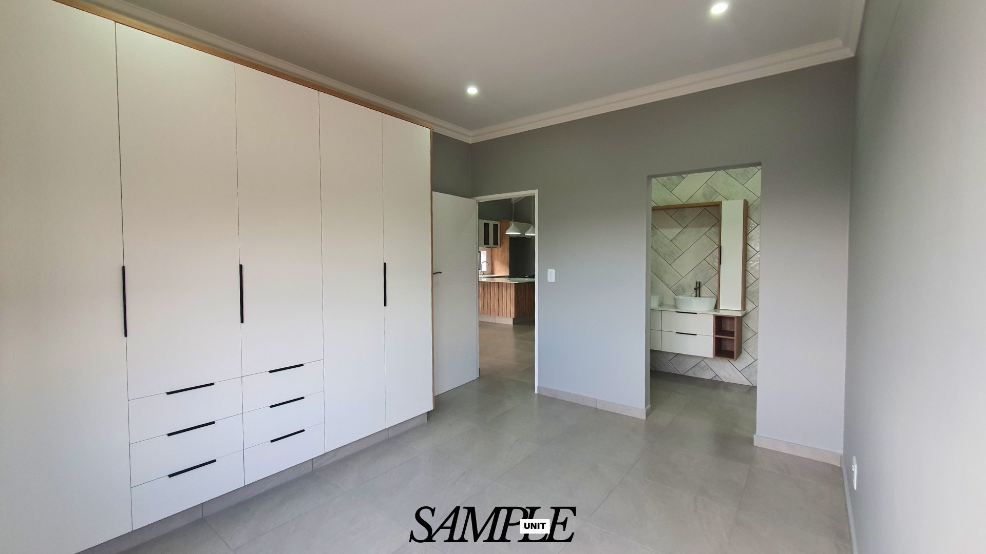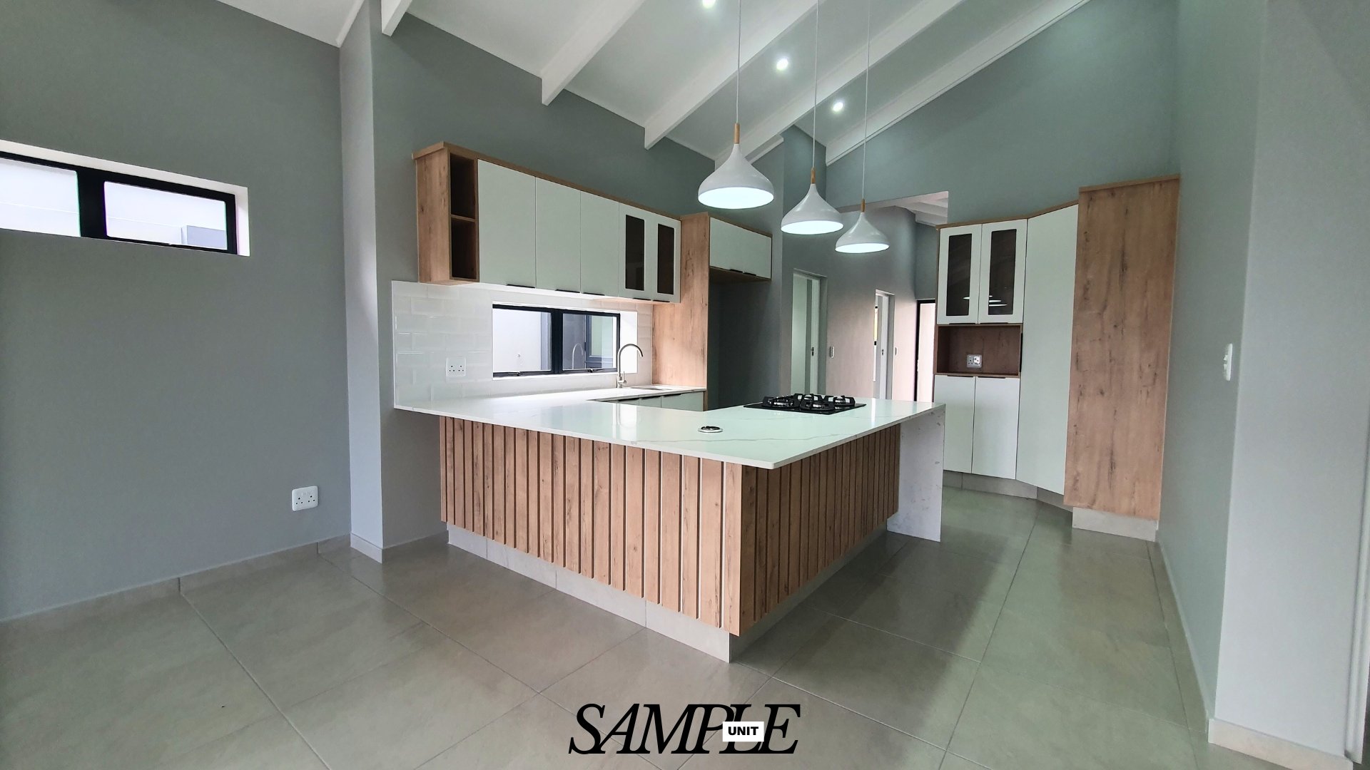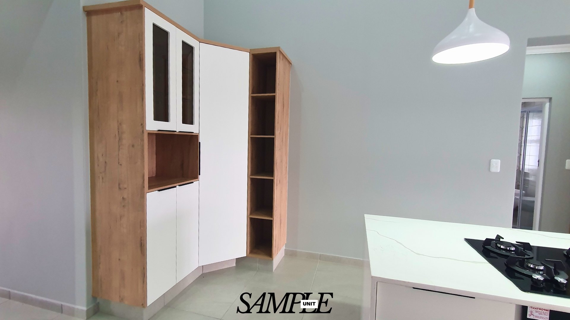 These beautifully designed homes feature an open-plan living area that flows effortlessly to a patio with an outdoor braai, perfect for relaxed entertaining. The kitchen is equipped with a breakfast counter, gas cooktop, oven, and ample space for a double fridge/freezer.