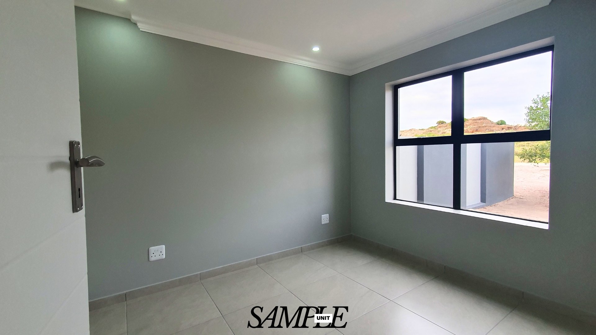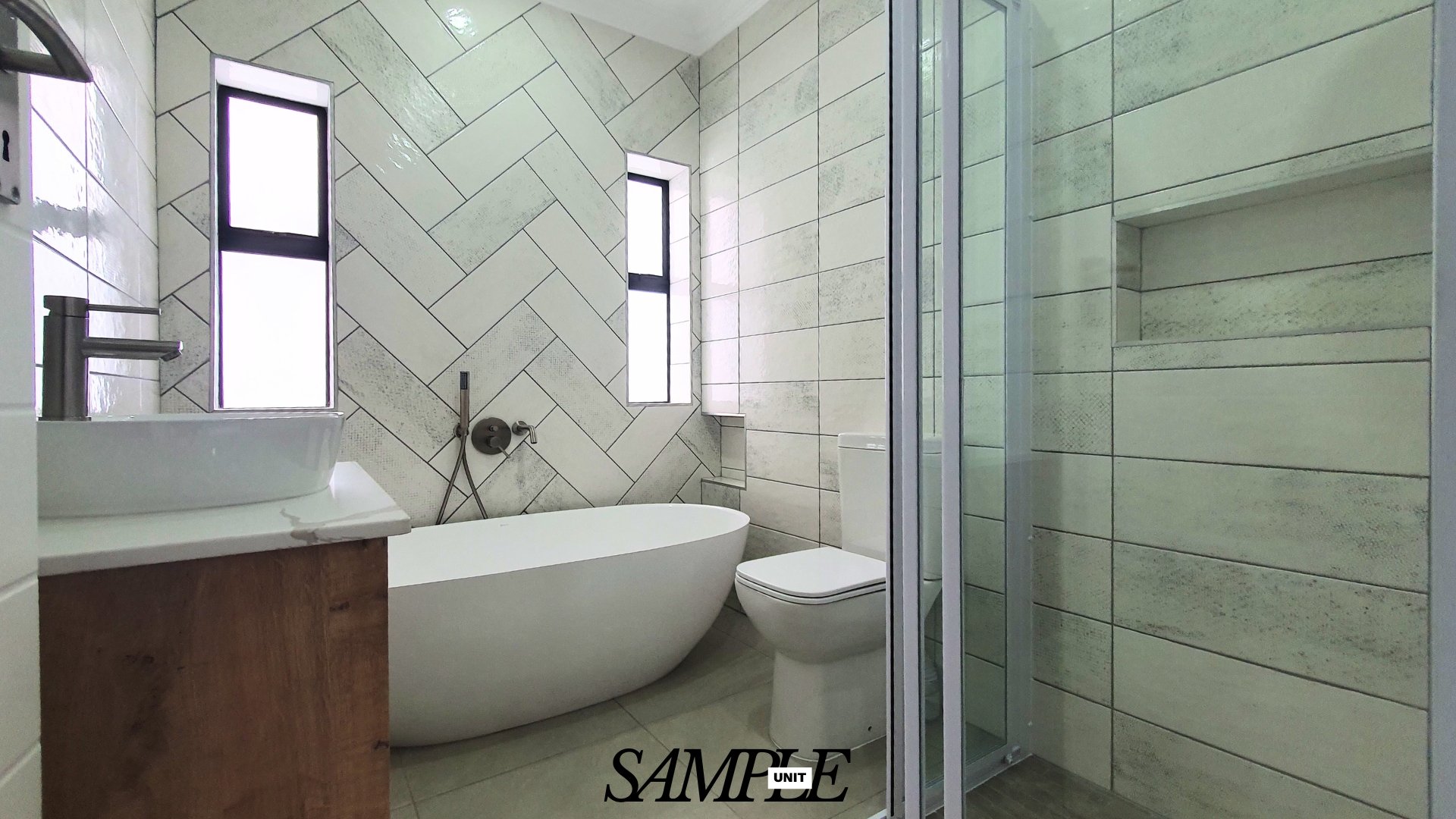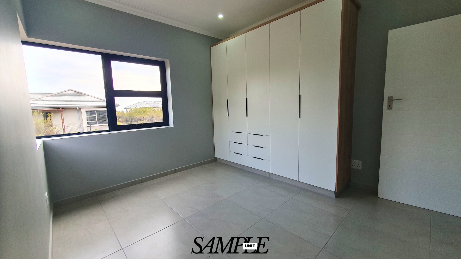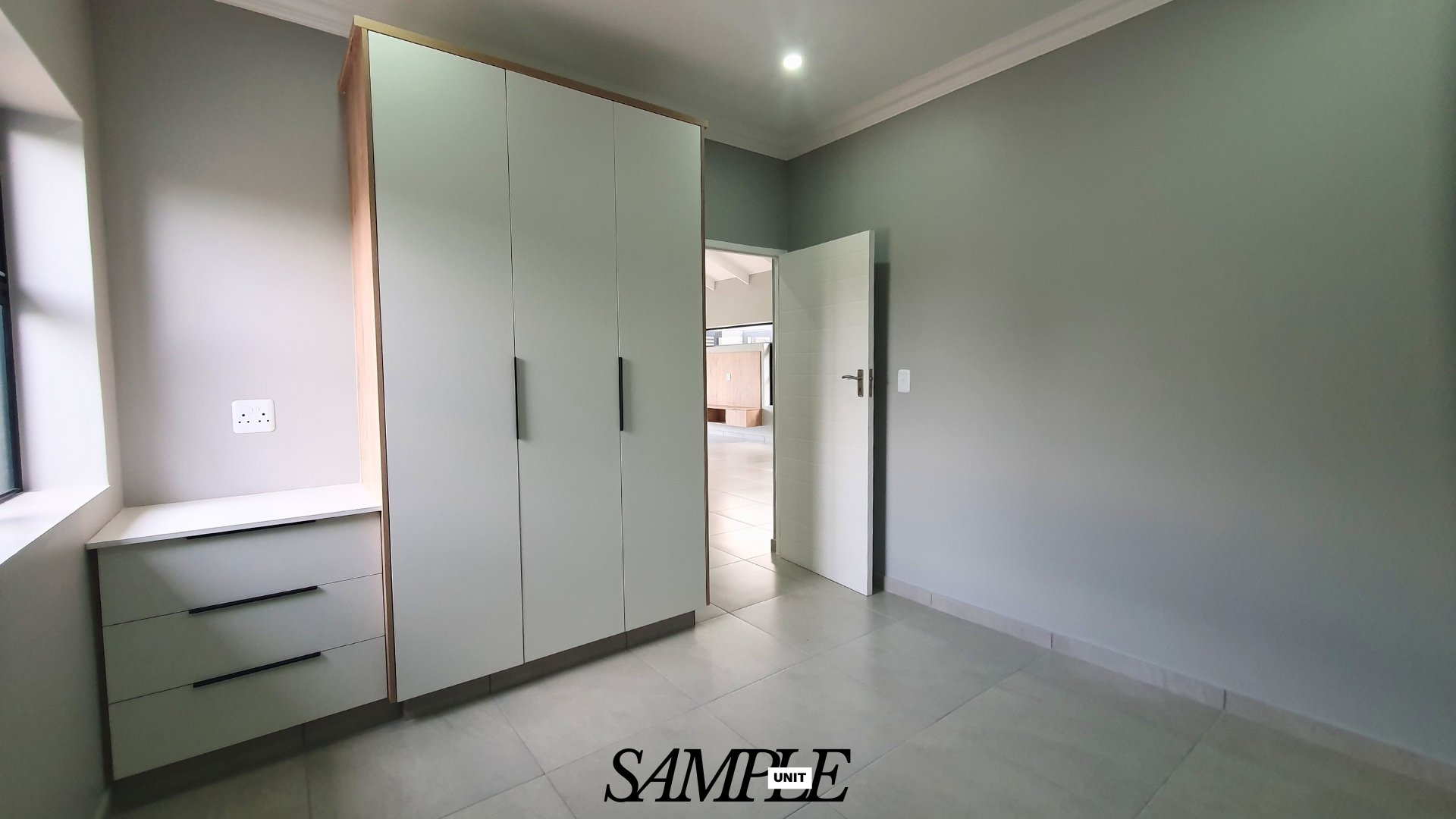 These beautifully designed homes feature an open-plan living area that flows effortlessly to a patio with an outdoor braai, perfect for relaxed entertaining. The kitchen is equipped with a breakfast counter, gas cooktop, oven, and ample space for a double fridge/freezer.