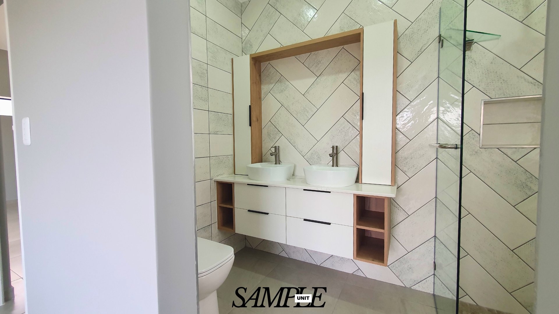 Each unit includes three bedrooms with built-in cupboards, including a master suite with an en-suite bathroom, while the two additional bedrooms share a full bathroom. A double garage with laundry space, a 2500L water storage tank, and pet-friendly policies (with terms and conditions) enhance the practicality of these homes.
