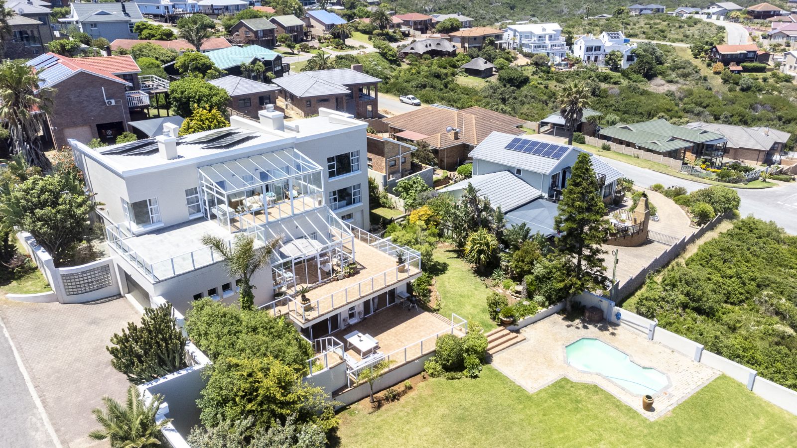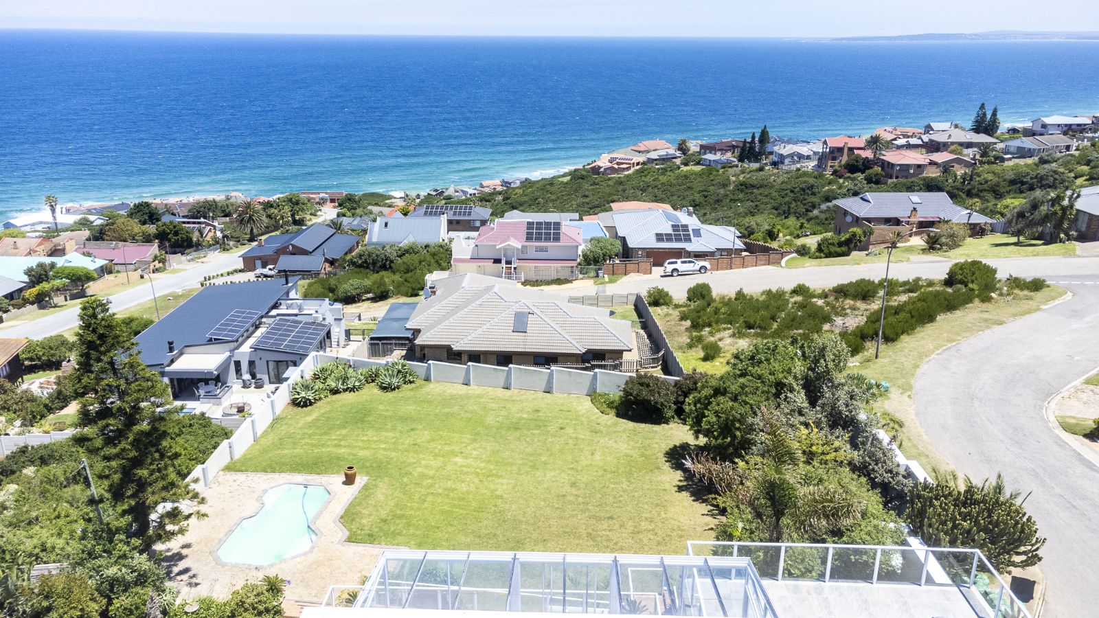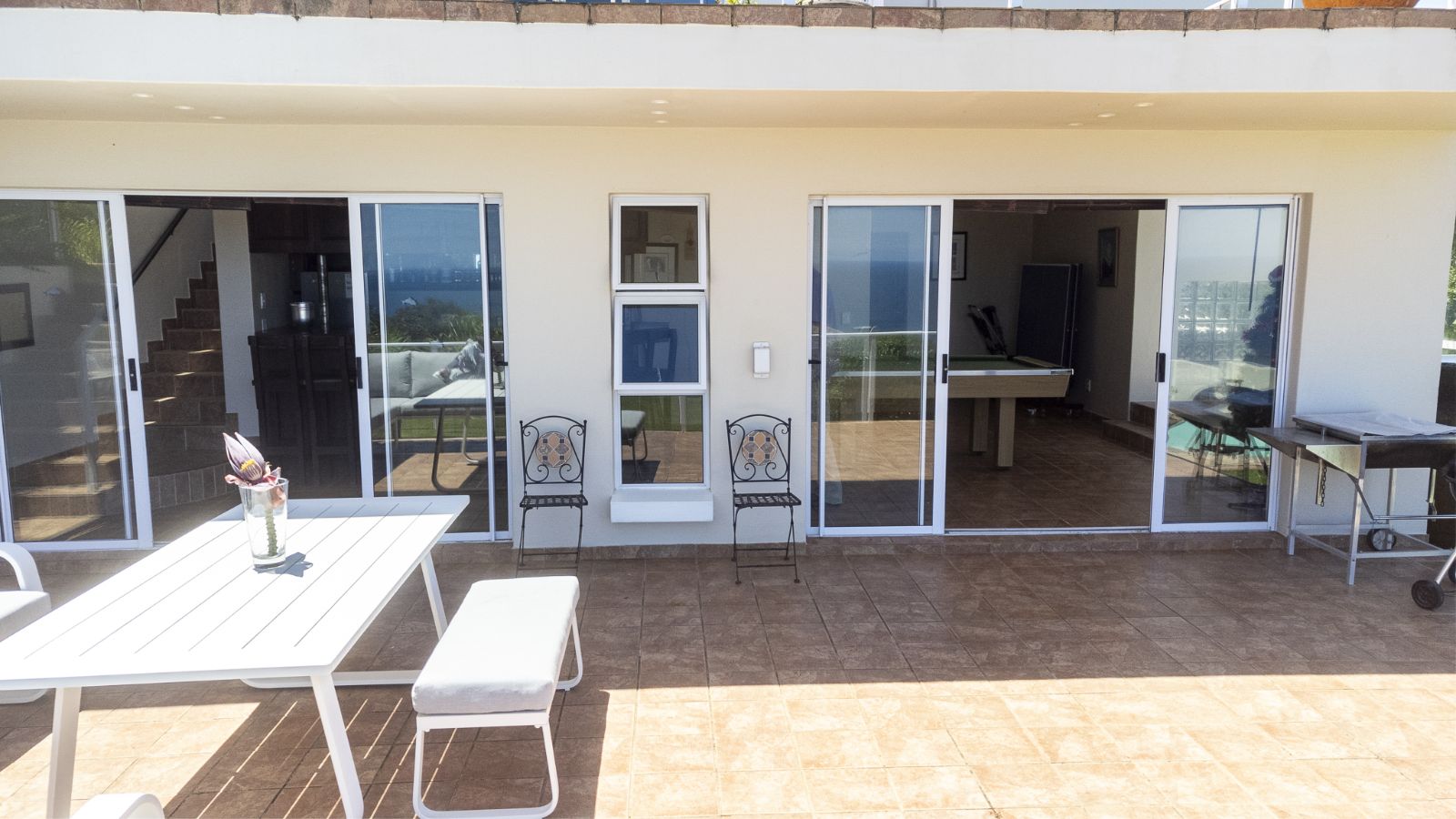 The living areas links with a braai room, ideal for hosting friends and family while enjoying the uninterrupted sea views. The outdoor space includes a sparkling pool, perfect for relaxing or entertaining, and the double garage provides convenient, secure parking.