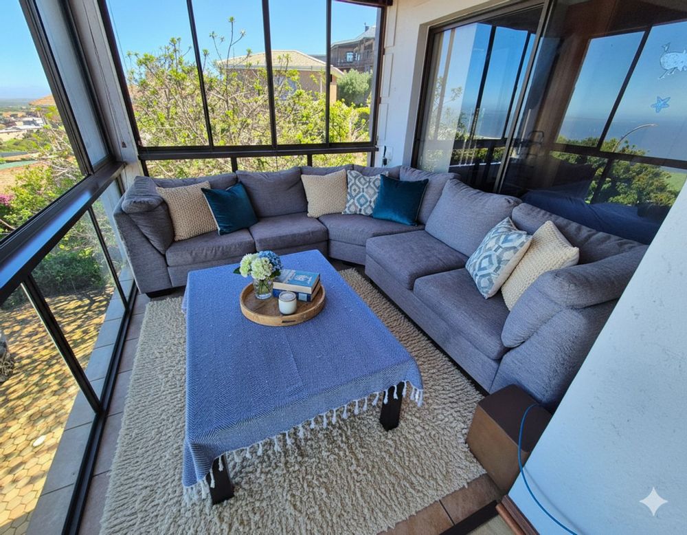 The main residence is situated on the upper floor, designed to maximize the coastal panorama. It features an incredibly spacious, light-filled living area complete with an indoor braai (barbecue), perfect for entertaining year-round. The open-plan kitchen boasts a gas hob, extractor fan, and electric oven, flowing seamlessly into a practical scullery/laundry room.