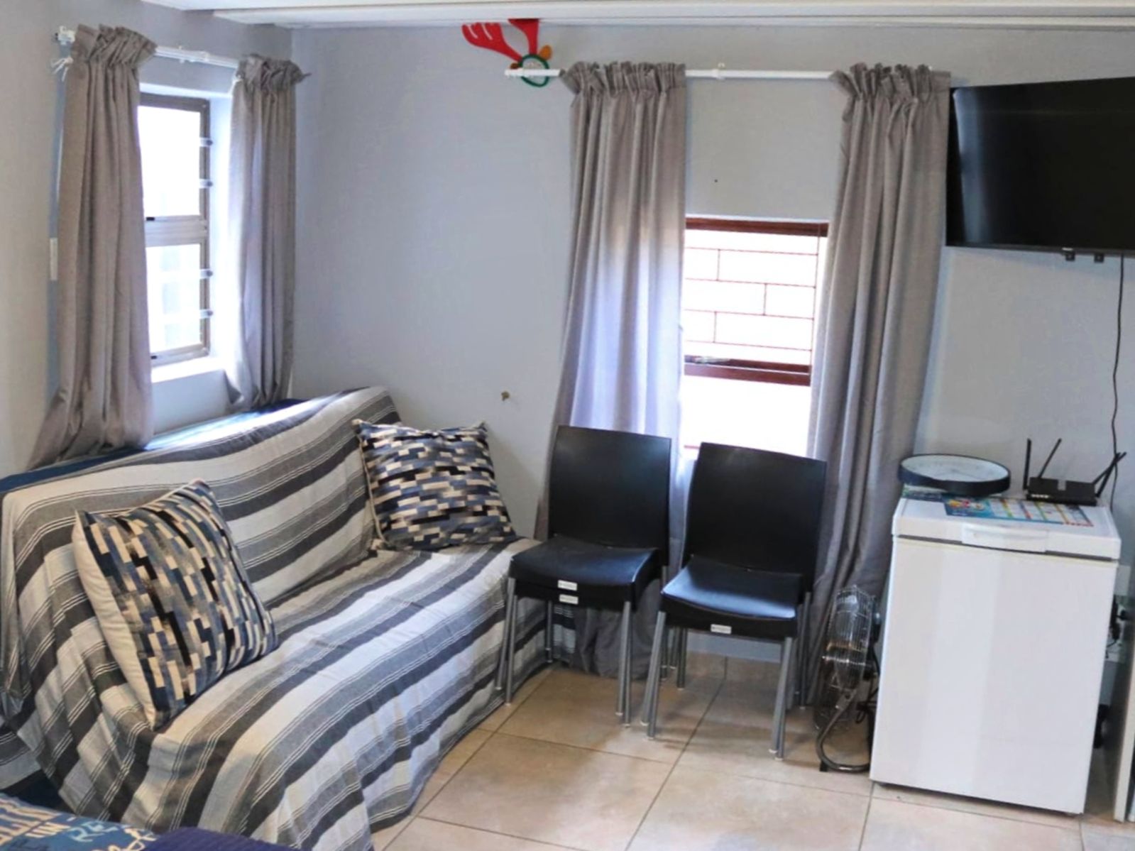 Flat 1 – Attached to the main house with a private entrance, featuring one bedroom, lounge, and kitchenette.