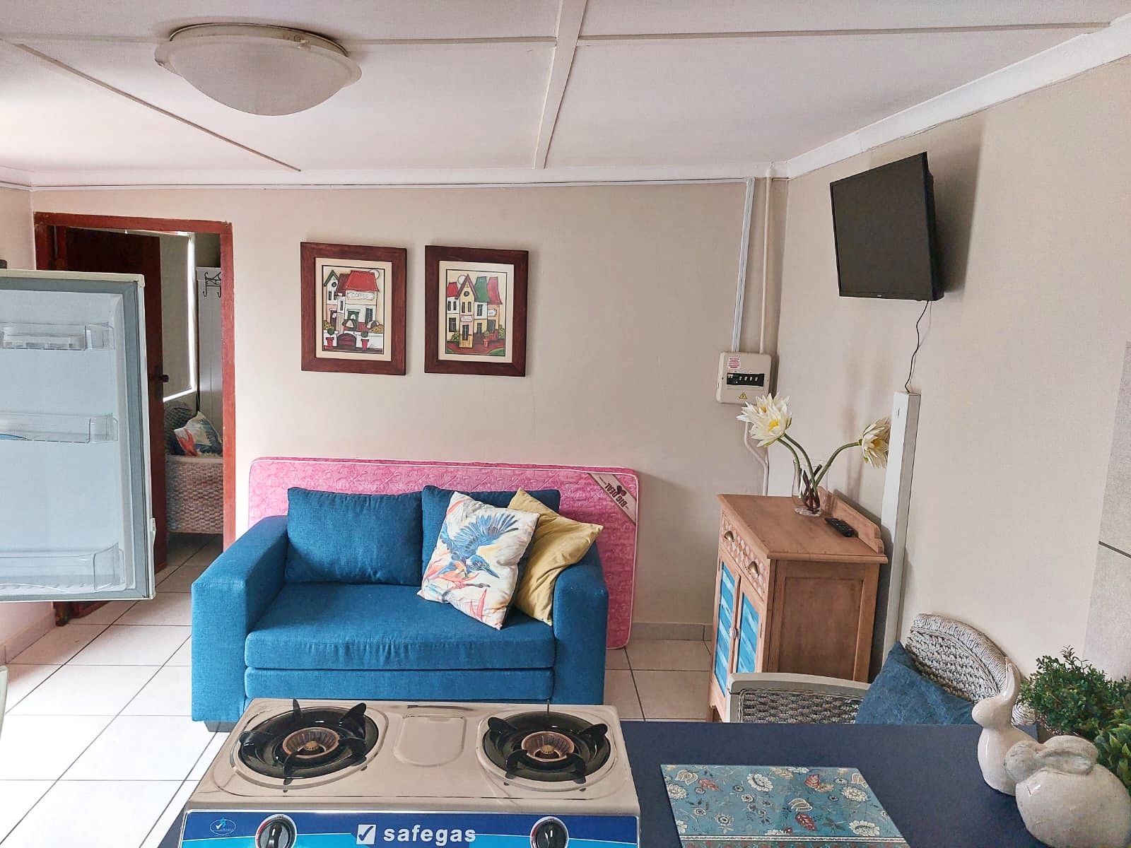 Flat 2 – Freestanding with its own entrance and shaded parking, offering an open-plan kitchen, lounge, and one bedroom.
