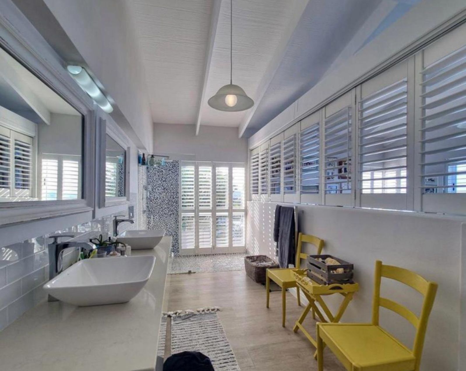 Master suite boasts a lavish en-suite bathroom, ample storage, and 180-degree sea views, while a second upstairs bedroom and full bathroom are perfect for guests. Downstairs, two more bedrooms open to a peaceful garden veranda, offering privacy and relaxation also having there own lounge opening up to the patio . The bathroom downstairs is separate for the convienence of guests as well.