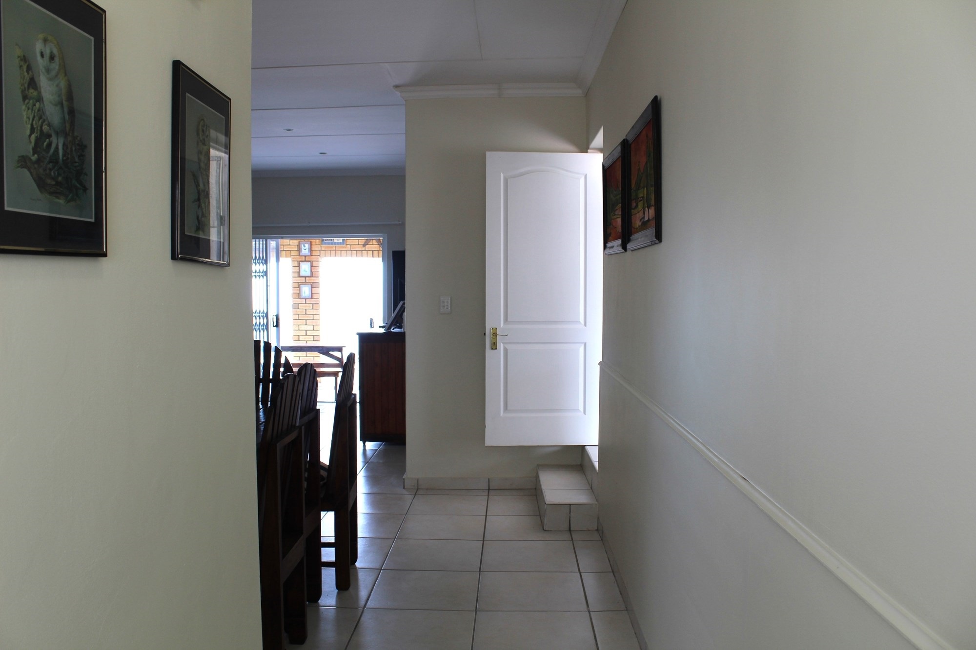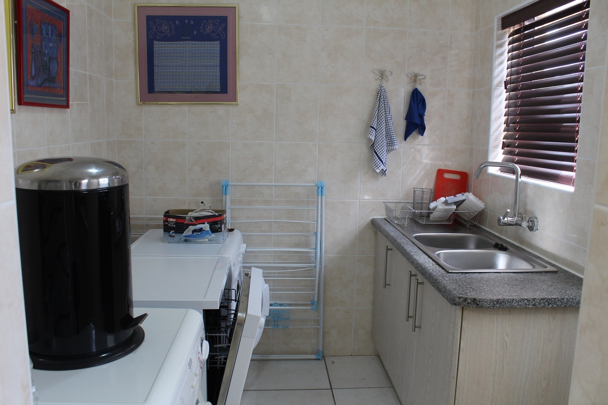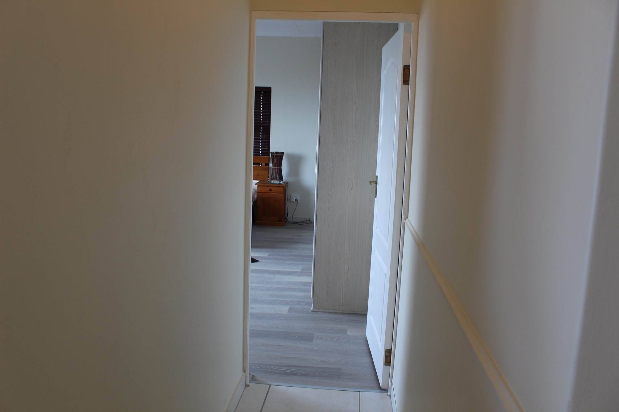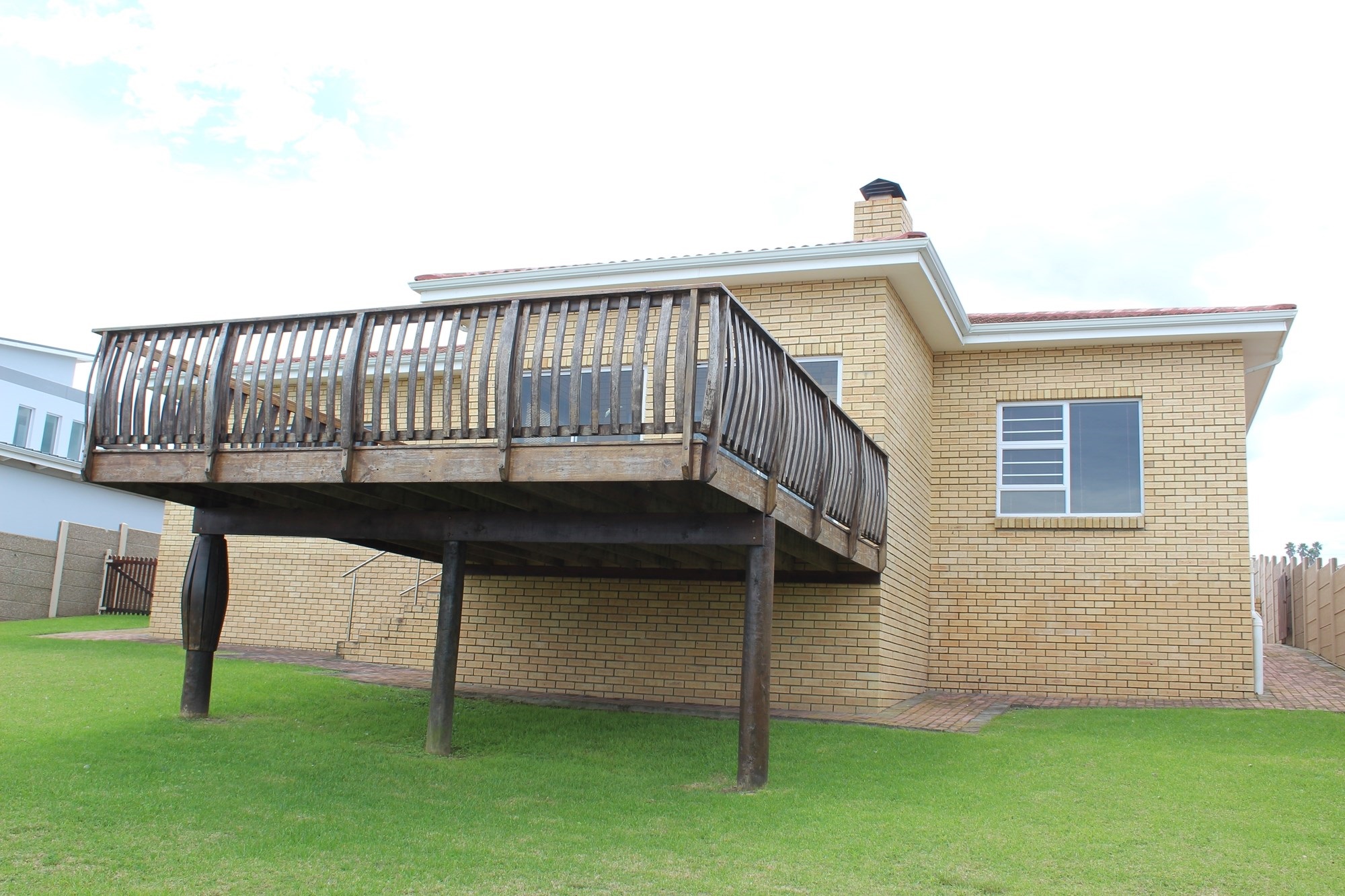 This low-maintenance face-brick residence is situated on a generous 770 sqm stand and spans 197 sqm. It offers three bedrooms, all with built-in cupboards and blinds, as well as an open-plan kitchen, dining, and living area. The kitchen also has a scullery and laundry area, equipped with connections for a washing machine, dishwasher, and dryer. Enjoy entertaining in the separate braai area, complete with a deck and stunning sea views. The property also boasts an enclosed garden, automatic double garage, and secure gate.