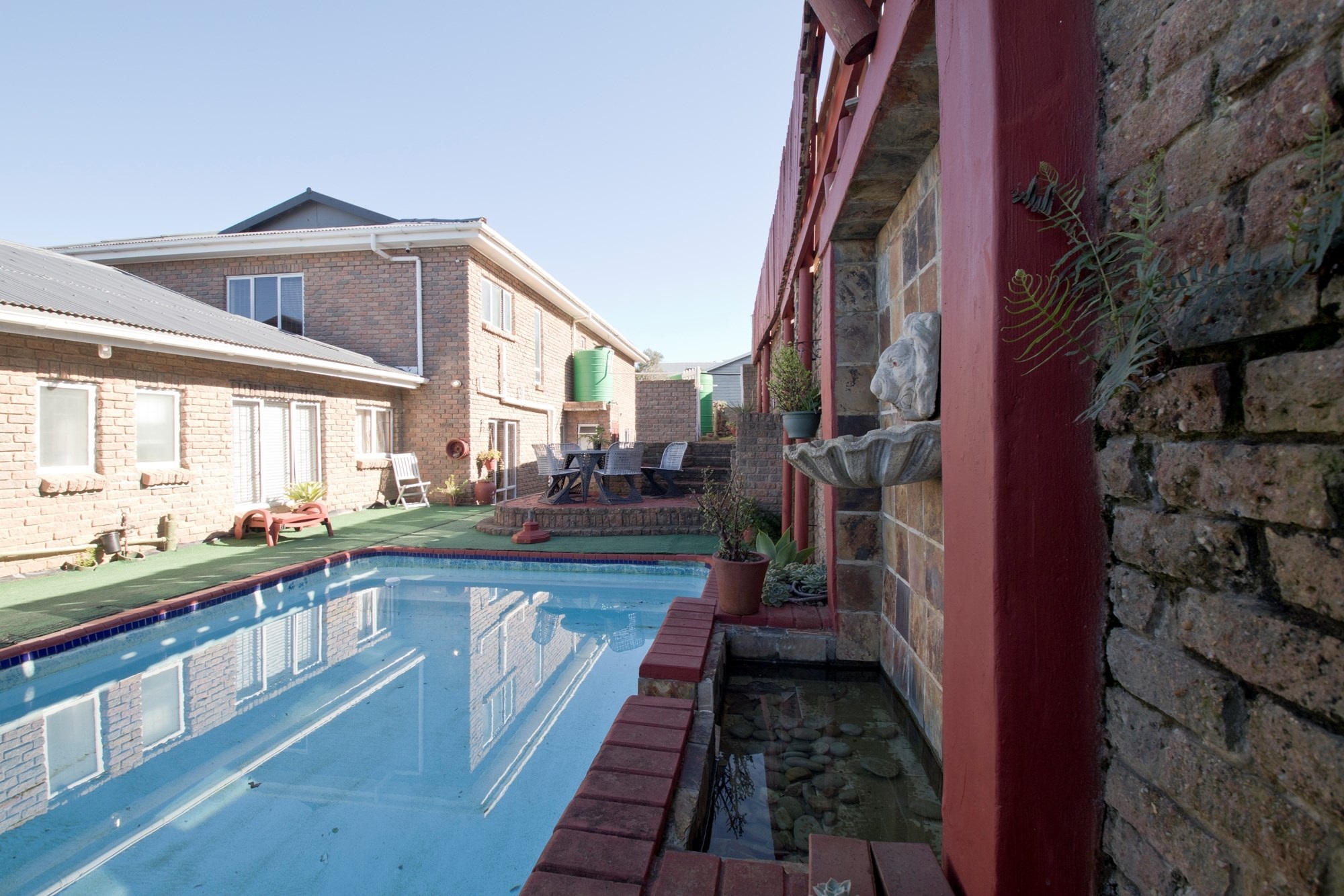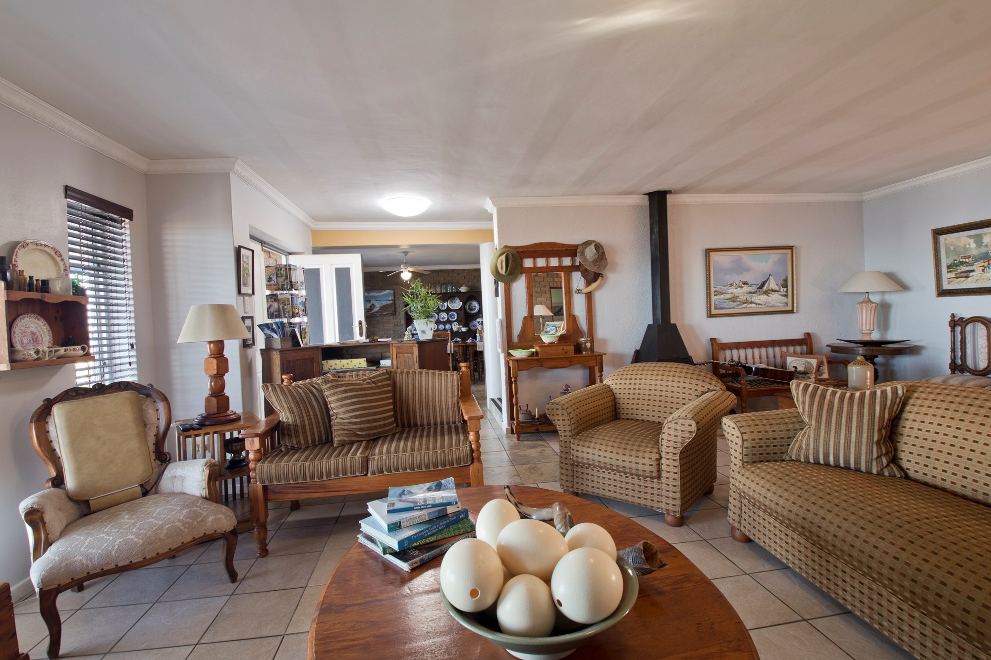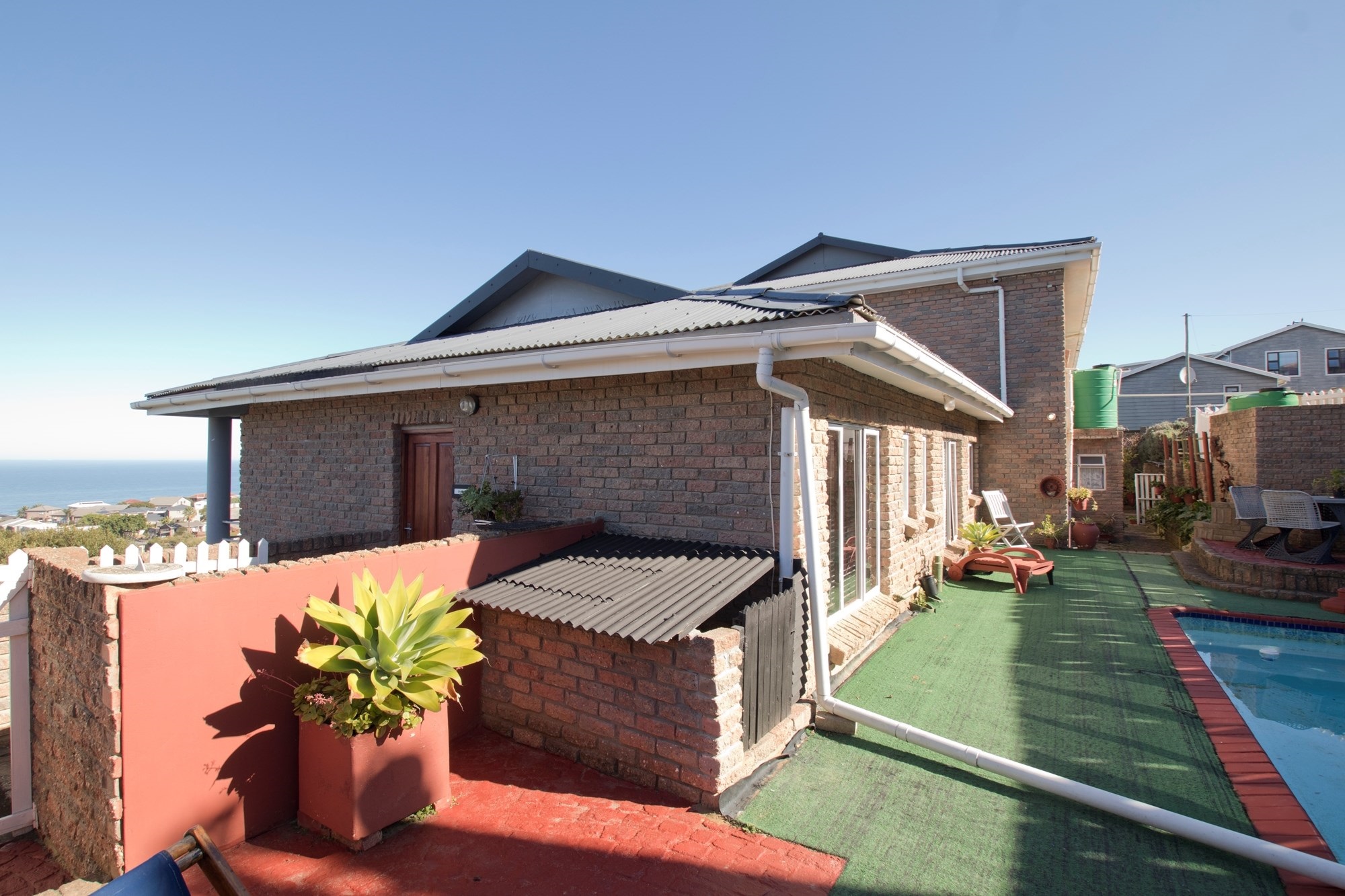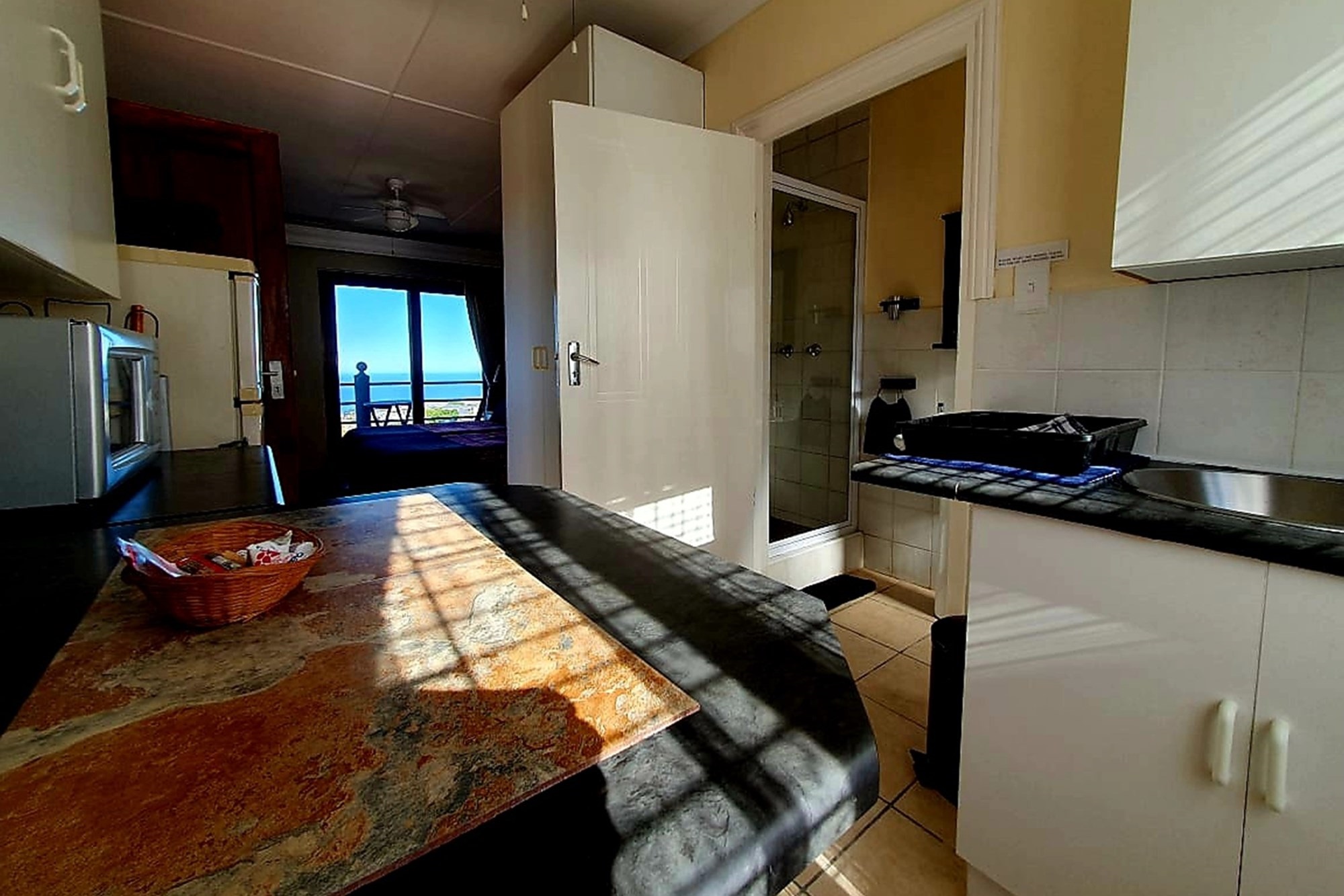 The main house includes a welcoming lounge, dining area, fitted kitchen, guest toilet, study, and a spacious indoor braai room with ocean vistas. Outside, guests can enjoy the large swimming pool, sun terraces, and peaceful patios—ideal for relaxing or entertaining.