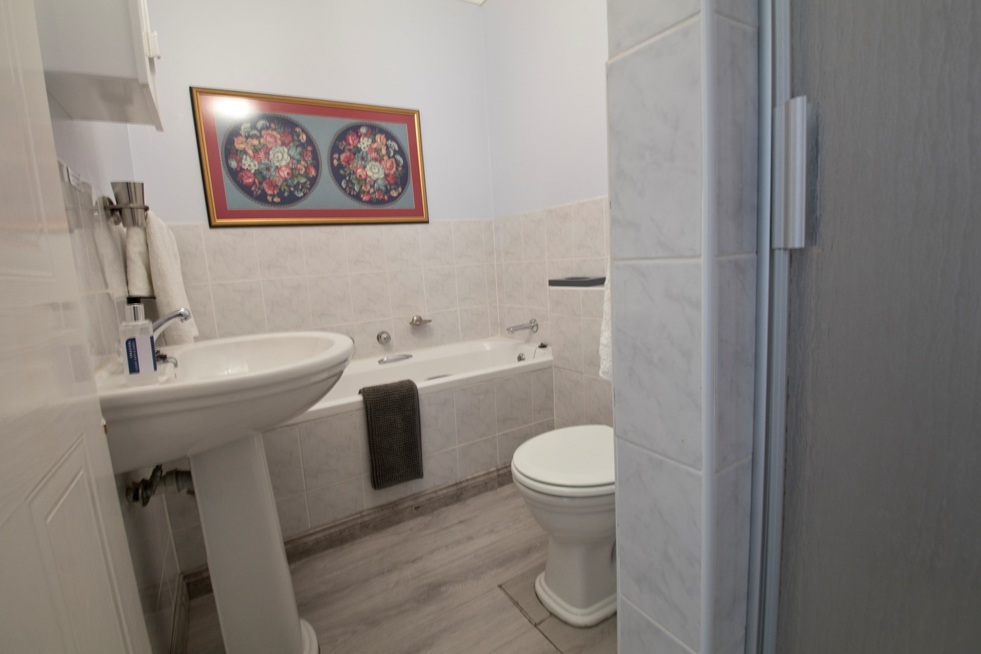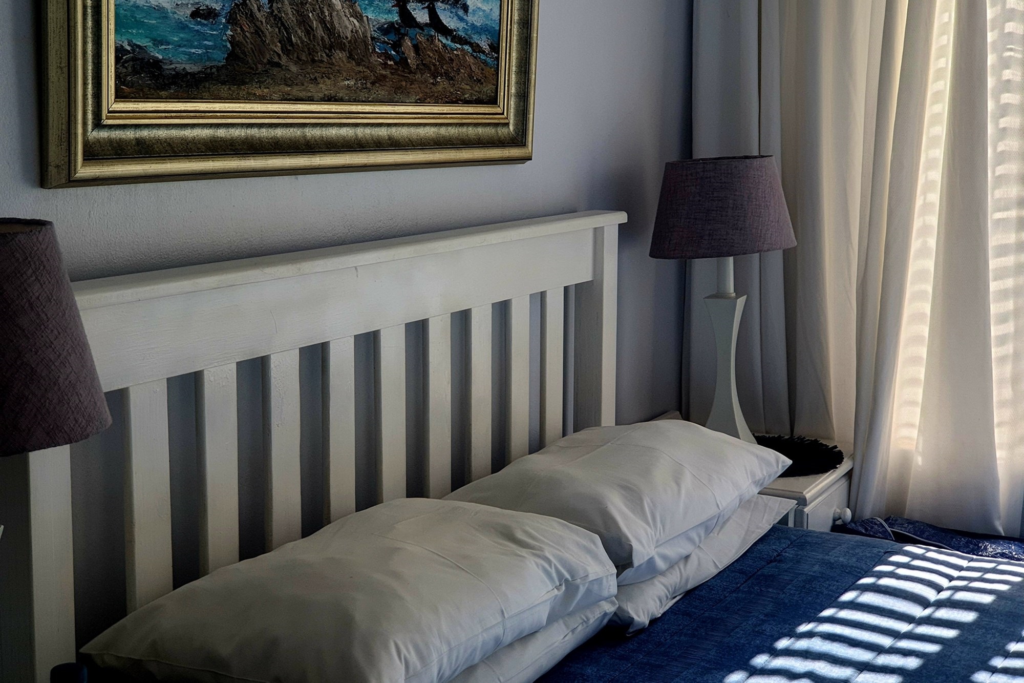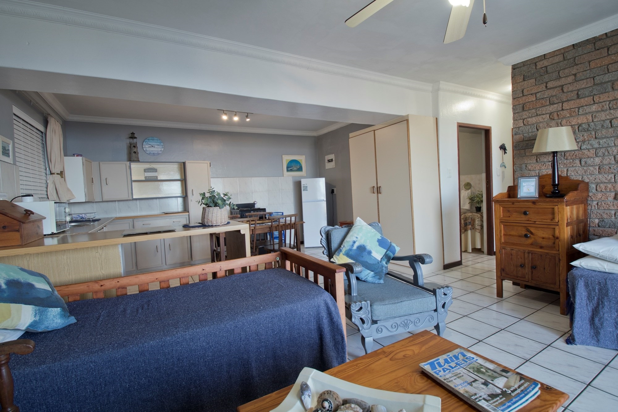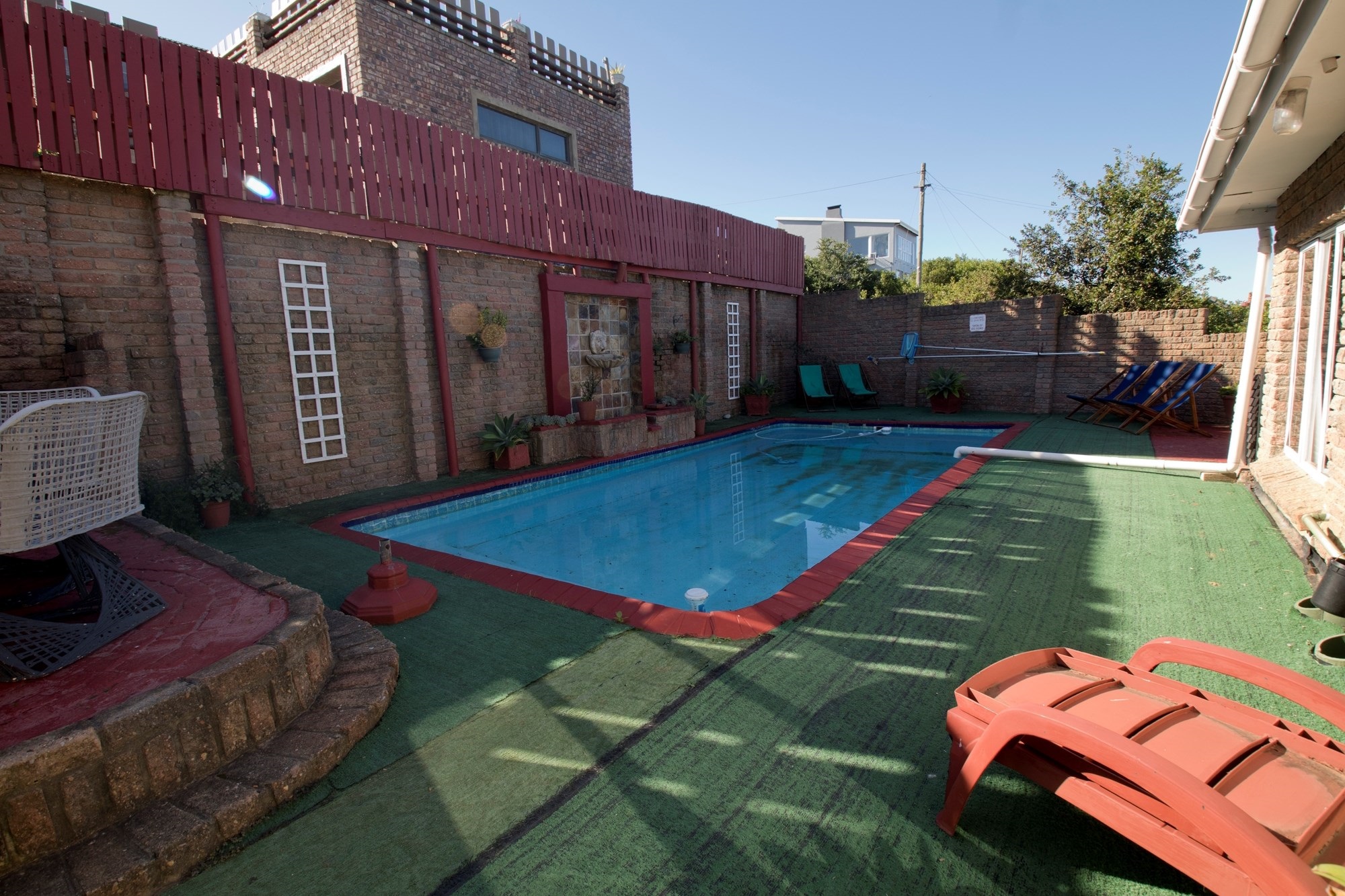 The main house includes a welcoming lounge, dining area, fitted kitchen, guest toilet, study, and a spacious indoor braai room with ocean vistas. Outside, guests can enjoy the large swimming pool, sun terraces, and peaceful patios—ideal for relaxing or entertaining.