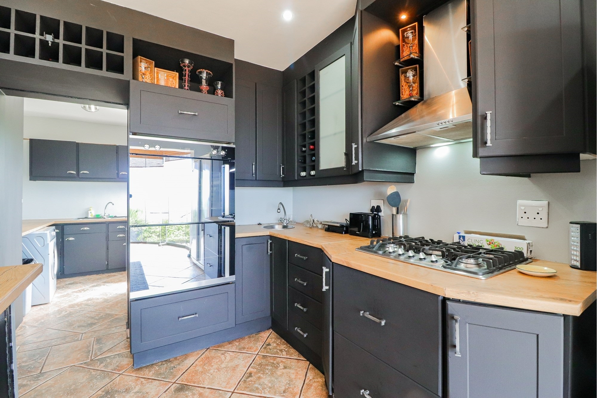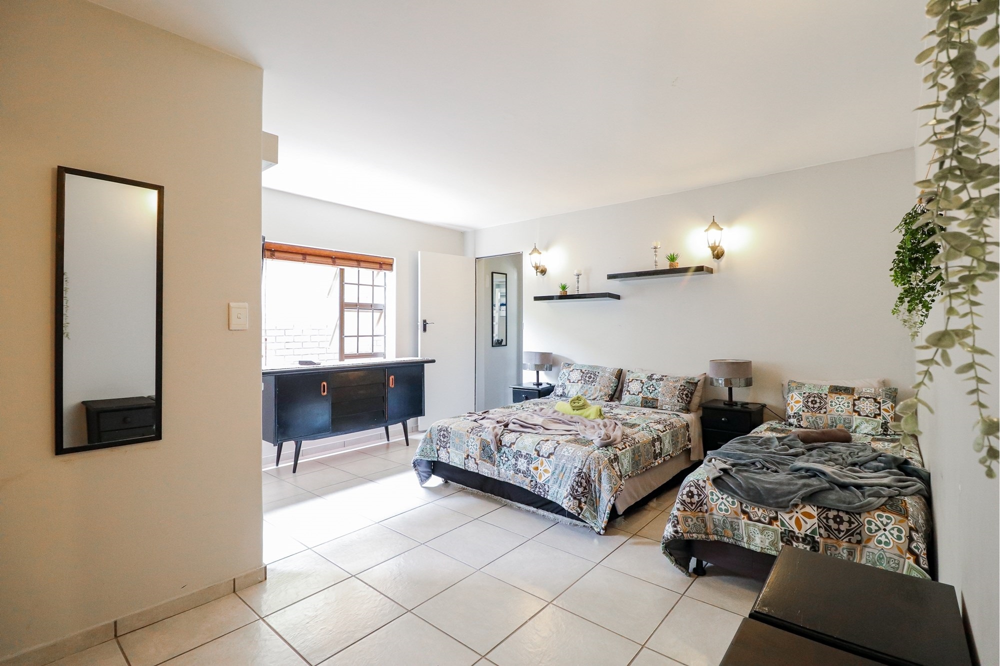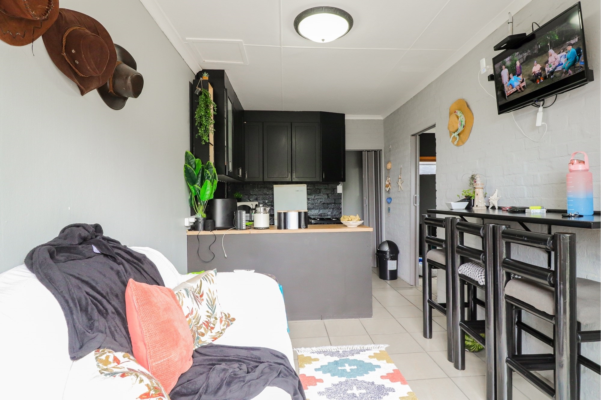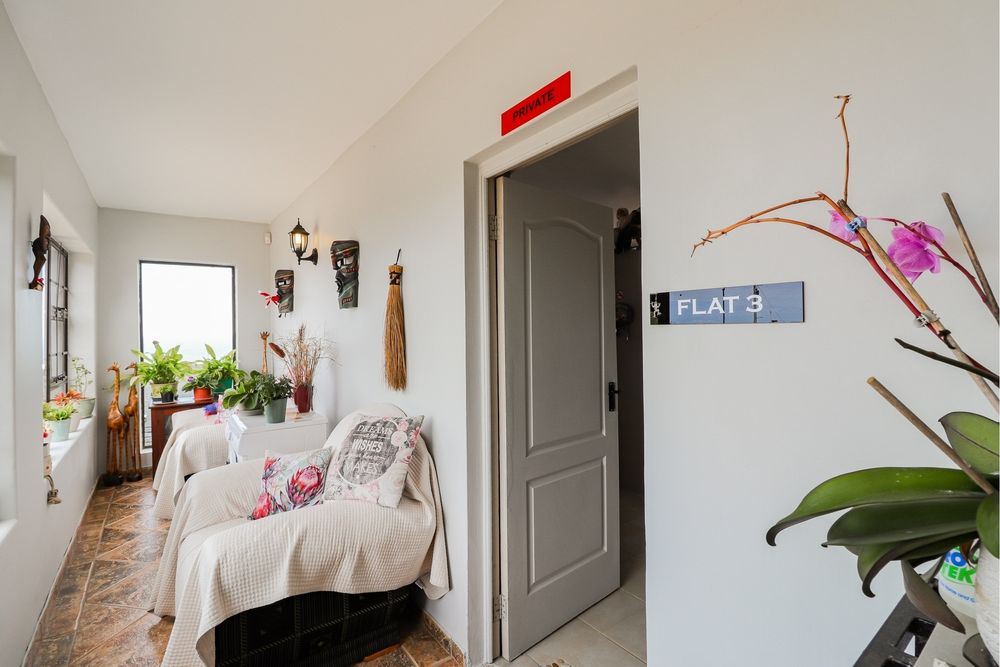 The additional flats provide perfect accommodation for friends, family, or even potential rental income. The ground floor welcomes you with a cozy entrance, a spacious kitchen, and a lovely living area, perfect for gatherings and relaxation. The upper level boasts a modern kitchen and dining area that opens to a balcony with a built-in braai, ideal for enjoying meals with a view.