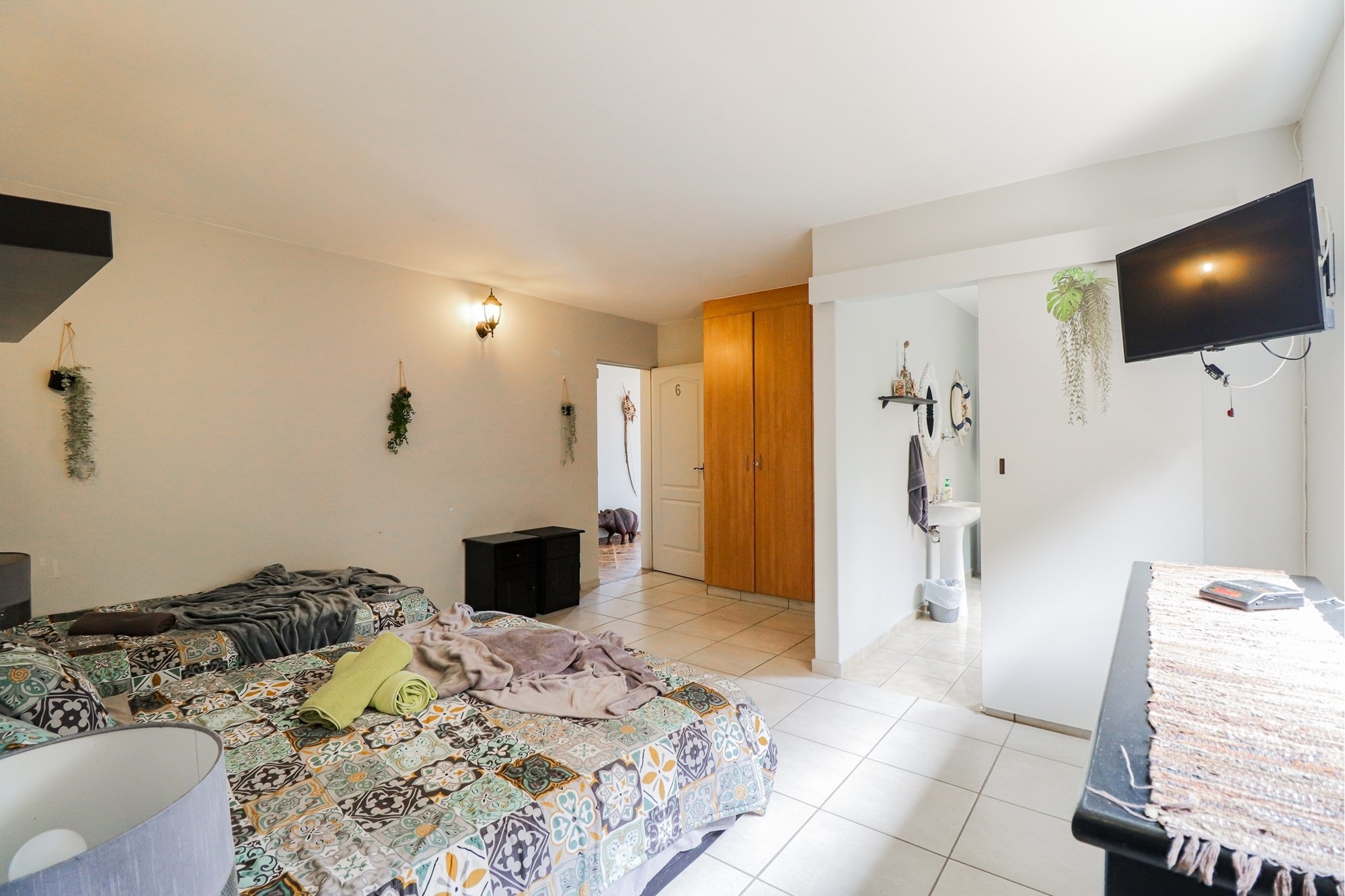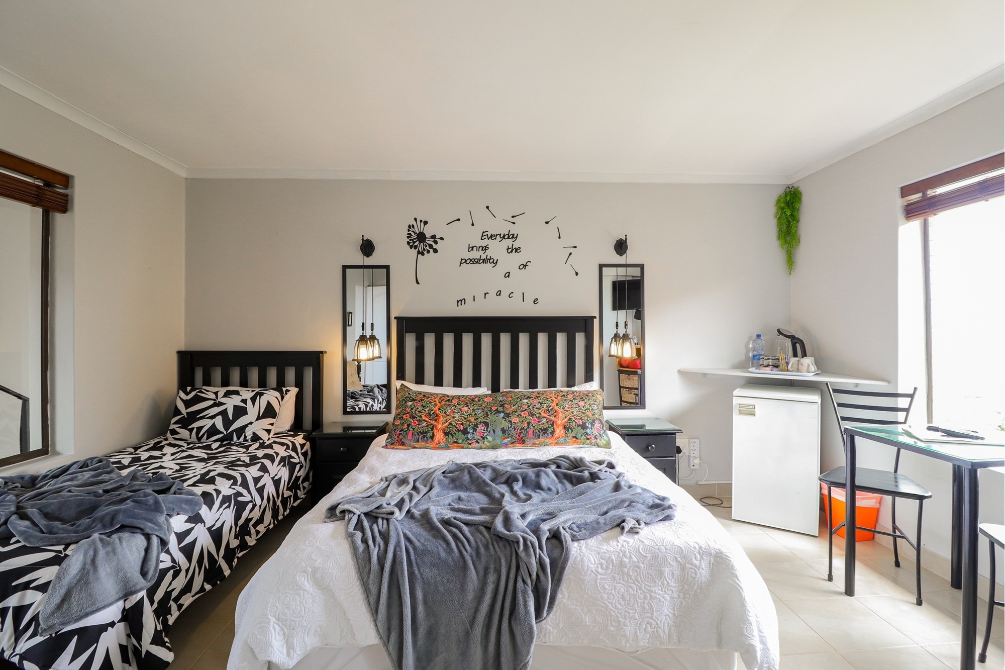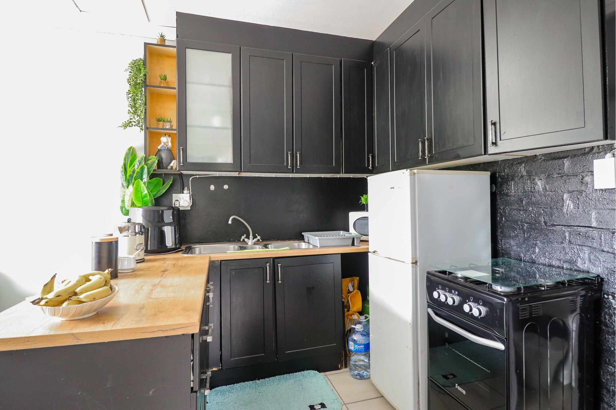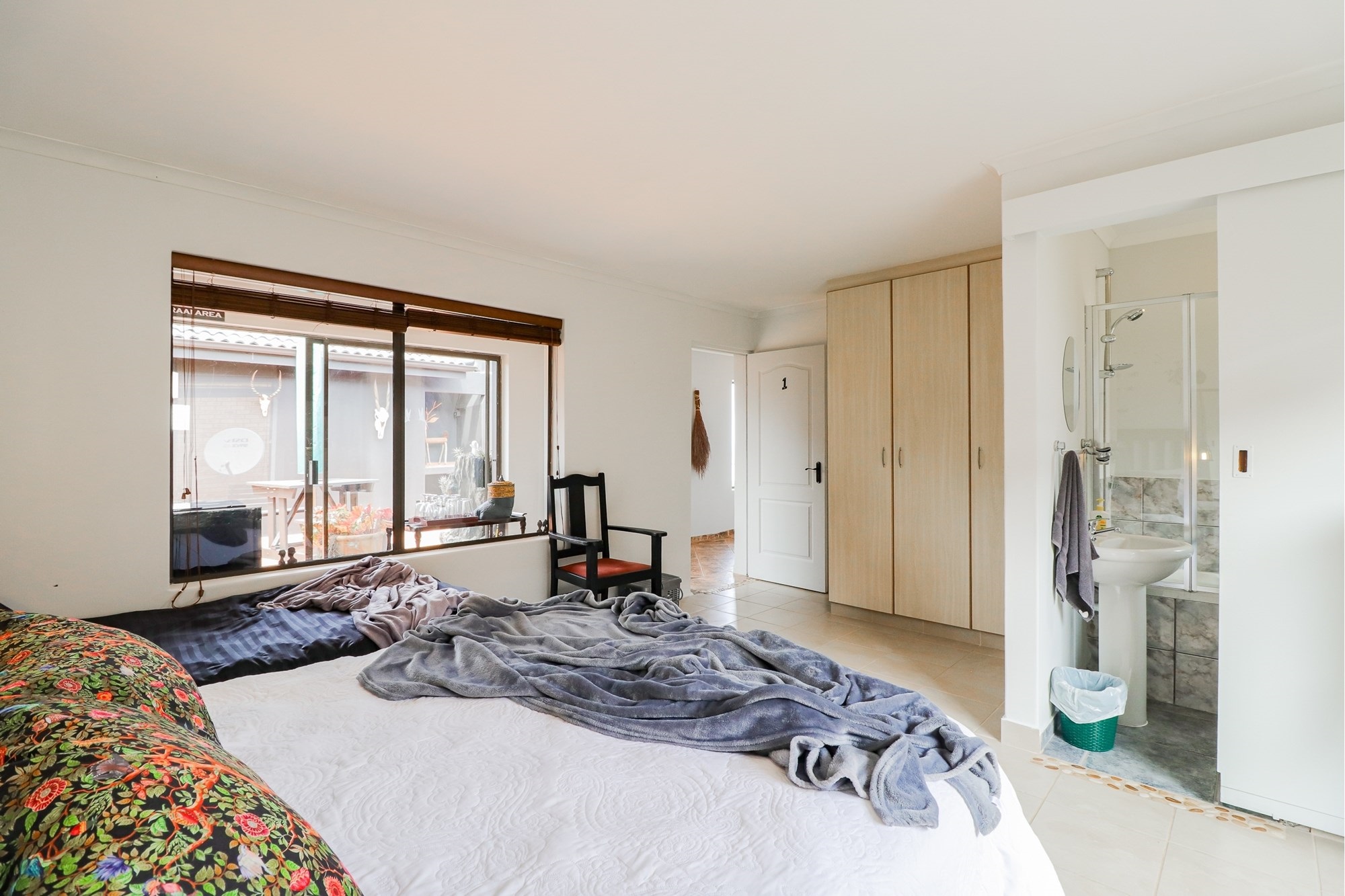 The additional flats provide perfect accommodation for friends, family, or even potential rental income. The ground floor welcomes you with a cozy entrance, a spacious kitchen, and a lovely living area, perfect for gatherings and relaxation. The upper level boasts a modern kitchen and dining area that opens to a balcony with a built-in braai, ideal for enjoying meals with a view.