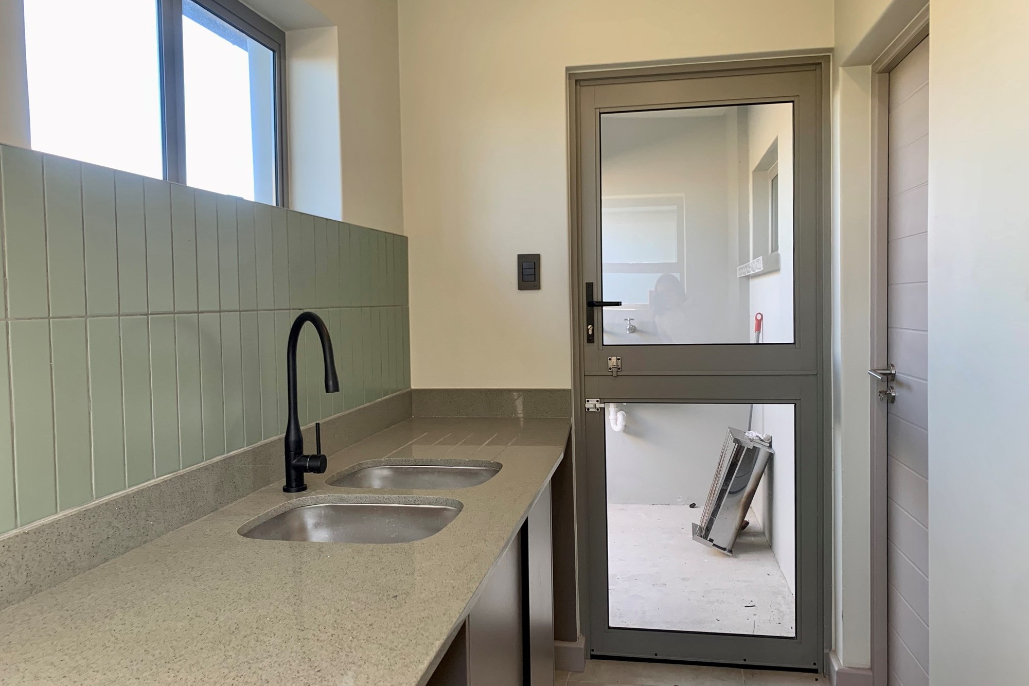 The modern kitchen, designed for culinary enthusiasts, is complemented by a sleek scullery and a private laundry courtyard, combining functionality and style. The direct access from the double garage further enhances both security and daily convenience.