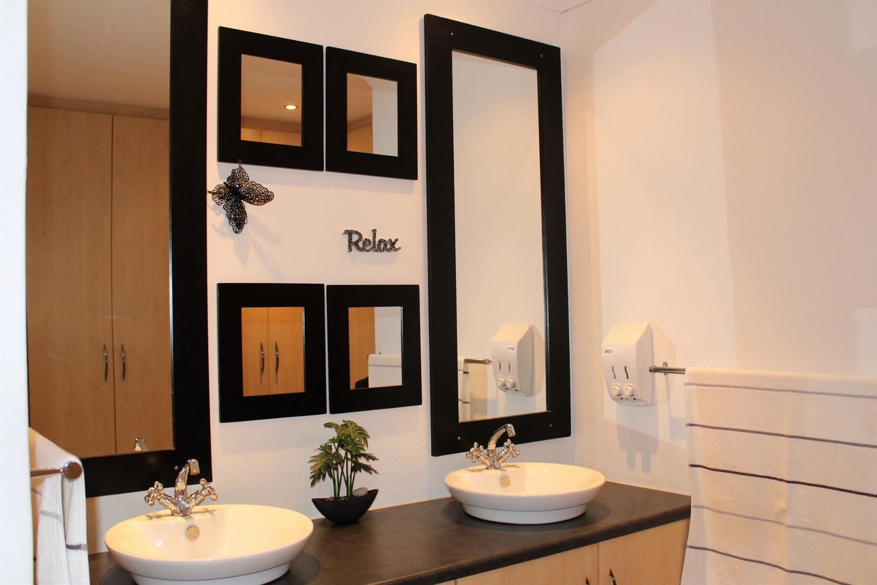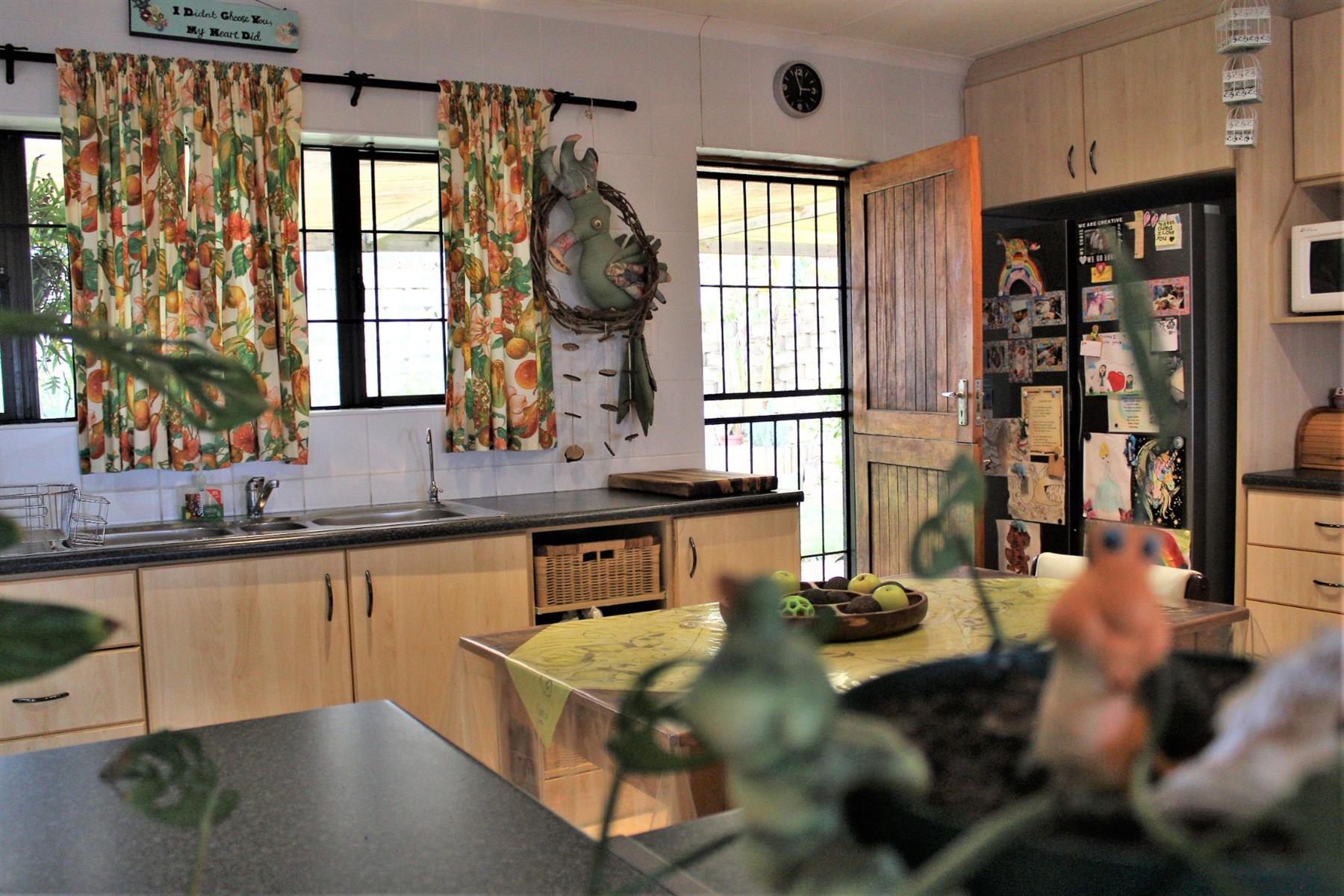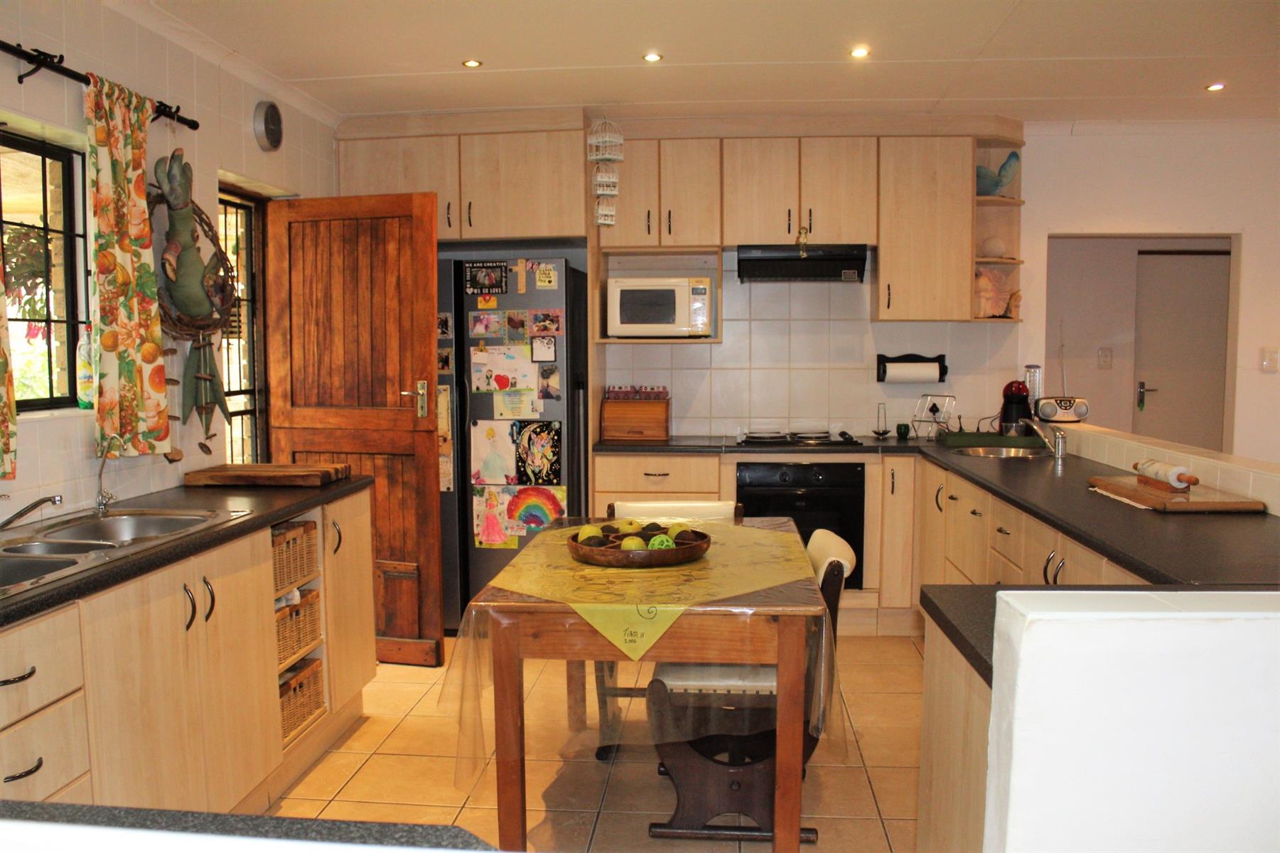 The spacious kitchen is equipped with a basin, breakfast nook, and a modern oven and hob, making it a dream for any home cook. The brick wall adds a touch of character to the kitchen, while the built-in braai is perfect for hosting family and friends for a summer BBQ.