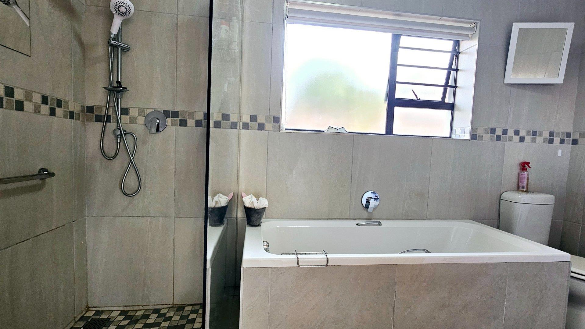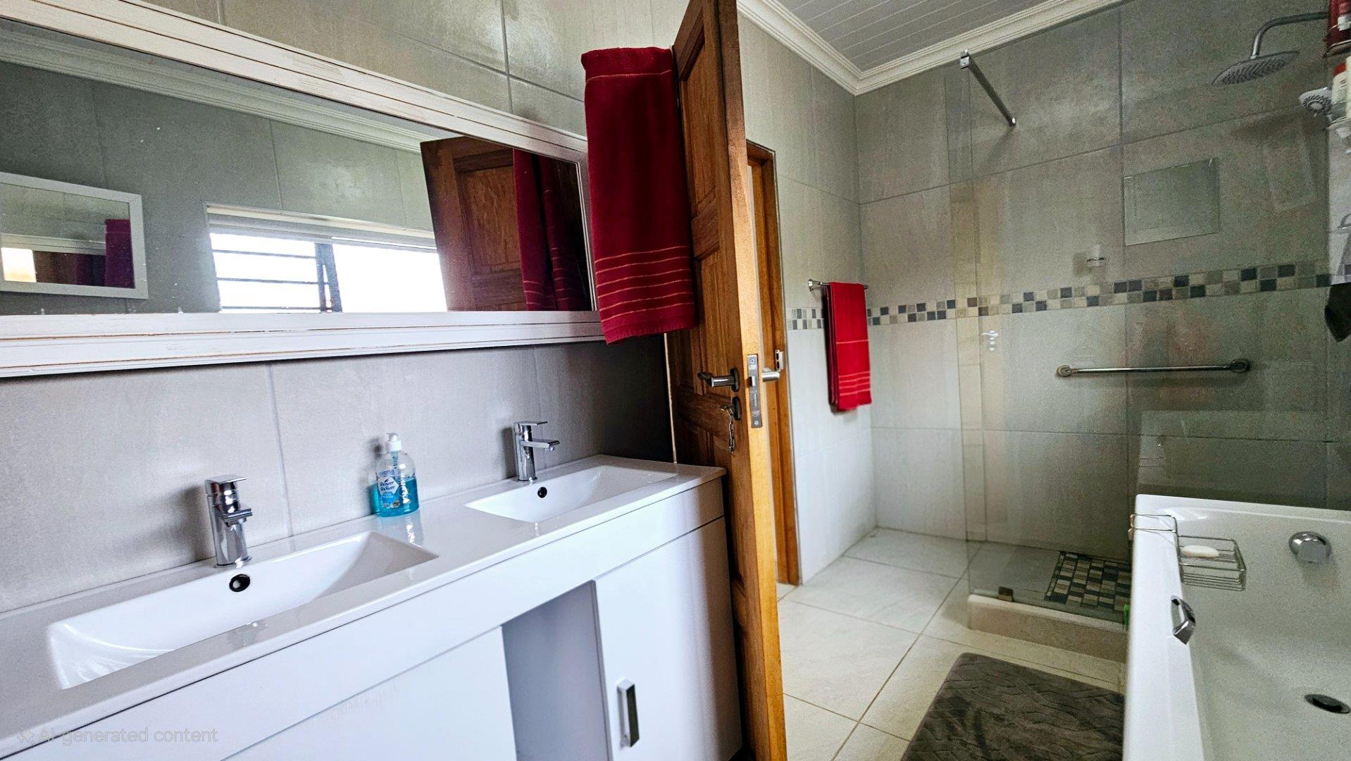Two bathrooms, including a main en-suite with twin basins and a walk-in shower