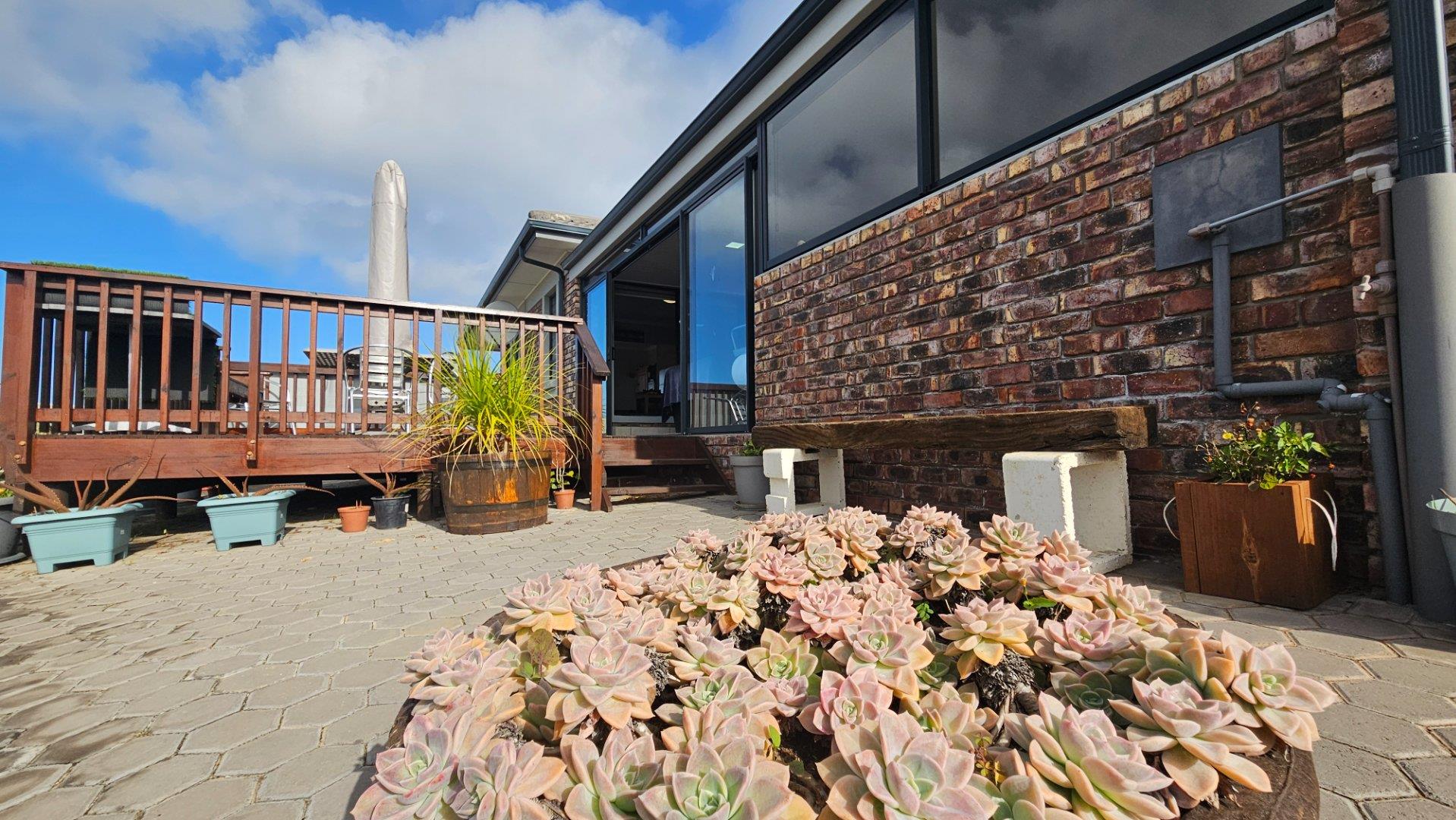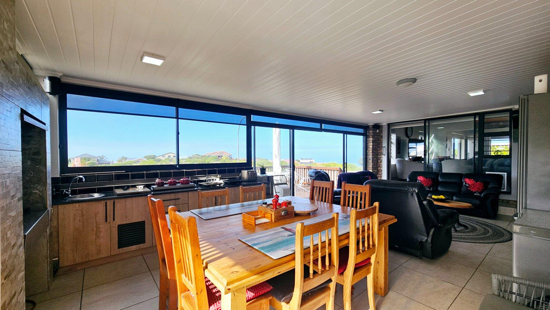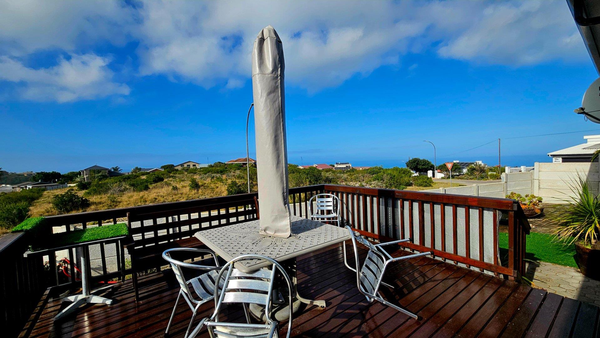 Private wooden deck leading out from the entertainment room (braai room) offering partial sea views