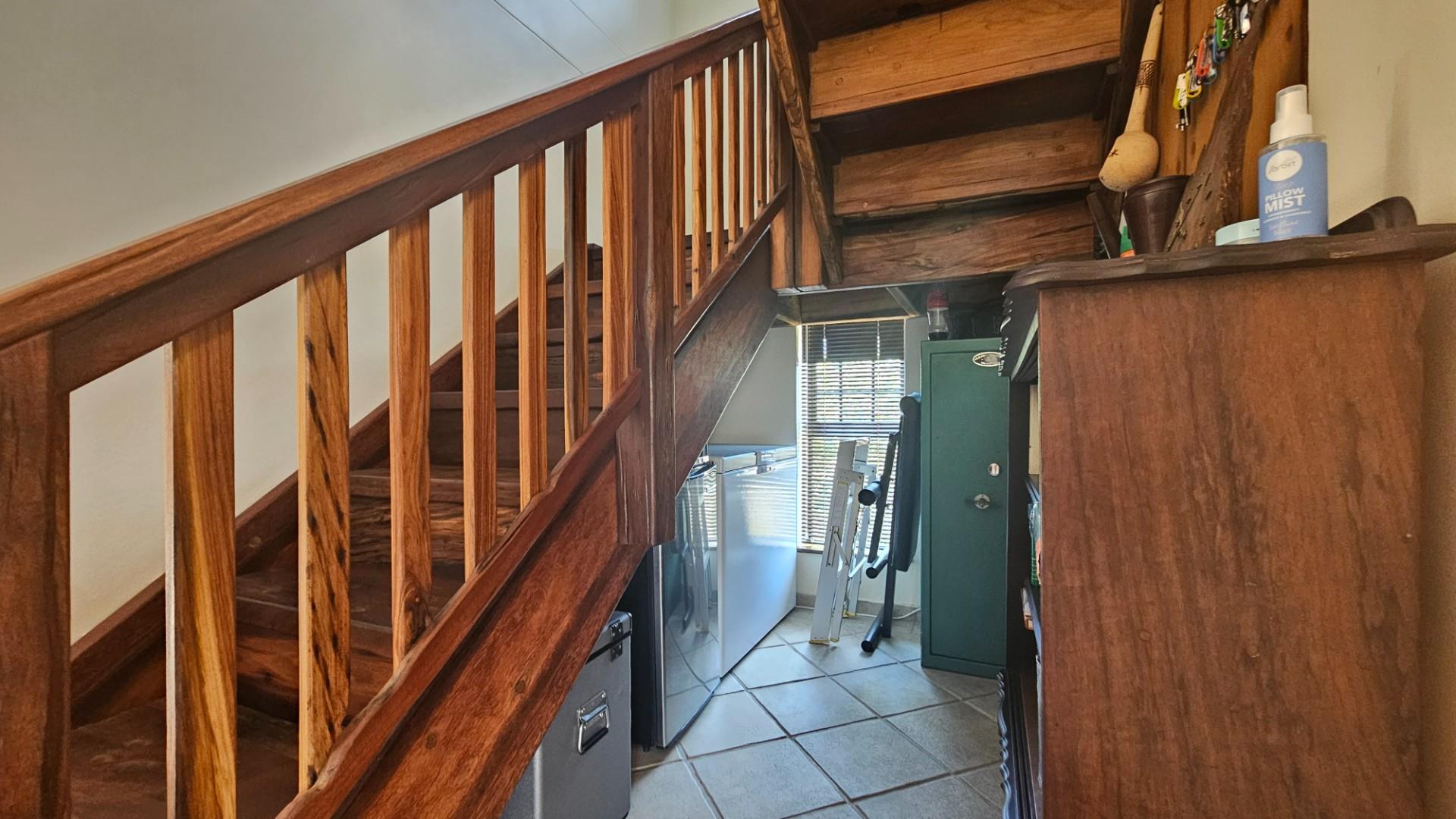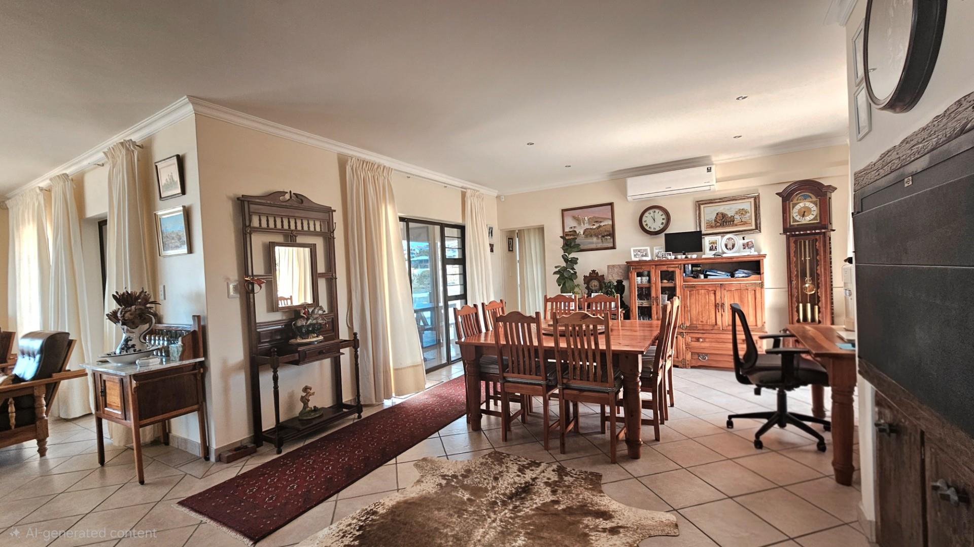 The main entrance to the home is located on this level, welcoming you through an impressive large sleeper wooden front door into a tiled, air-conditioned lounge/dining area.