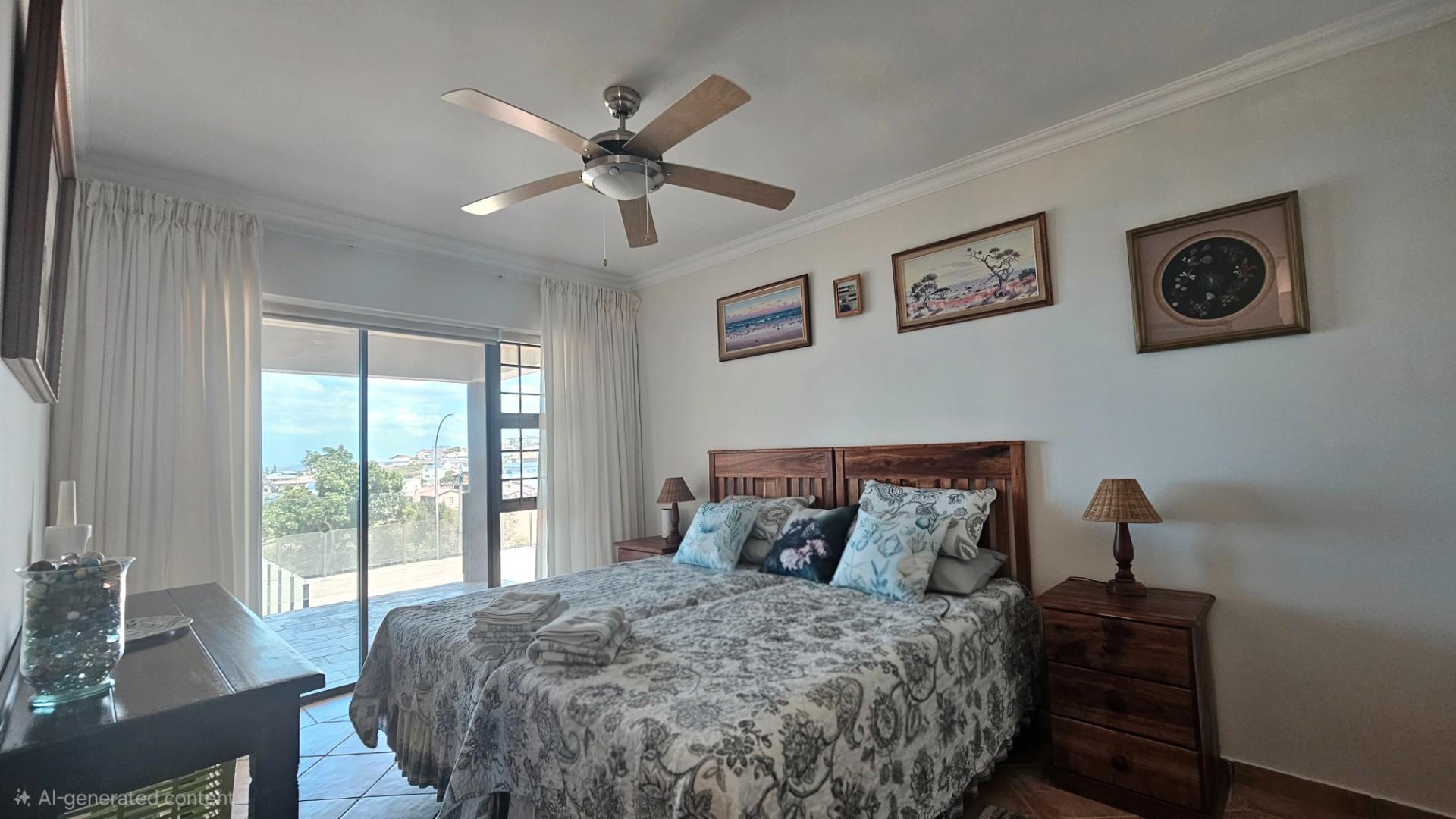 The main bedroom is a private sanctuary: large, tiled, air-conditioned, and offering spectacular sea and breaker views directly from your bed. Full wall-length built-in cupboards and a stunning full en-suite bathroom complete the space. Private balcony access adds an extra layer of indulgence.