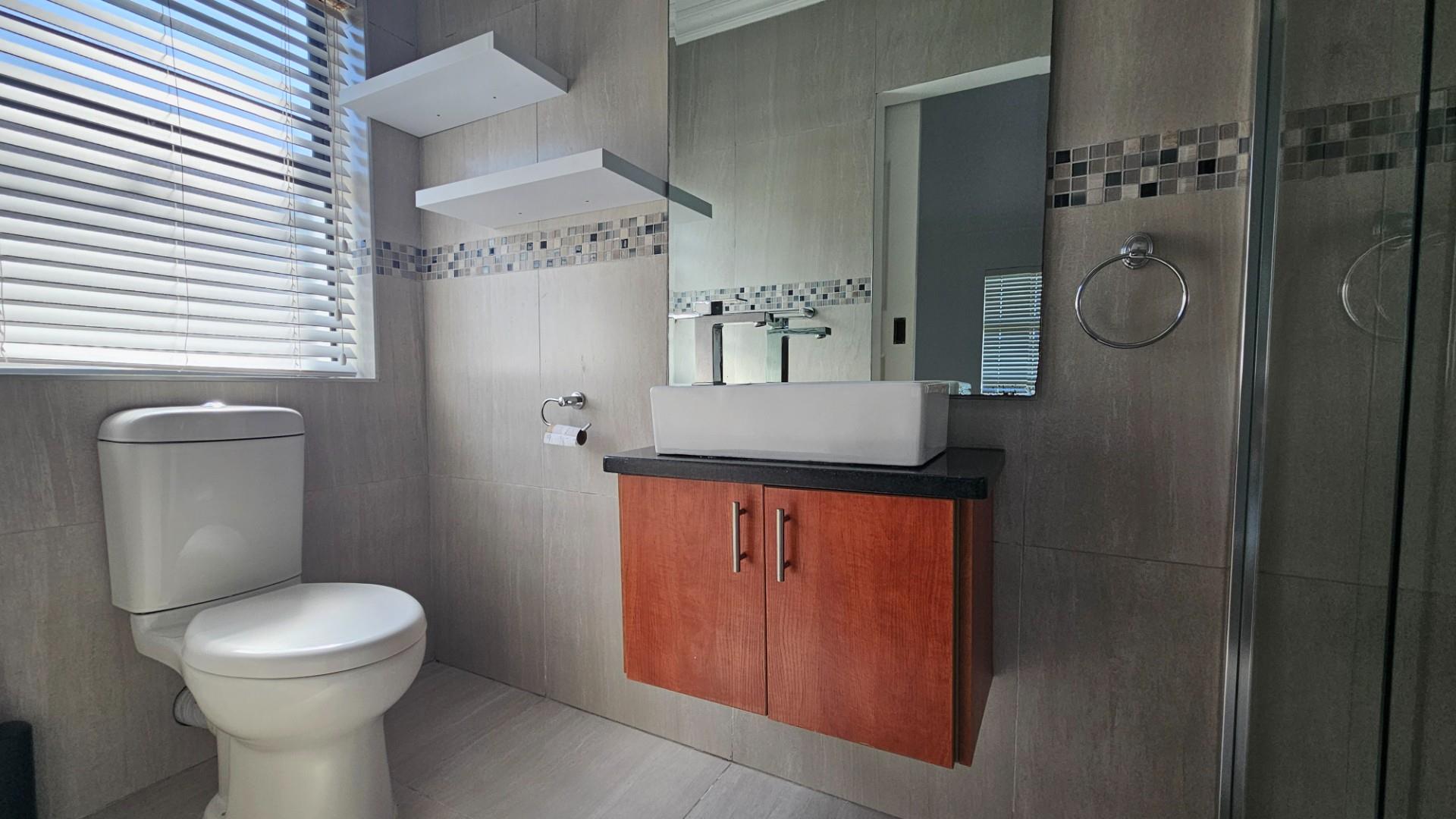 The main bedroom is ideally situated on the upper level, providing both privacy and easy access to the main living areas. This spacious retreat includes a full en-suite bathroom, generous built-in cupboards, and direct access to a private balcony with stunning views of the valley and ocean. A guest bathroom is also located on this level, catering comfortably to visitors.