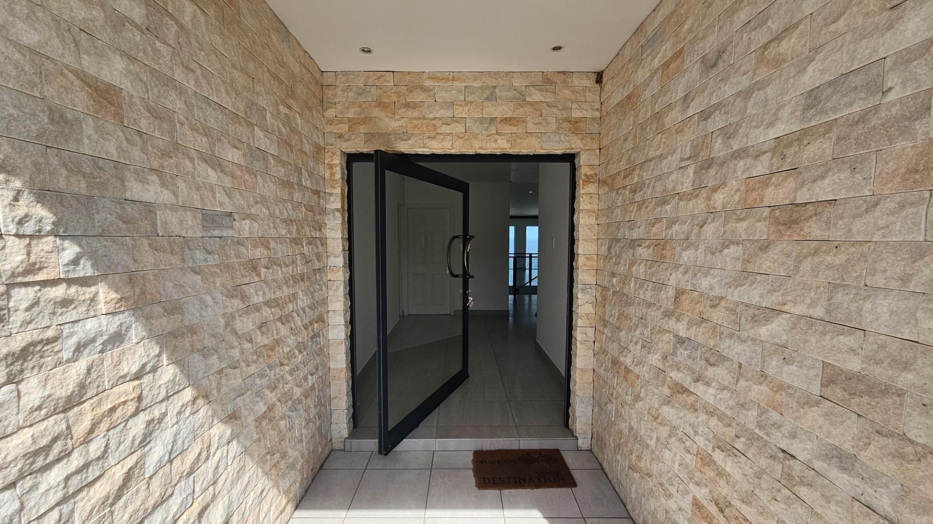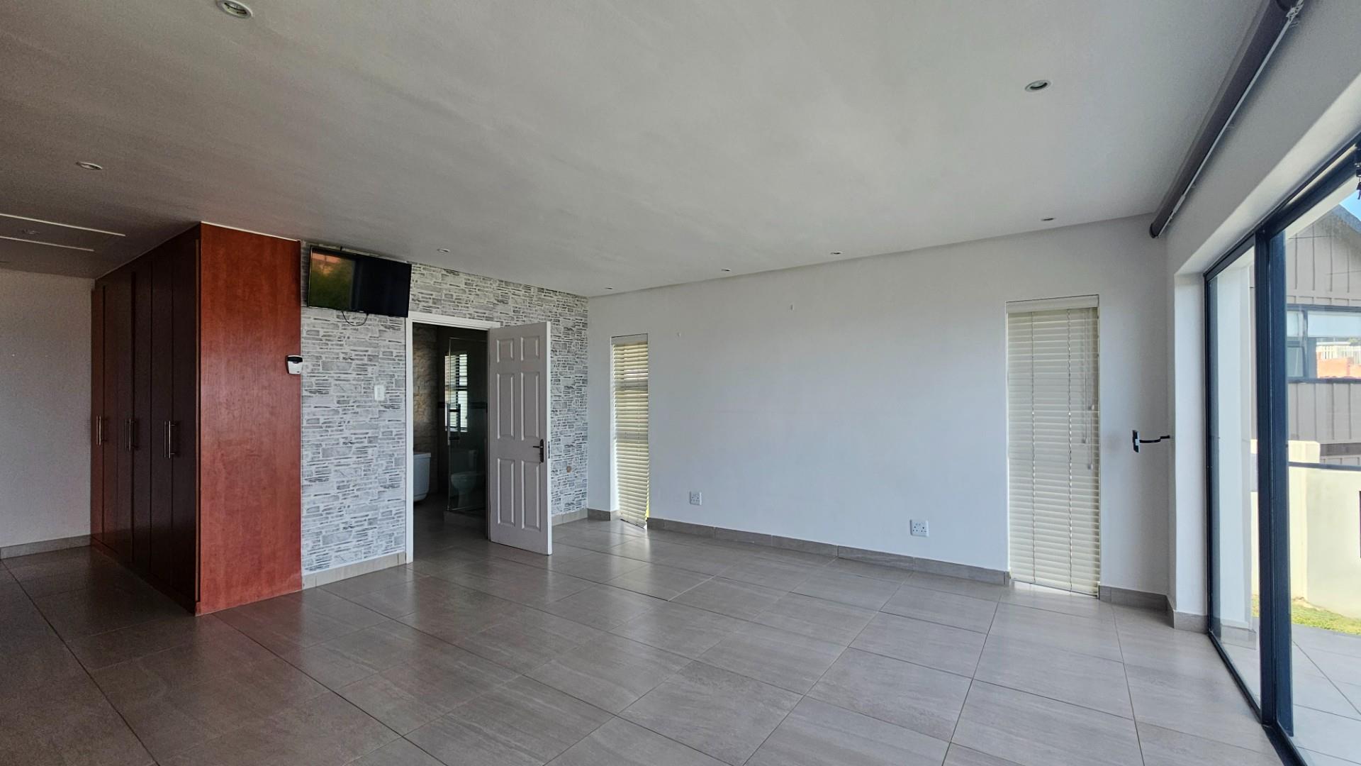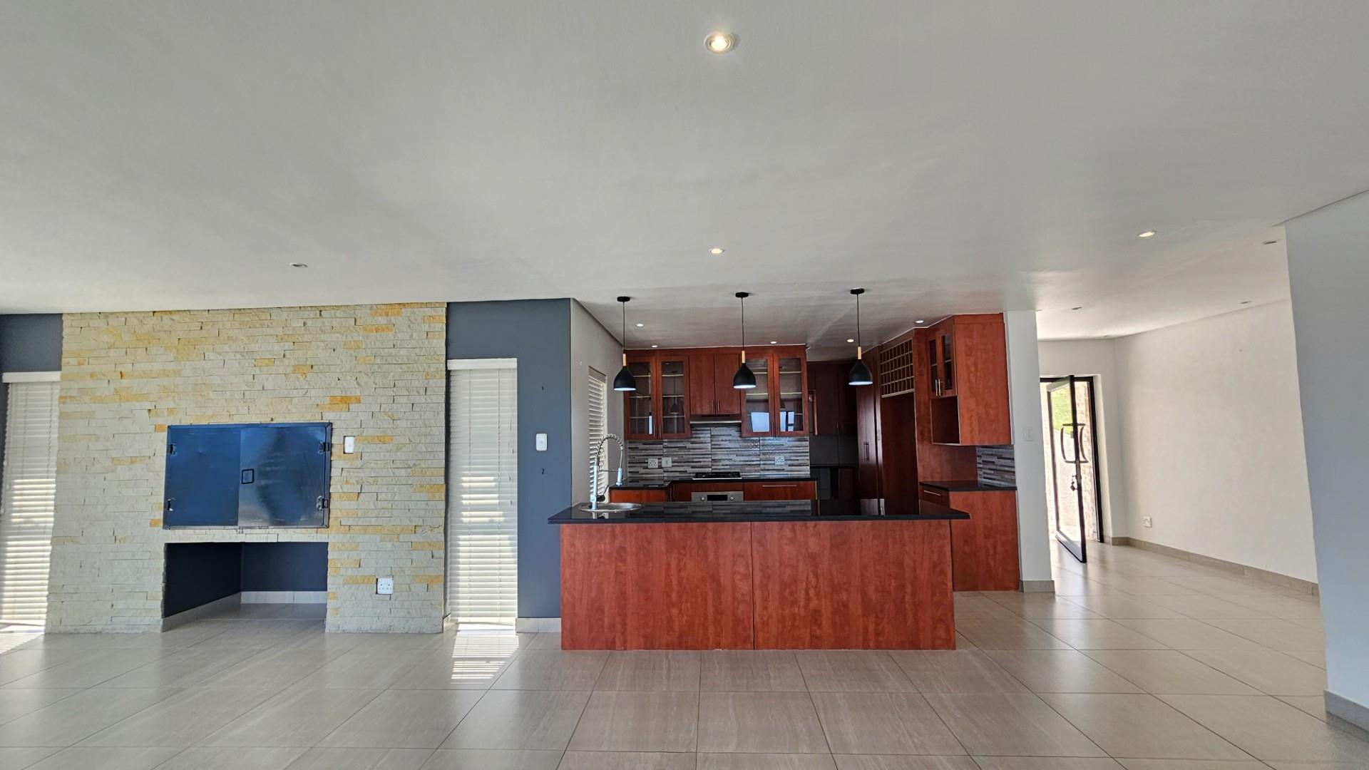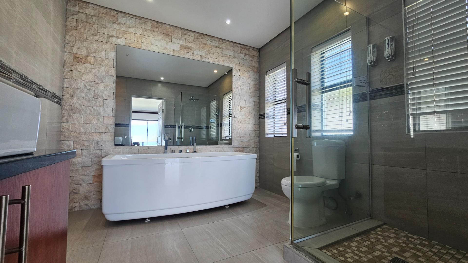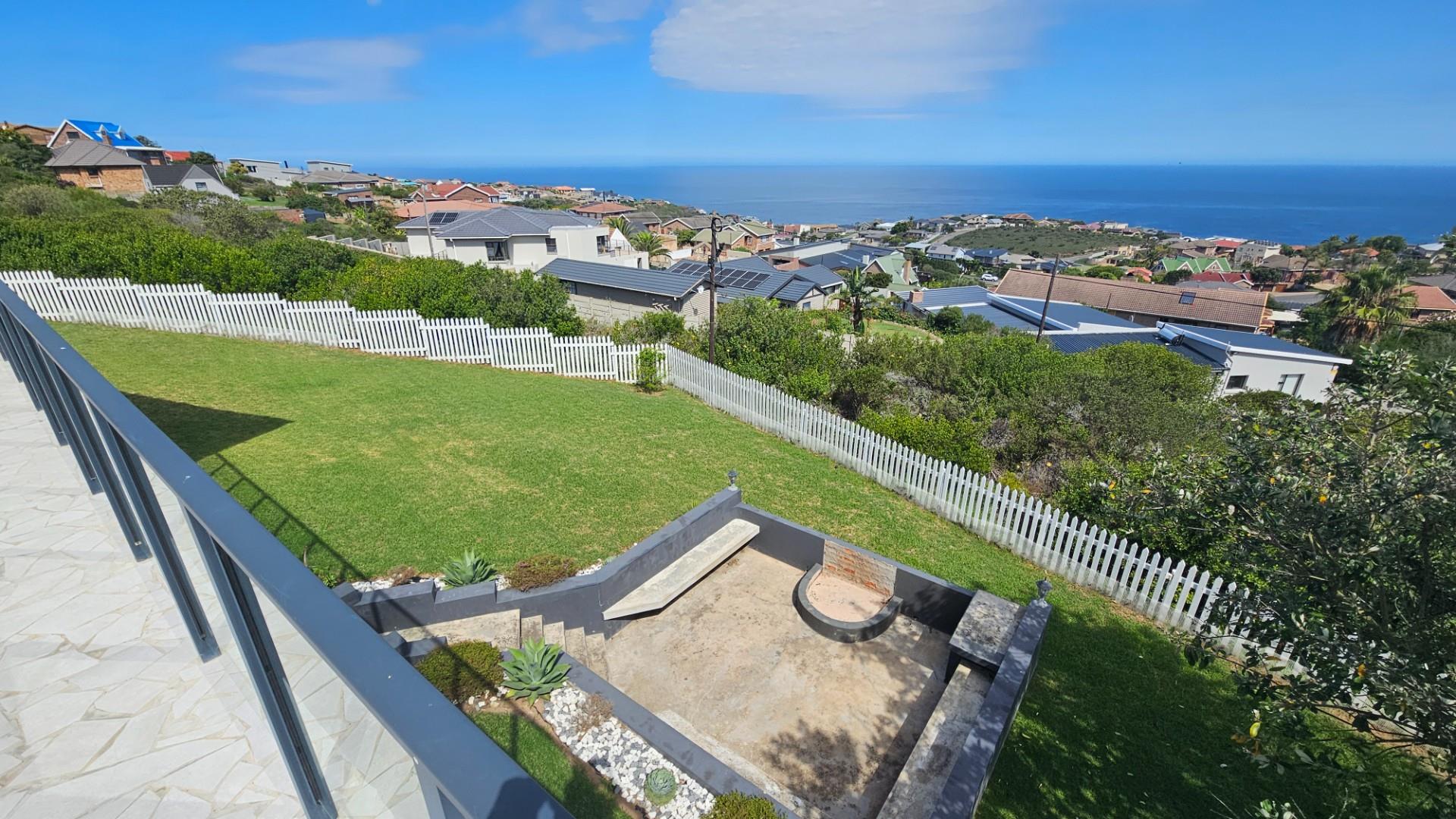 Upon entering the home through an elegant swivel glass door, you are welcomed into a light-filled open-plan living and dining area. This inviting space features a built-in braai and seamlessly extends onto a balcony, where uninterrupted 180-degree ocean views create the perfect setting for both relaxation and entertaining. The modern kitchen forms the heart of the home, offering a functional and stylish layout, complemented by a separate scullery and laundry area to ensure convenience and practicality.