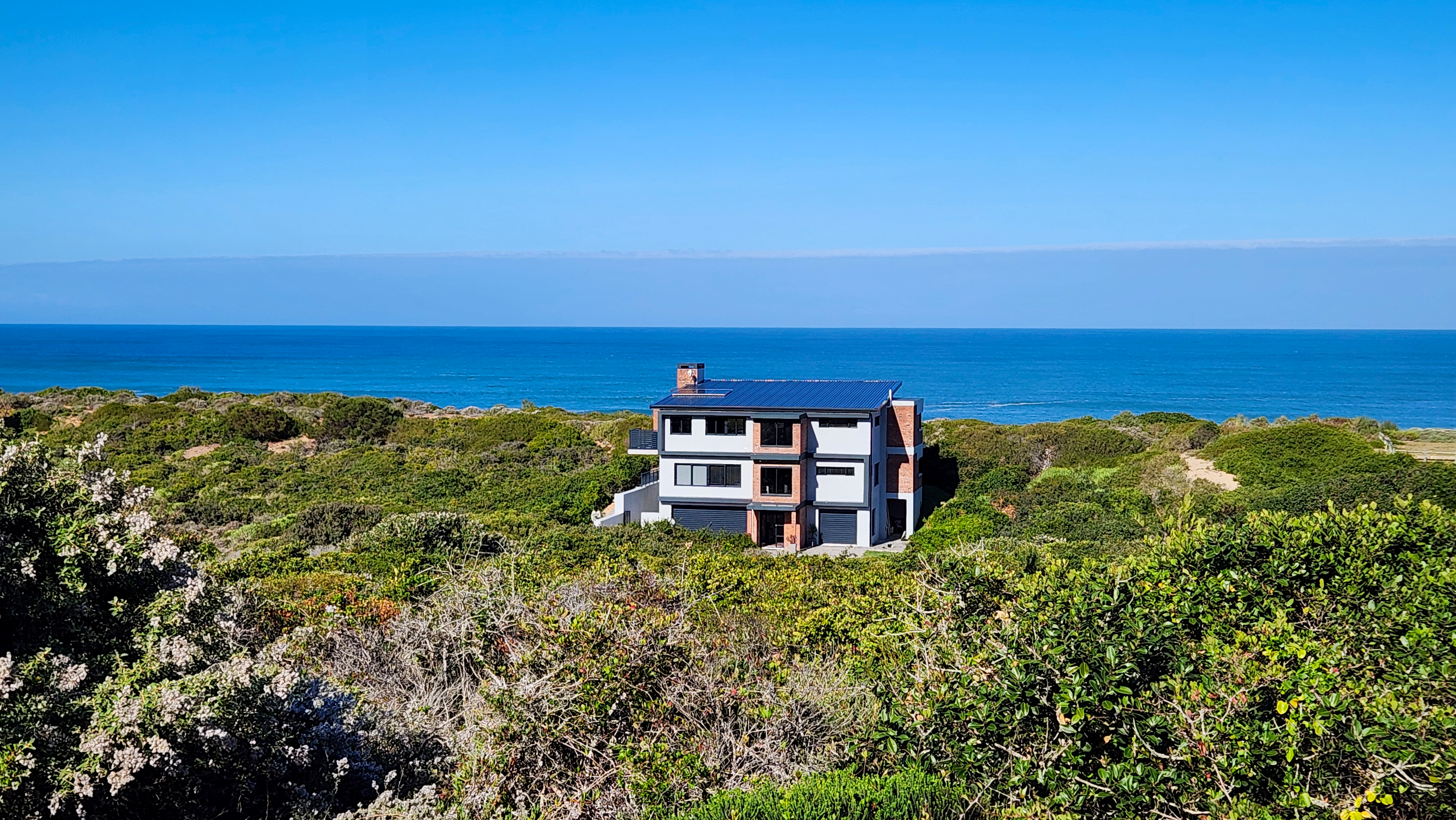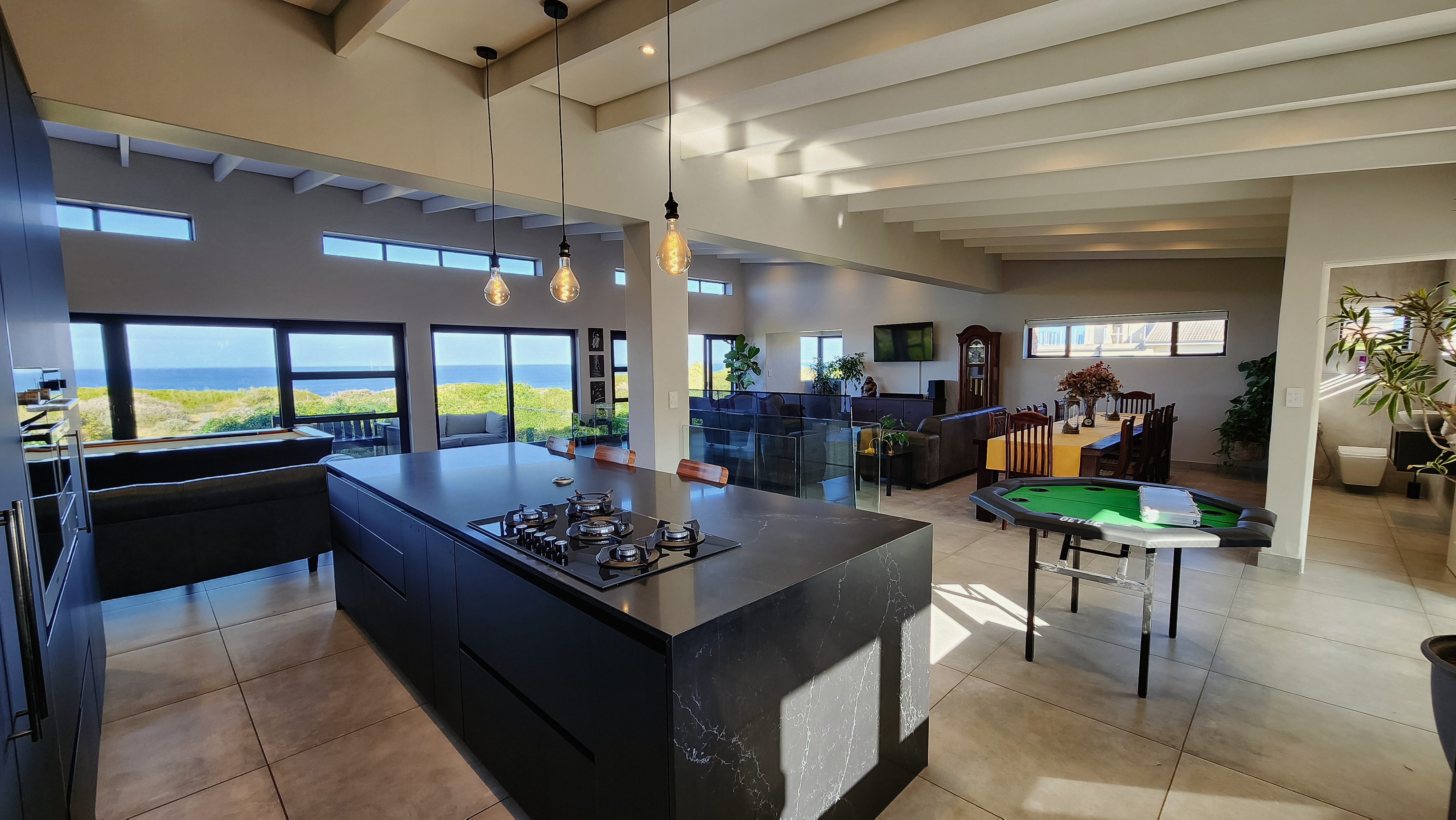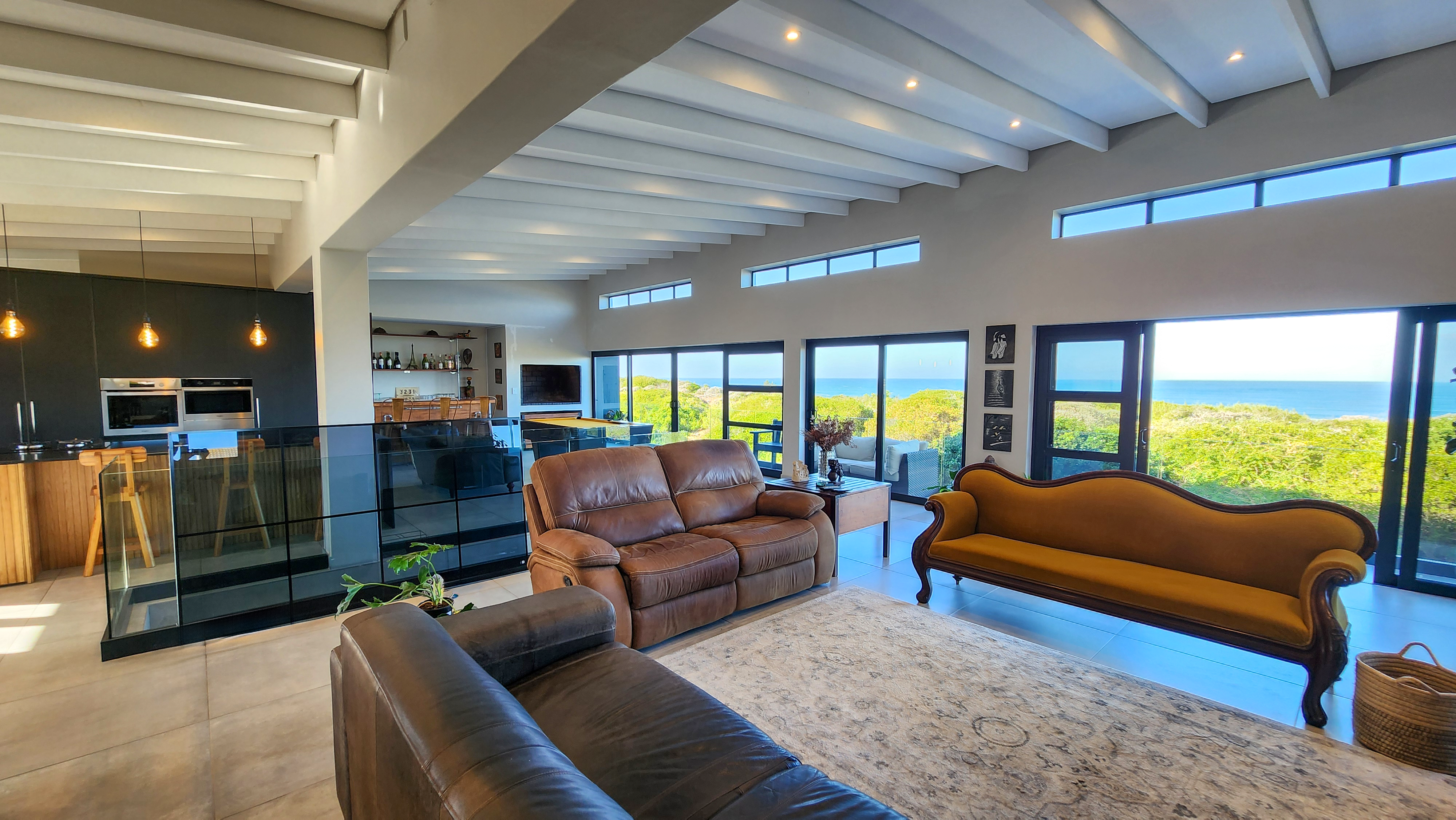 Designed for those who appreciate quality and tranquillity, the home features expansive glass doors and oversized windows that blur the line between indoors and out. The open-plan layout flows effortlessly from a beautifully appointed gourmet kitchen—complete with high-end appliances and sleek finishes—to the sunlit dining and lounge areas, all oriented toward panoramic ocean views.