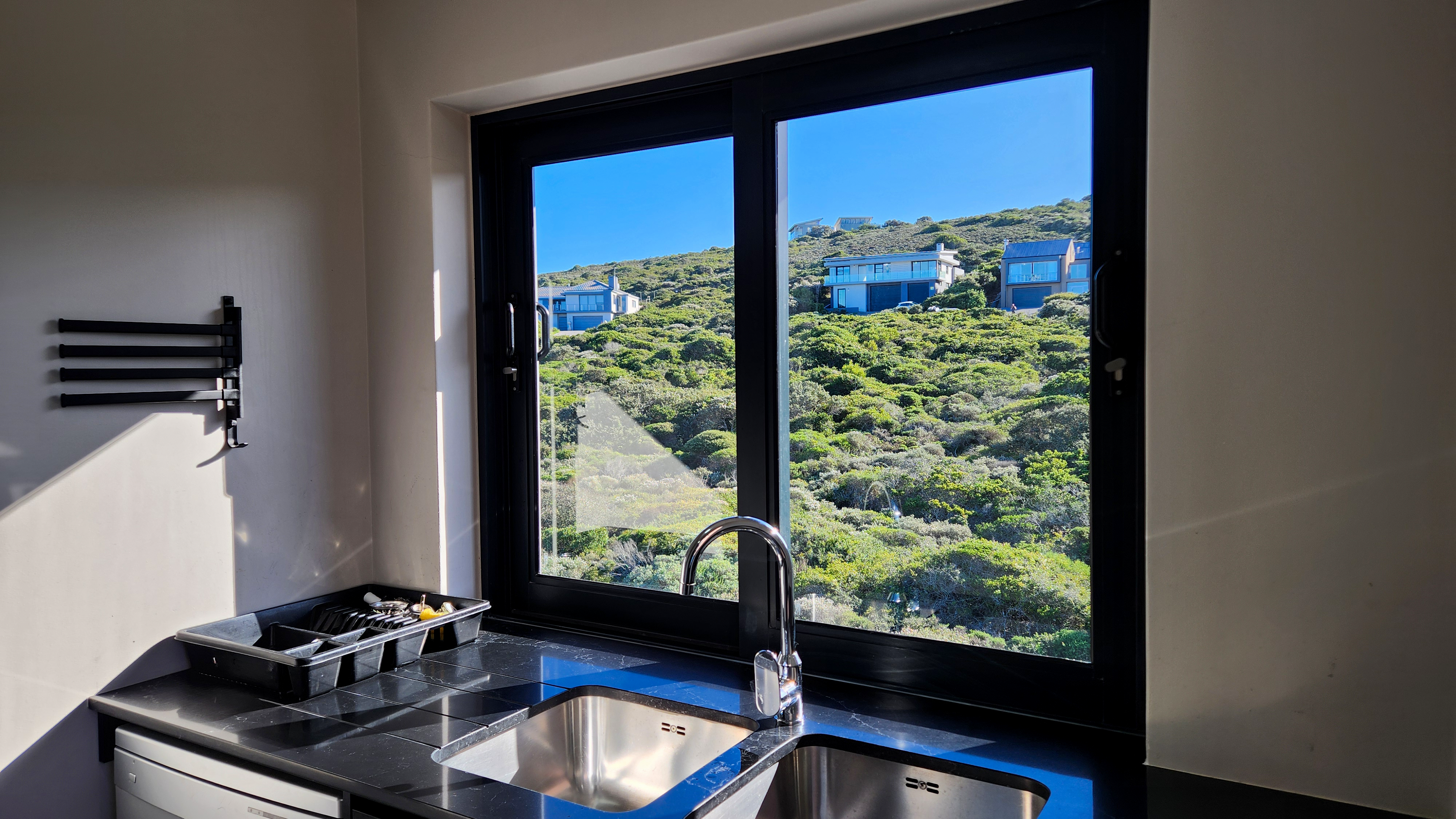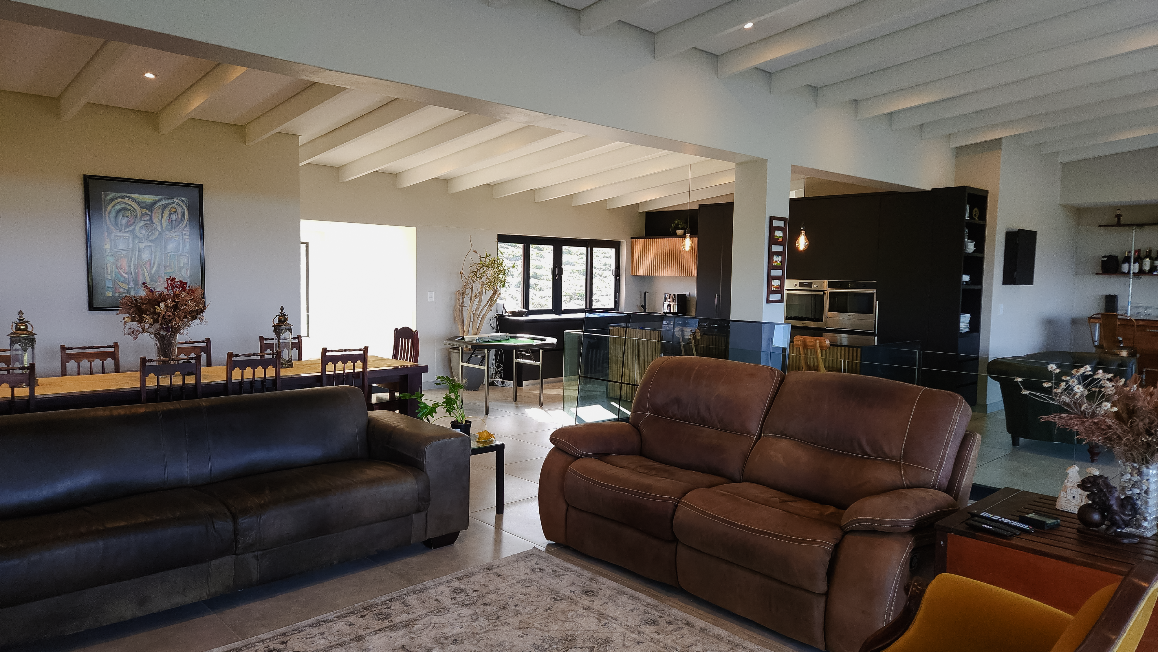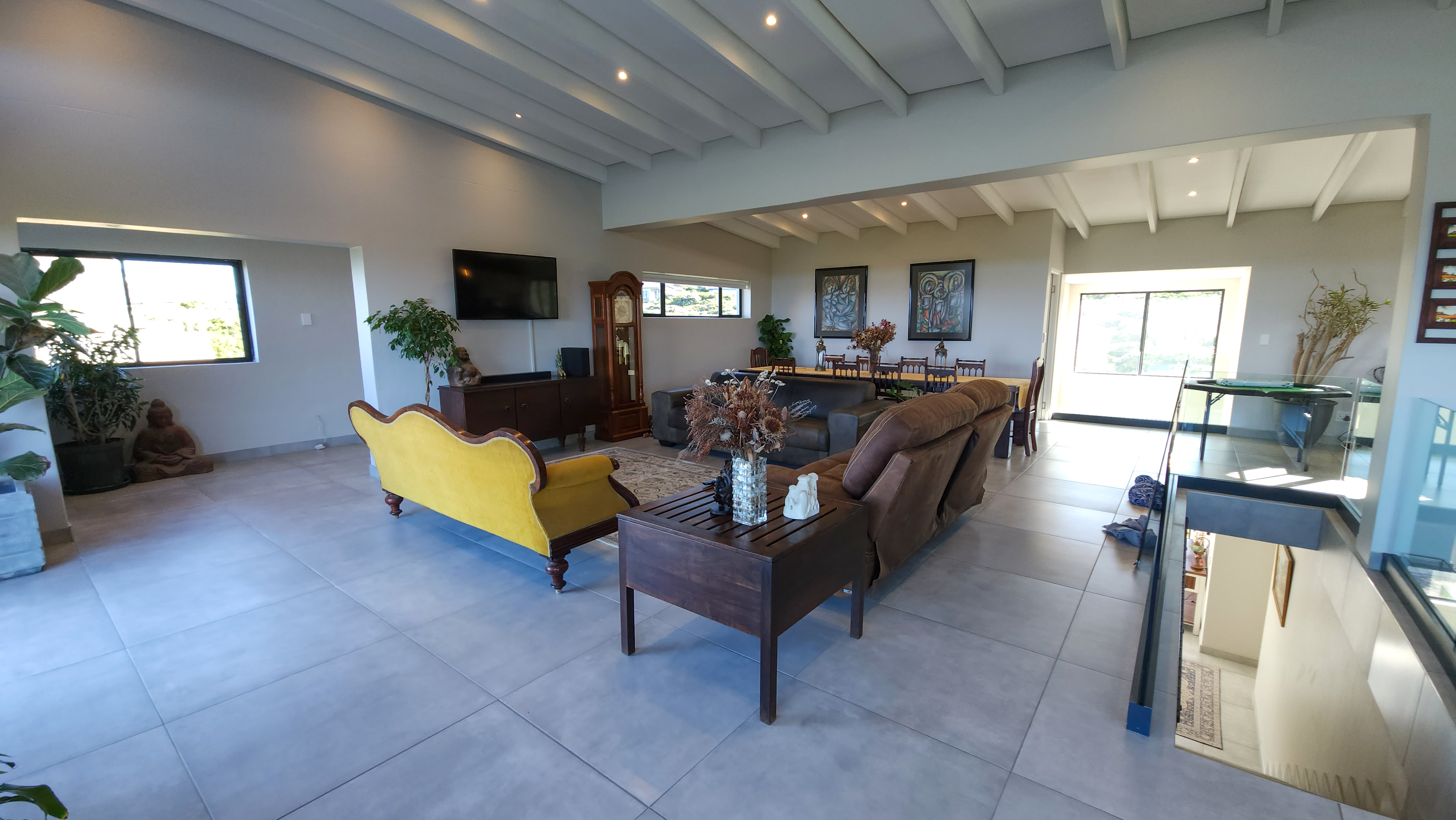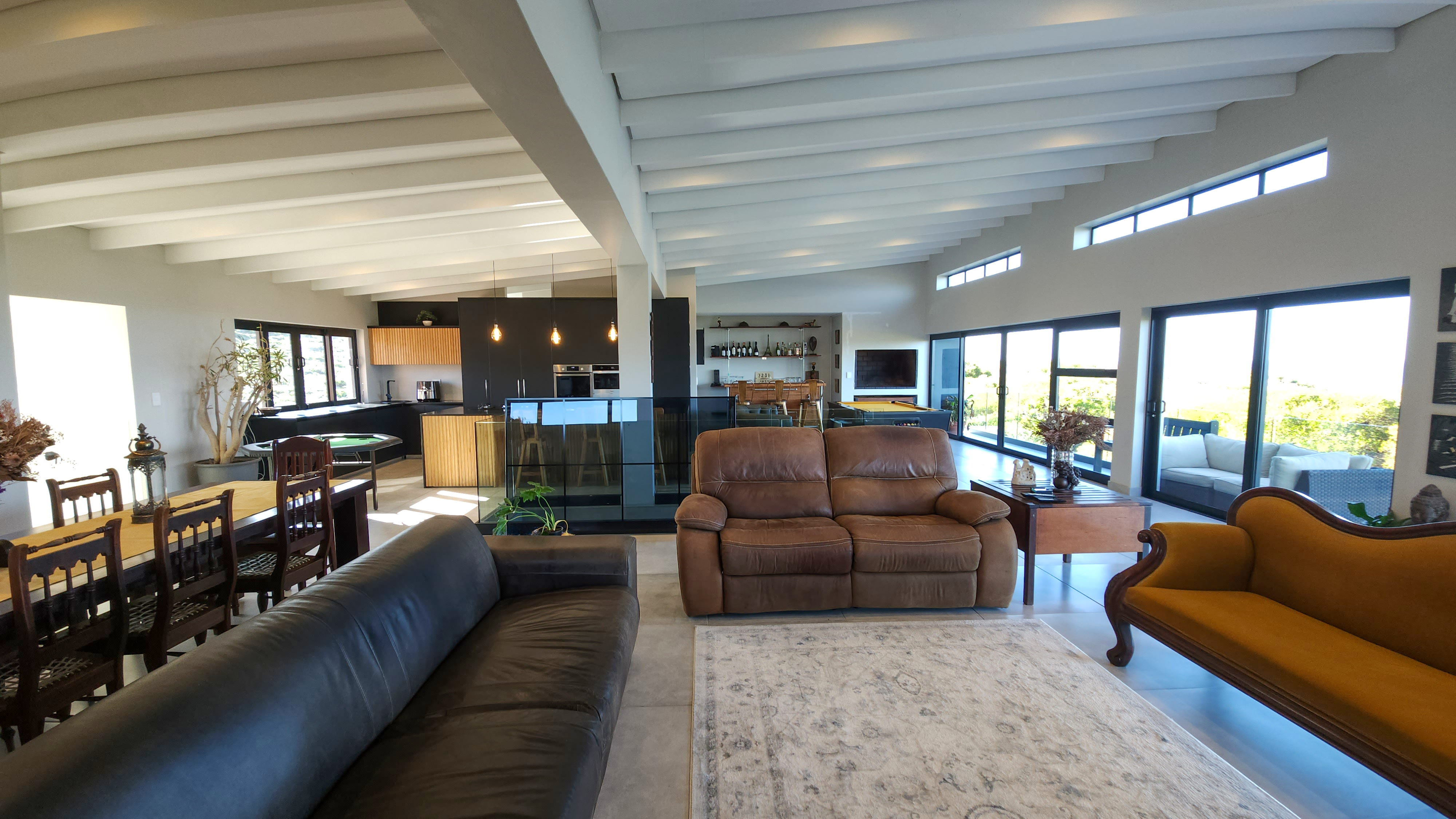 Designed for those who appreciate quality and tranquillity, the home features expansive glass doors and oversized windows that blur the line between indoors and out. The open-plan layout flows effortlessly from a beautifully appointed gourmet kitchen—complete with high-end appliances and sleek finishes—to the sunlit dining and lounge areas, all oriented toward panoramic ocean views.