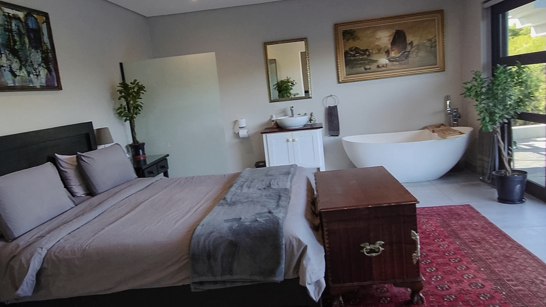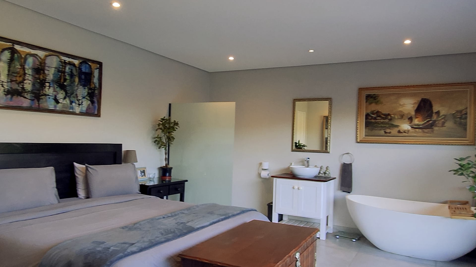 Each of the four en-suite bedrooms is a private haven, with the main suite opening to its own outdoor retreat. The bathrooms are bathed in natural light and echo the peacefulness of the surrounding landscape. Whether hosting guests or enjoying a quiet moment on the deck, you’ll be accompanied by the soothing rhythm of waves just meters from your doorstep.