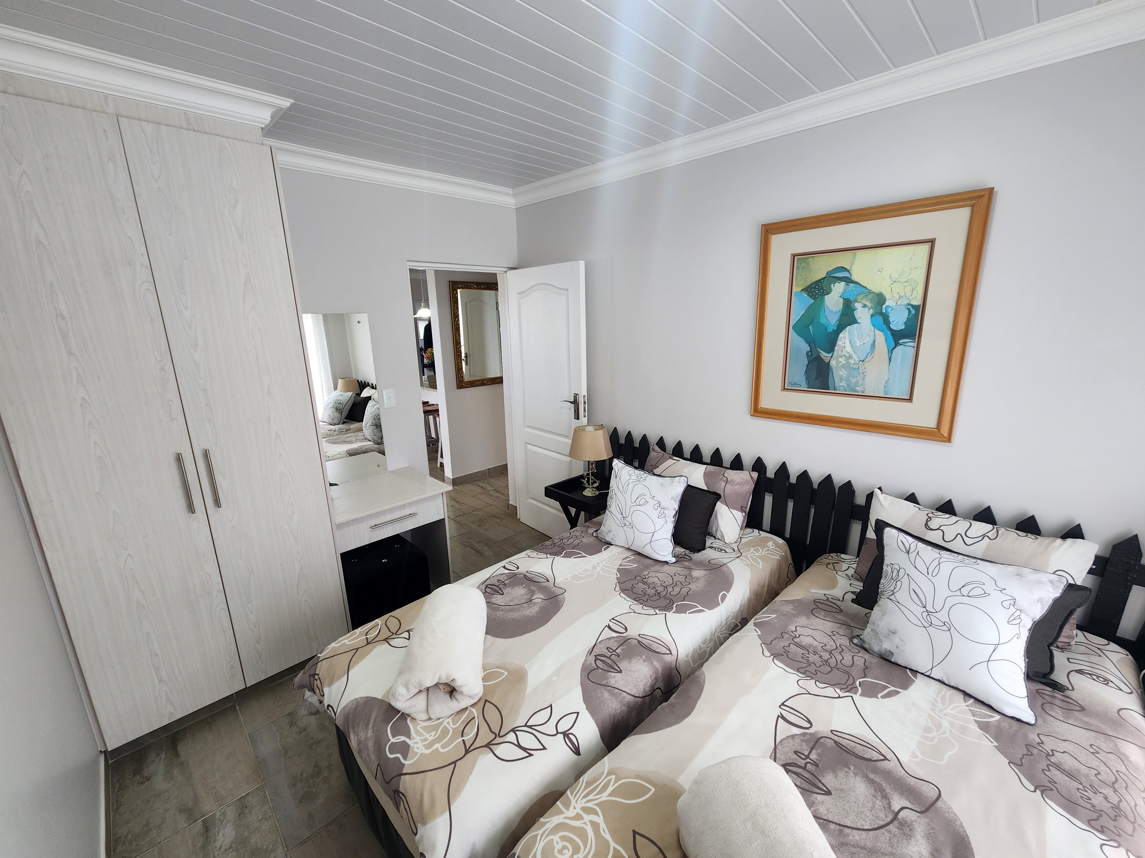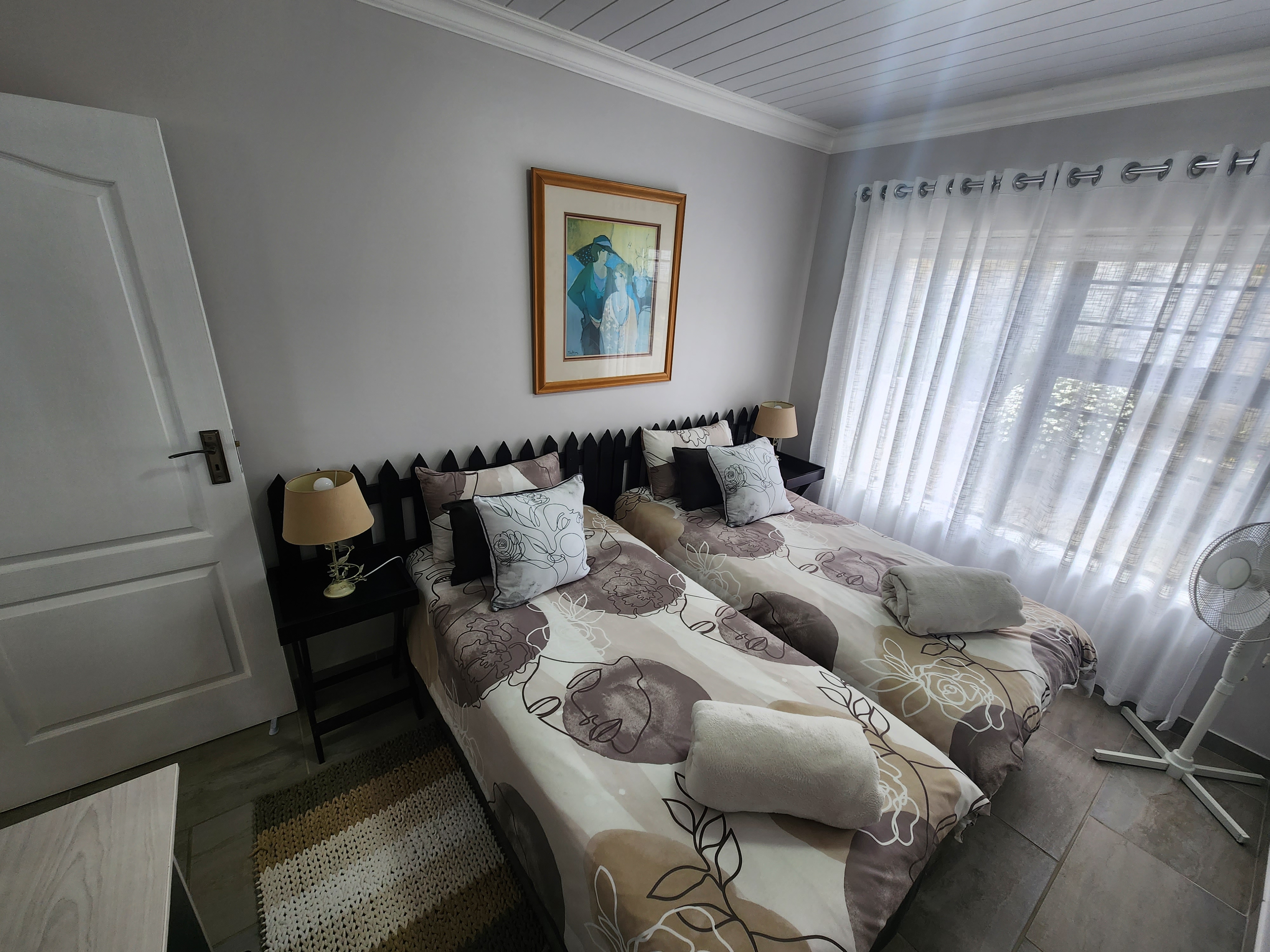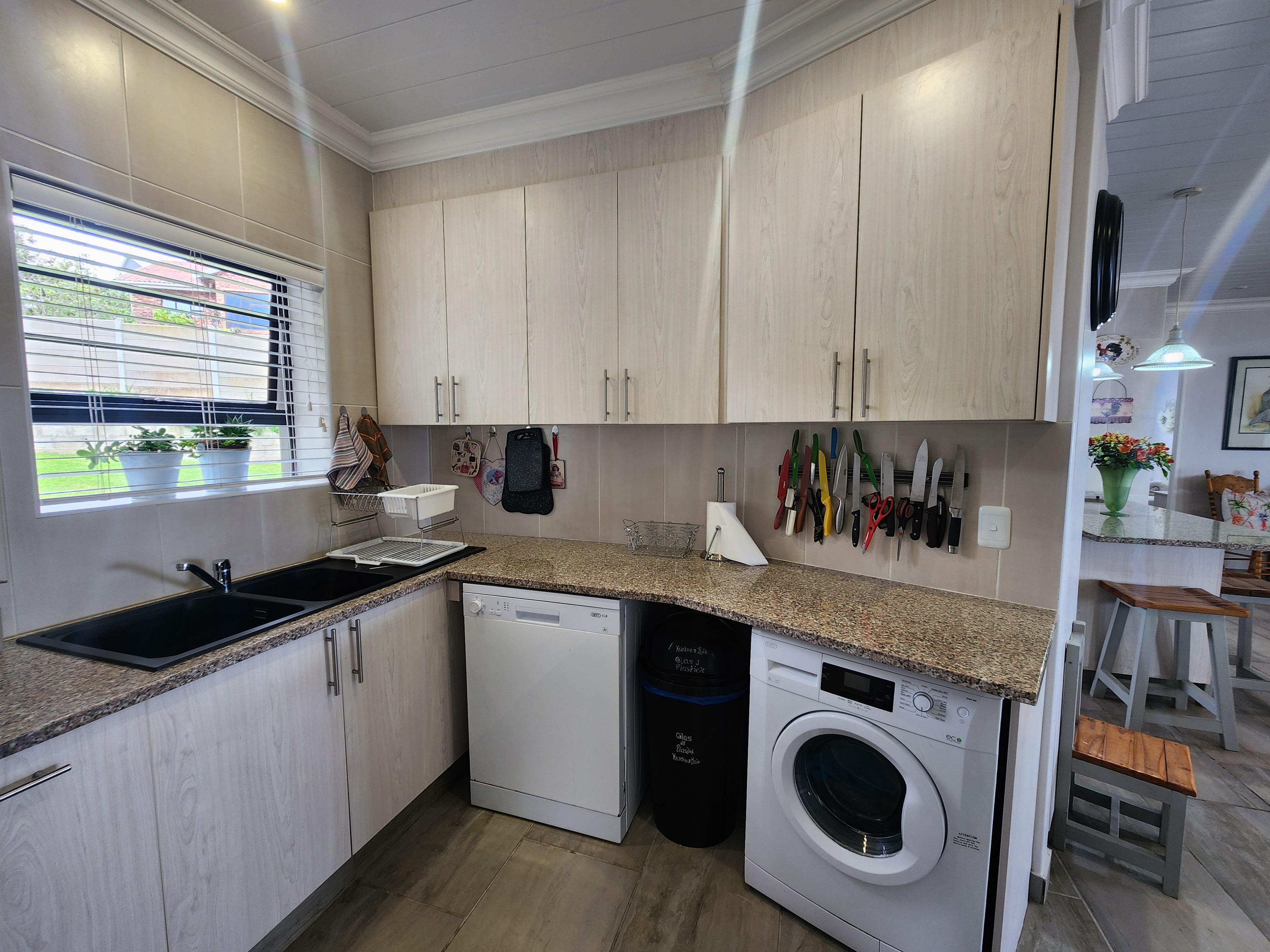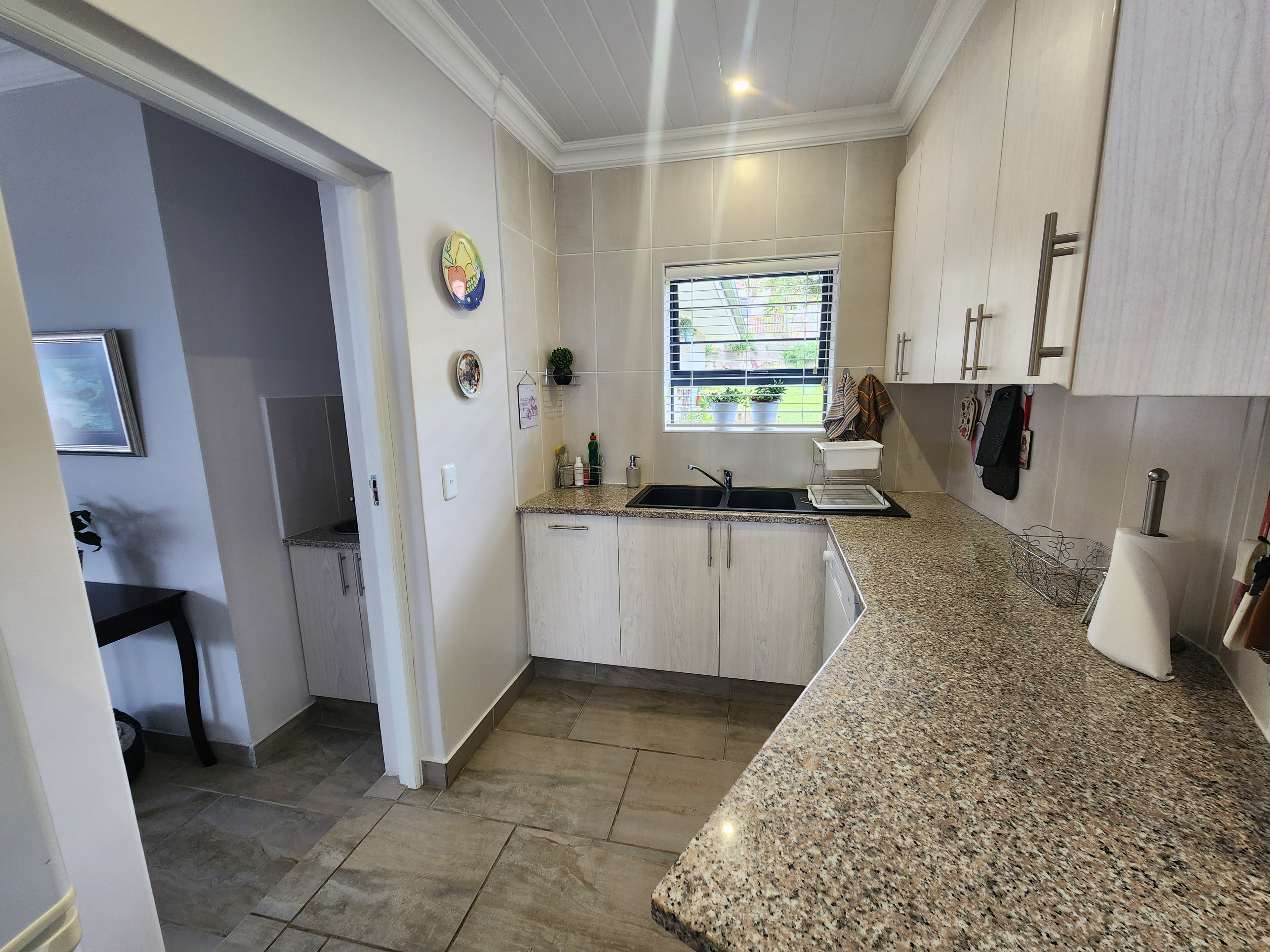 A double garage ensures secure parking and additional storage in a separate outside store, while the one bedroom can be used as a fully self-contained one-bedroom flatlet with its own private entrance, kitchenette, and bathroom offers endless possibilities—from hosting discerning guests to generating income.