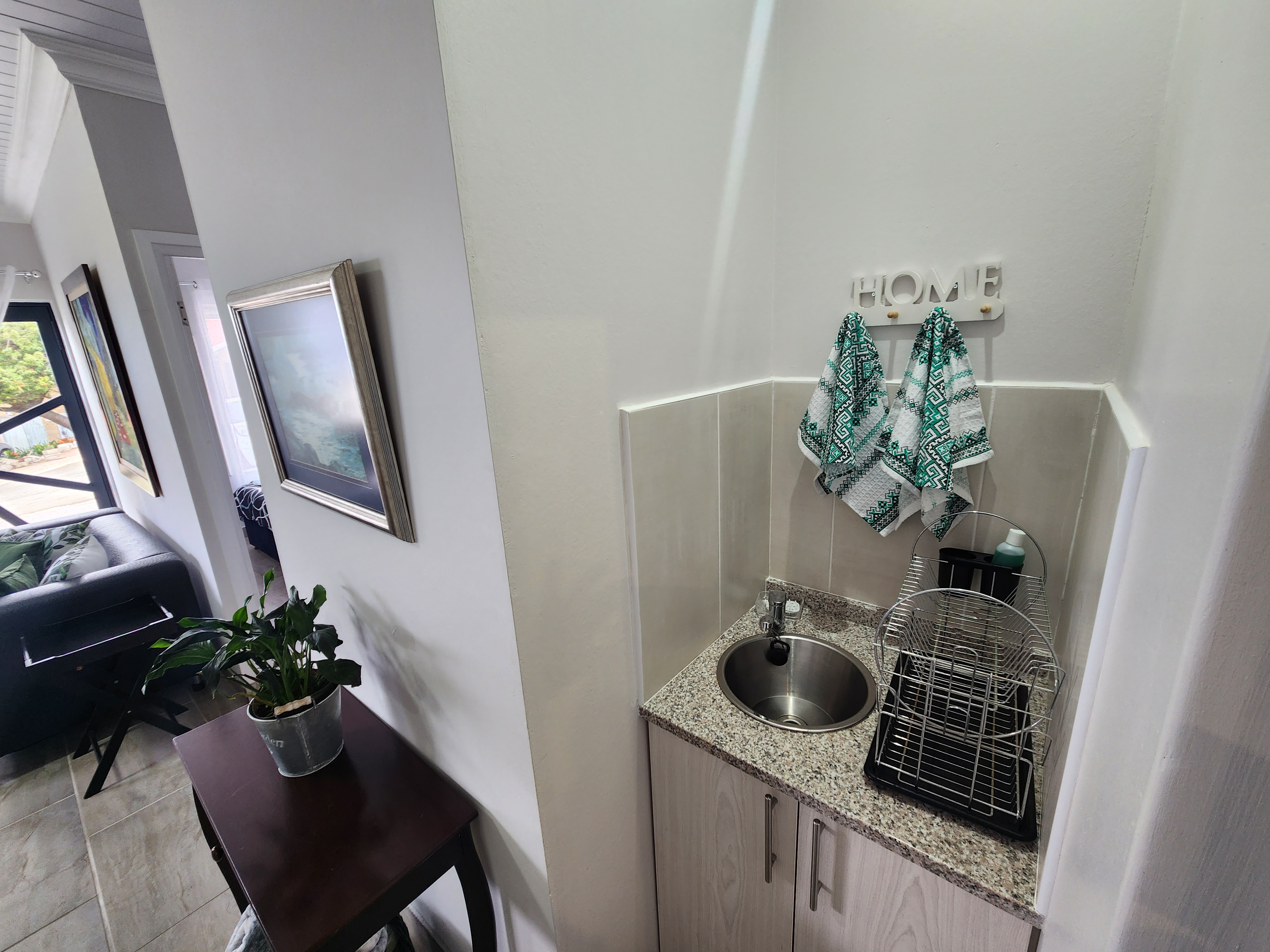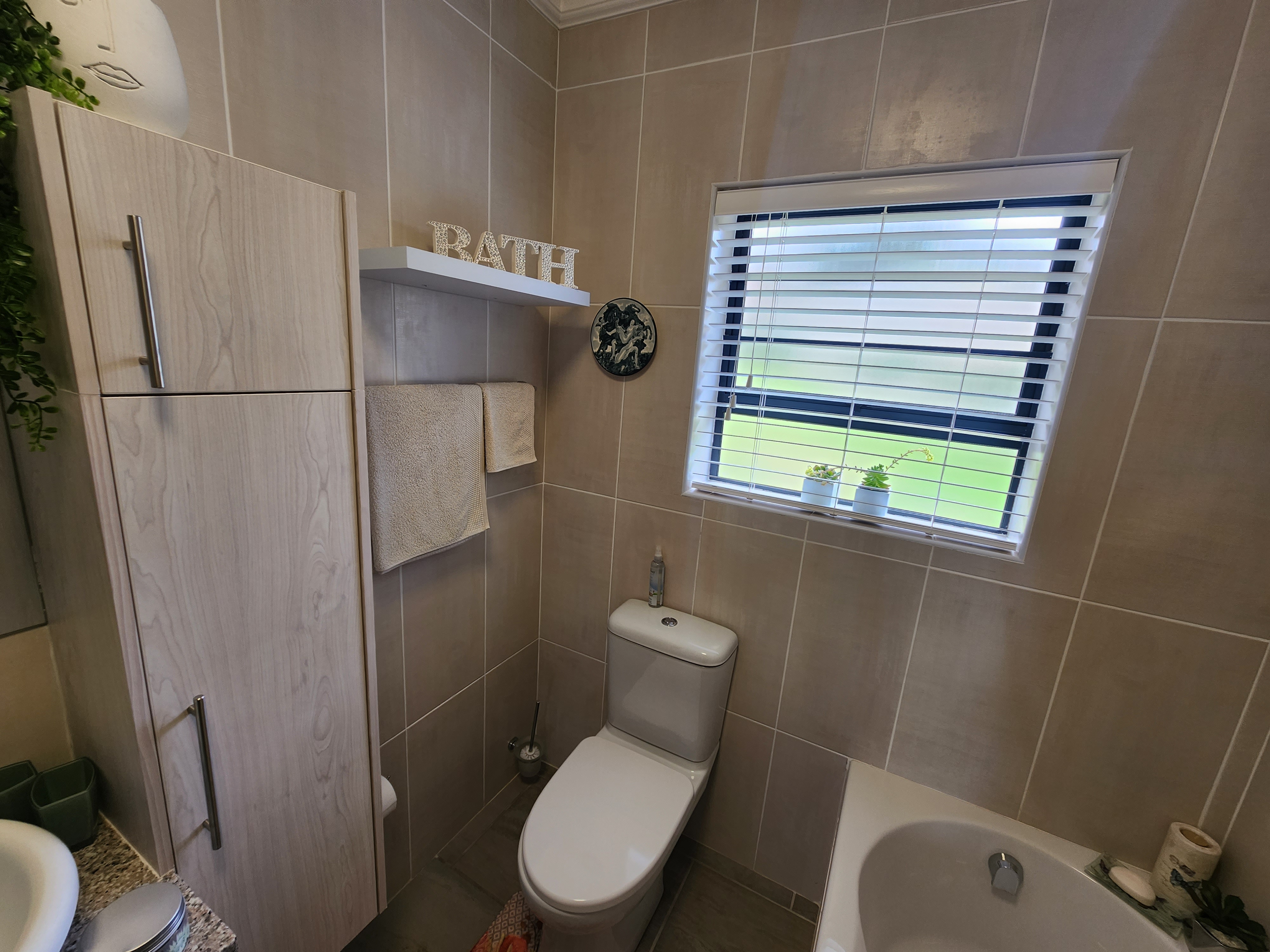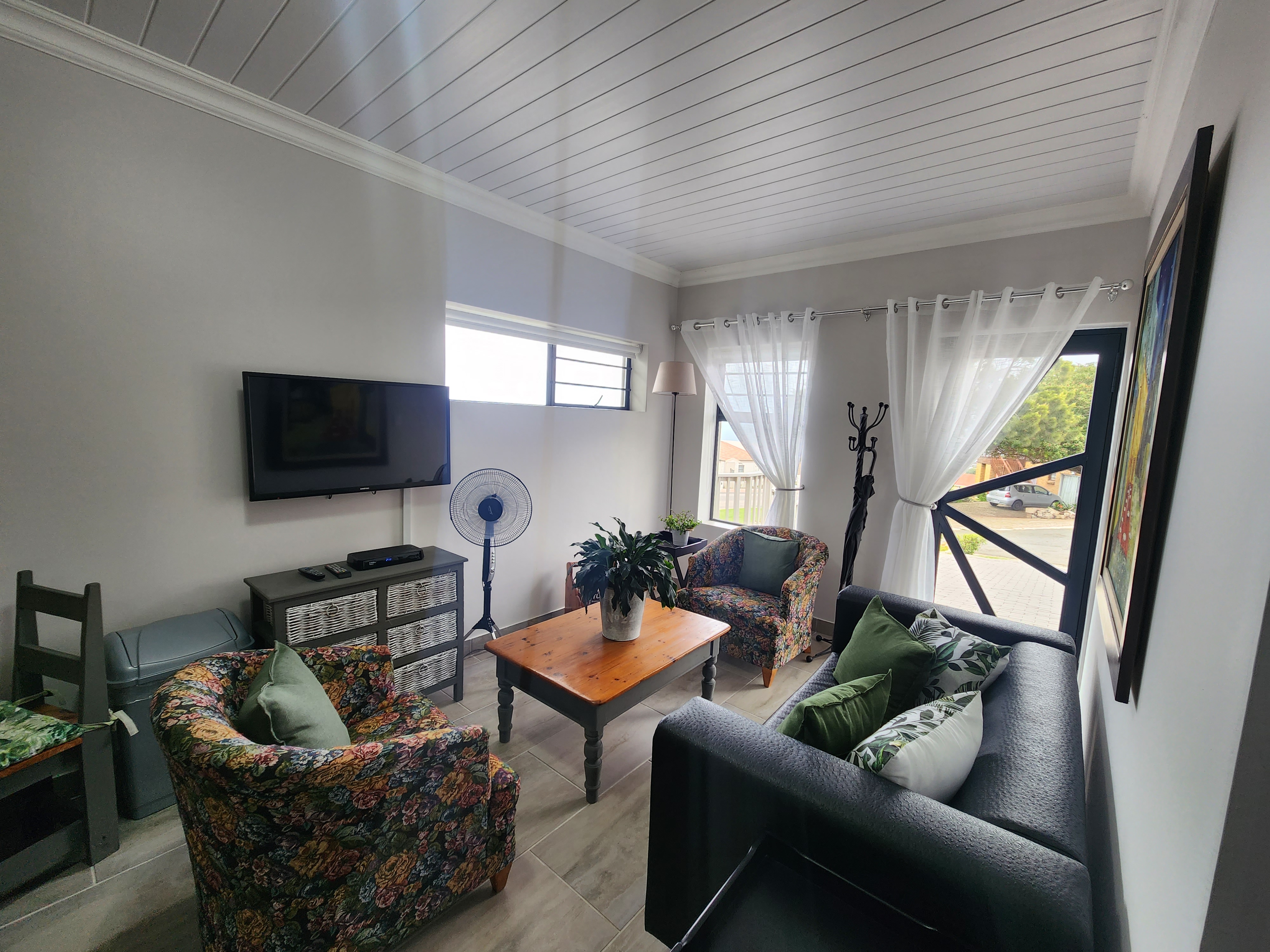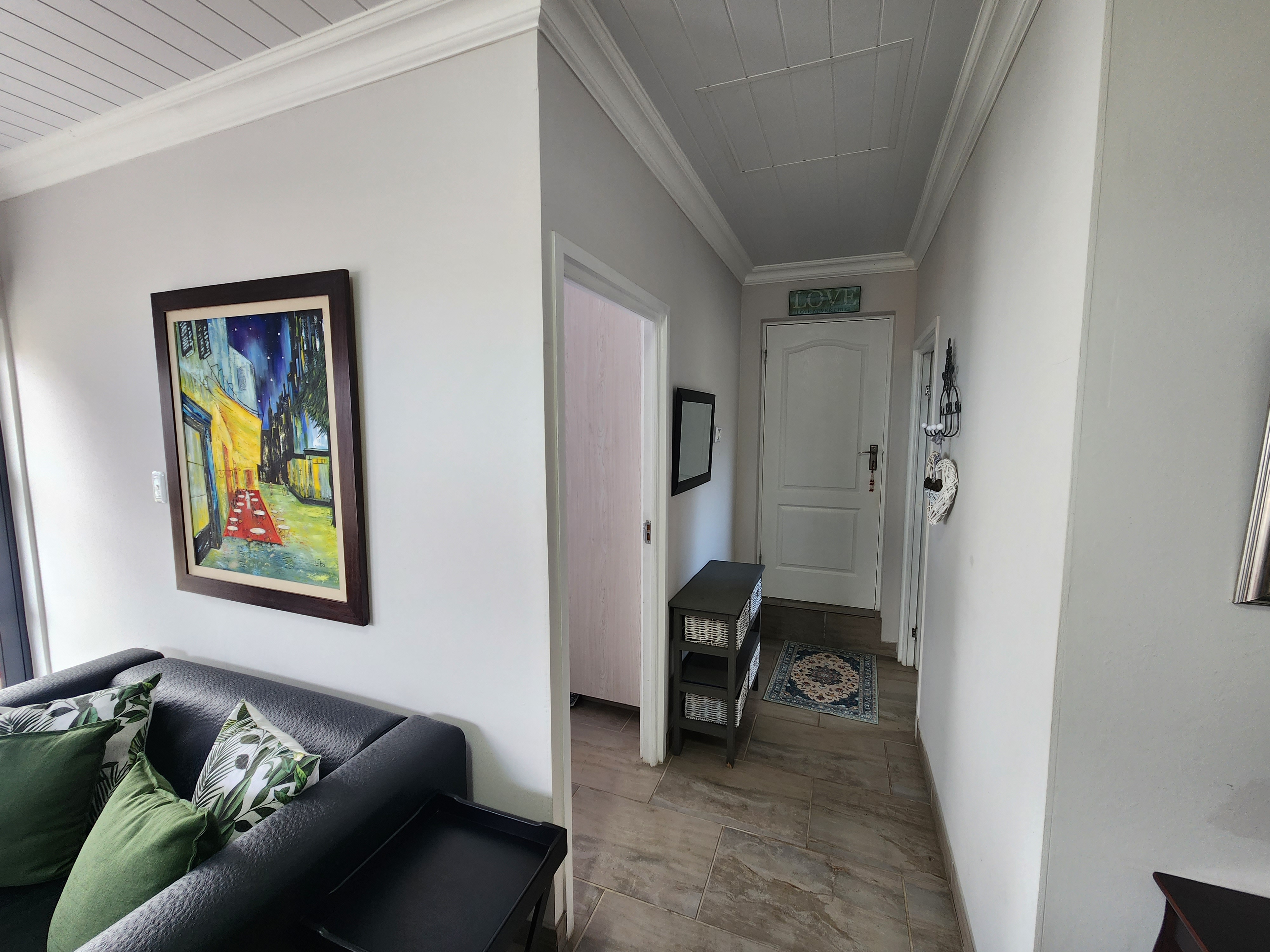 A double garage ensures secure parking and additional storage in a separate outside store, while the one bedroom can be used as a fully self-contained one-bedroom flatlet with its own private entrance, kitchenette, and bathroom offers endless possibilities—from hosting discerning guests to generating income.