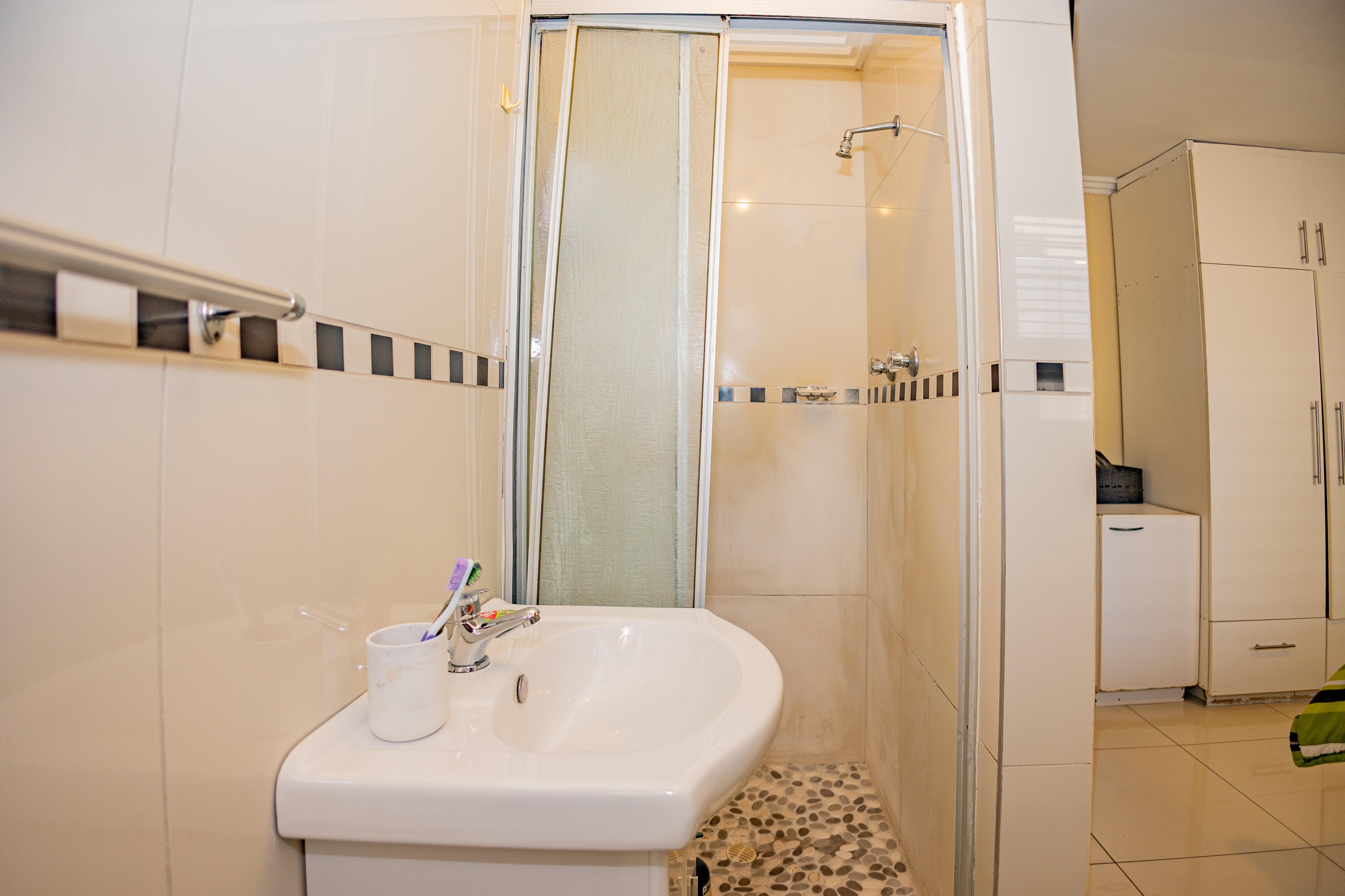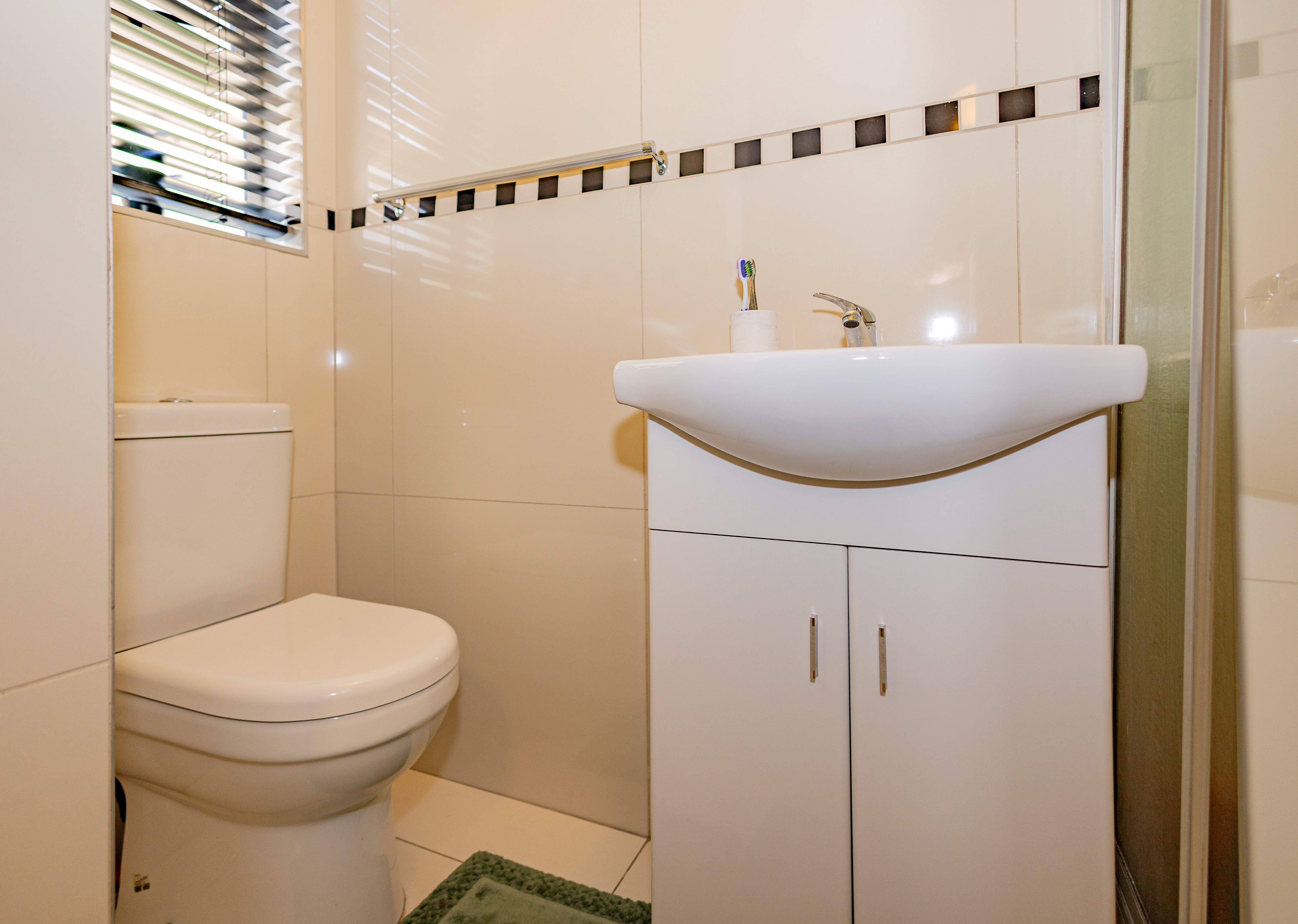 The second bedroom includes an en-suite bathroom with a shower, toilet, and hand basin.