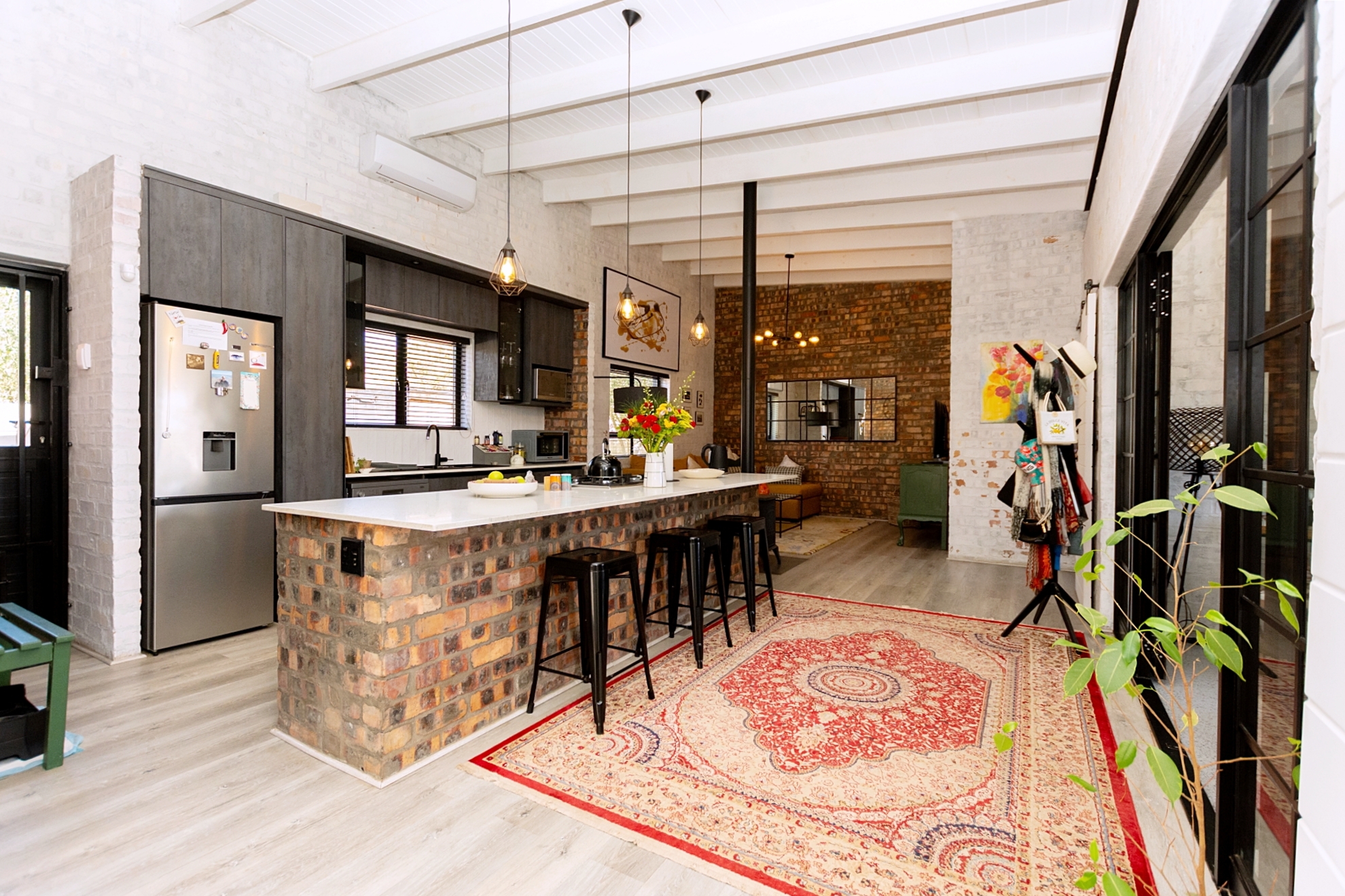 This home is for interaction, hearing the little creek with water meandering over the clinker brick soothing the sole.