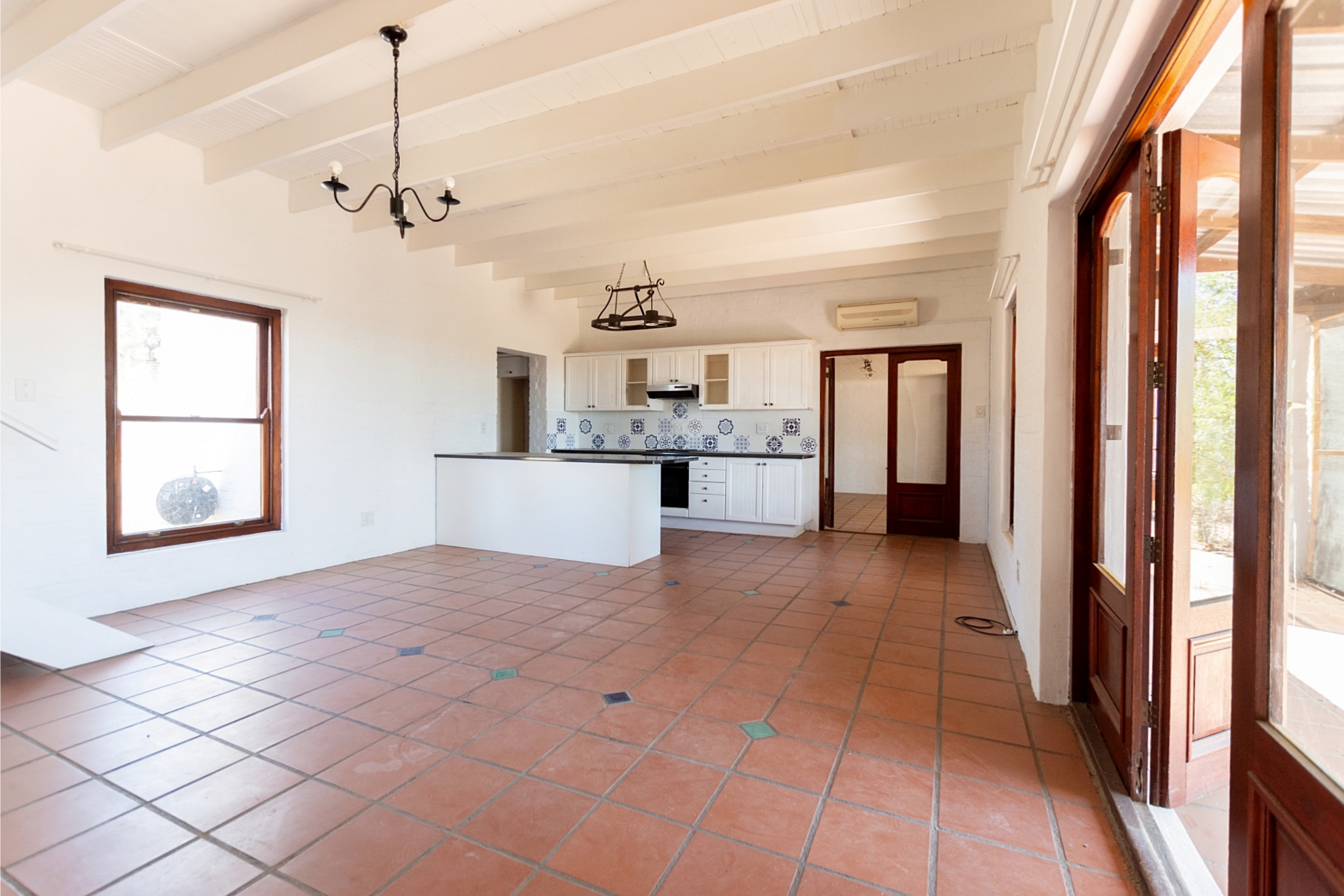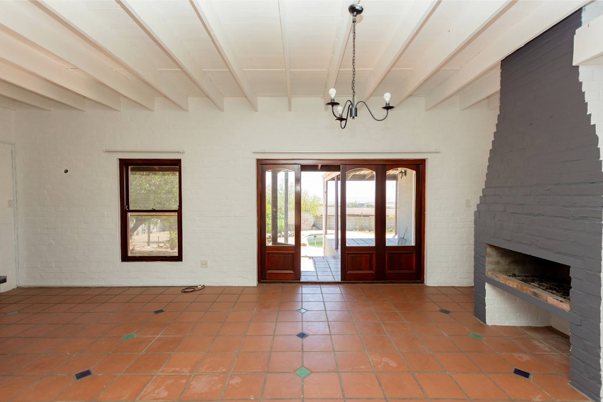 This Farm style Home on the top of the hill with large stoep in a private corner of town offer a entertainment dream with large living areas rustic tiled floor offering living well integrated open with fireplace opening into a T shape interactive living space, long table braai room make you imagine a Viking feast hall complete with dance area.