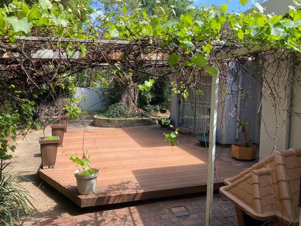 The entertainment room opens out to a rockpool, a lapa, and a lush garden—ideal for hosting or unwinding. A second wooden deck leads from the dining room to a tranquil outdoor nook where grapevines flourish, adding a touch of rustic charm.