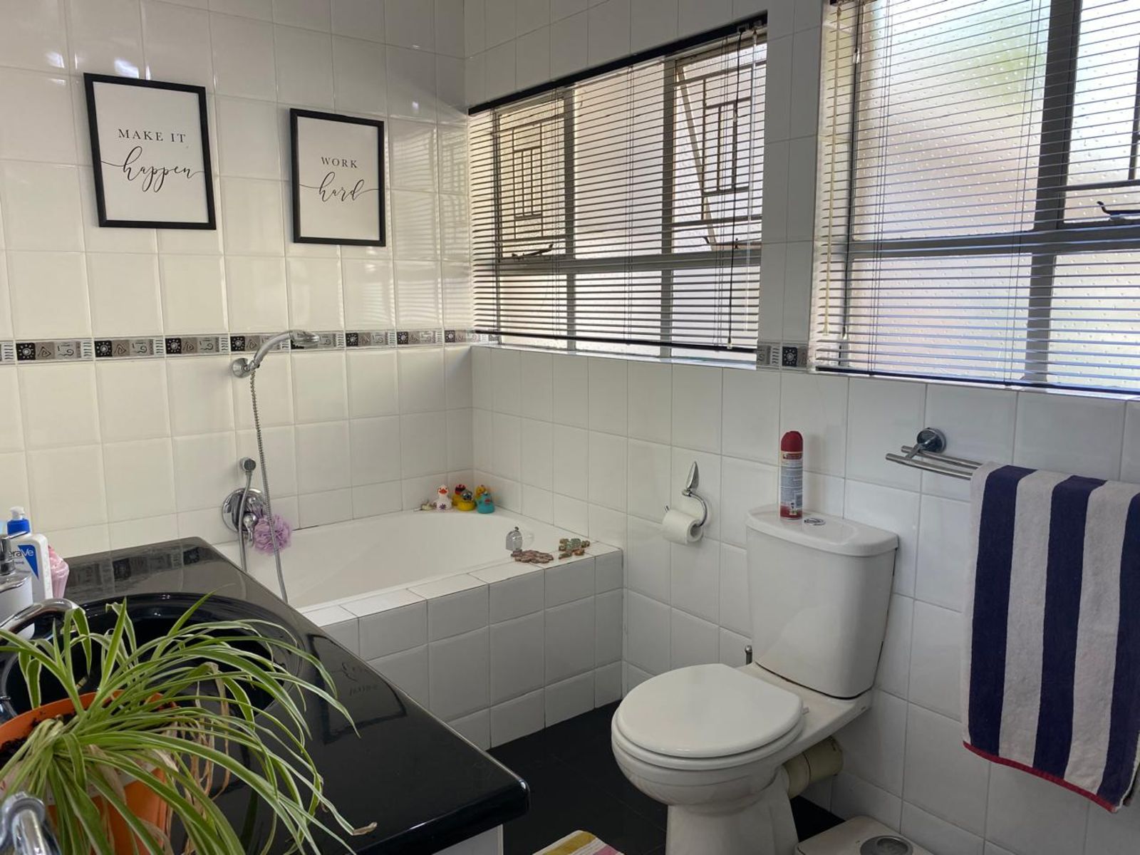 Down the passage, you'll find three bedrooms: two generously sized and carpeted, plus a master suite with a walk-in closet, dedicated dresser landing, and a spacious en-suite bathroom featuring a double-volume bath, shower, basin, and loo. A full bathroom services the other two bedrooms, and there’s also a guest toilet for added convenience.