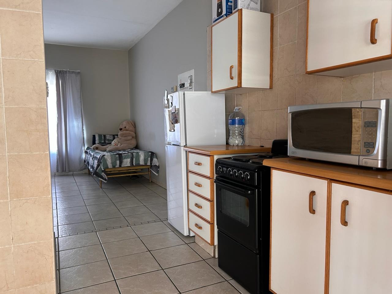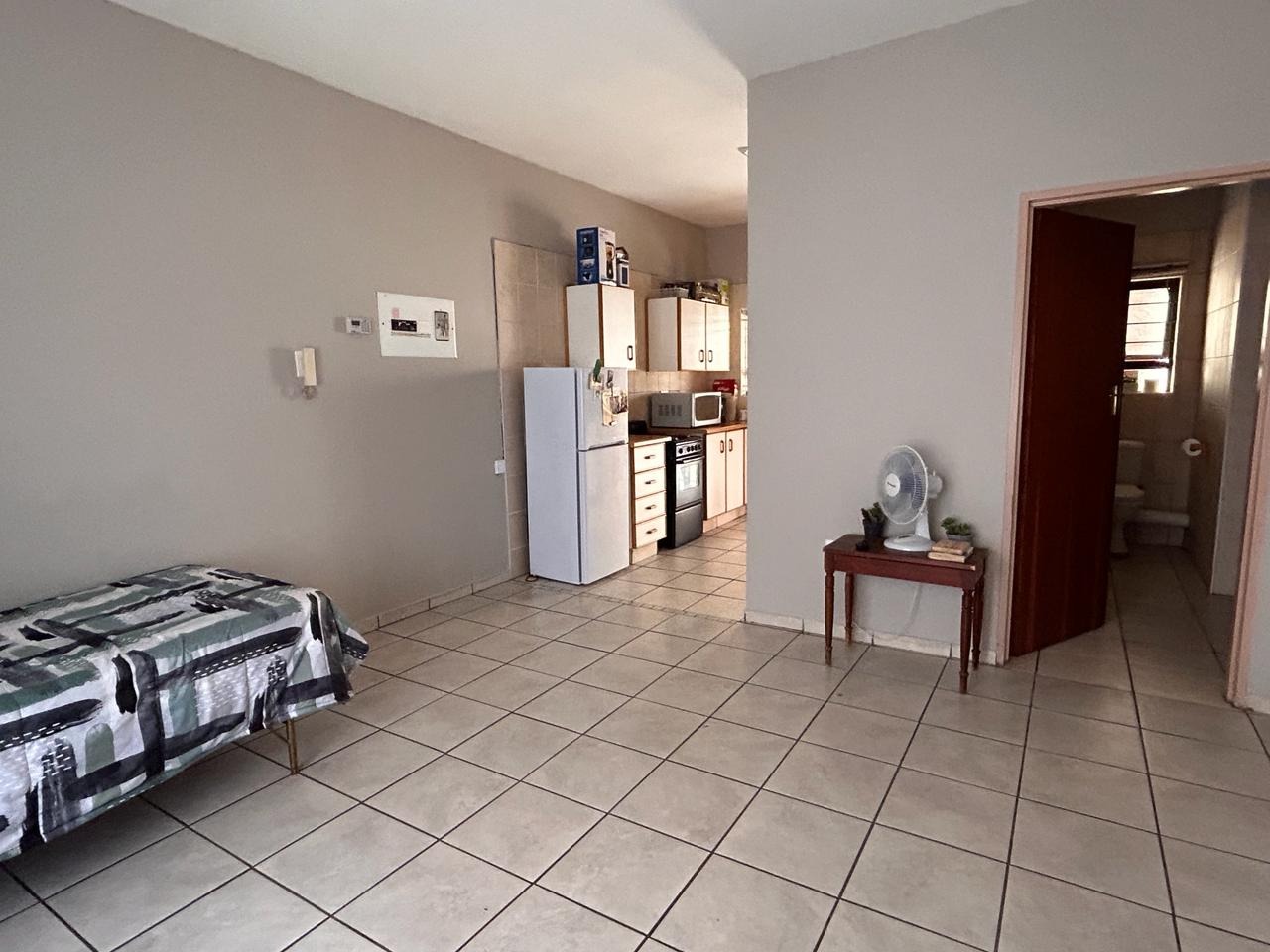 This bachelor's apartment in Onder die Rantjie offers a charming living space characterized by a spacious and light-filled open plan layout. The apartment features a neat kitchen area seamlessly integrated into the living and bedroom area, providing convenience and functionality.