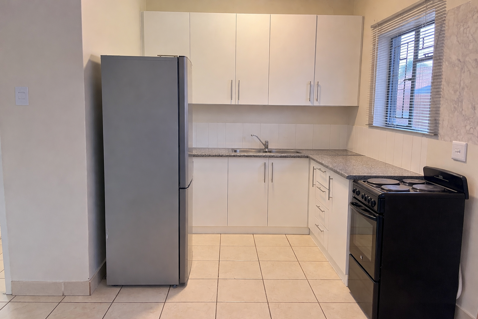 This beautifully maintained townhouse features 2 cosy bedrooms with built-in cupboards, a functional open-plan kitchen, and a welcoming living space — all fully tiled for your convenience.